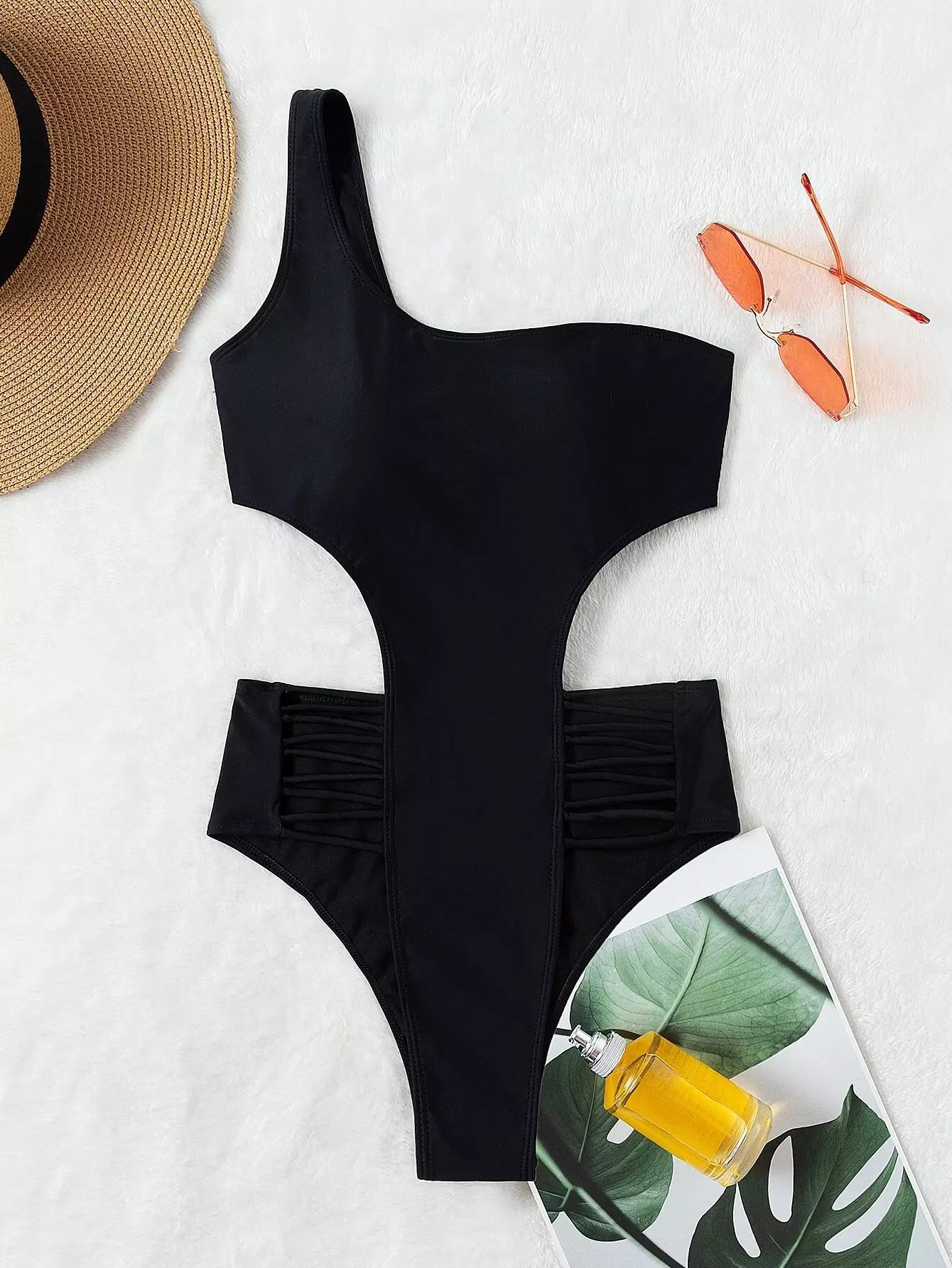 بدلة سباحة بقطعة واحدة بكتف واحد مقصوصة من قطعة واحدة