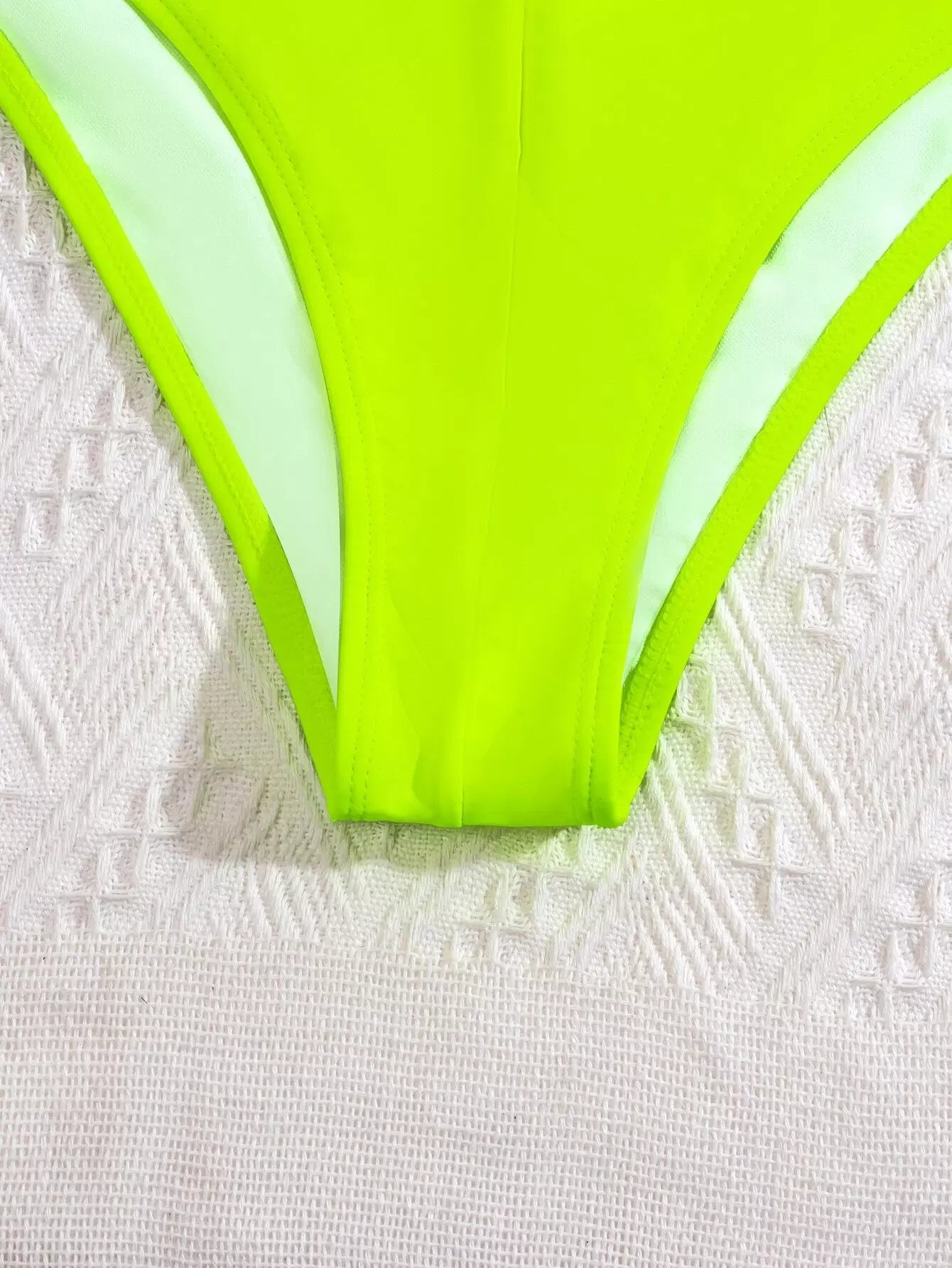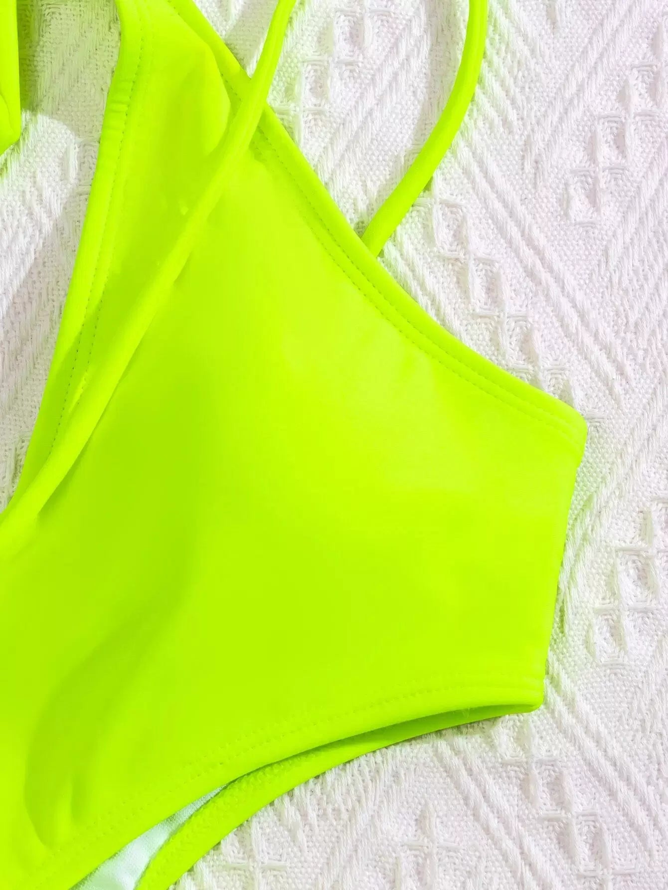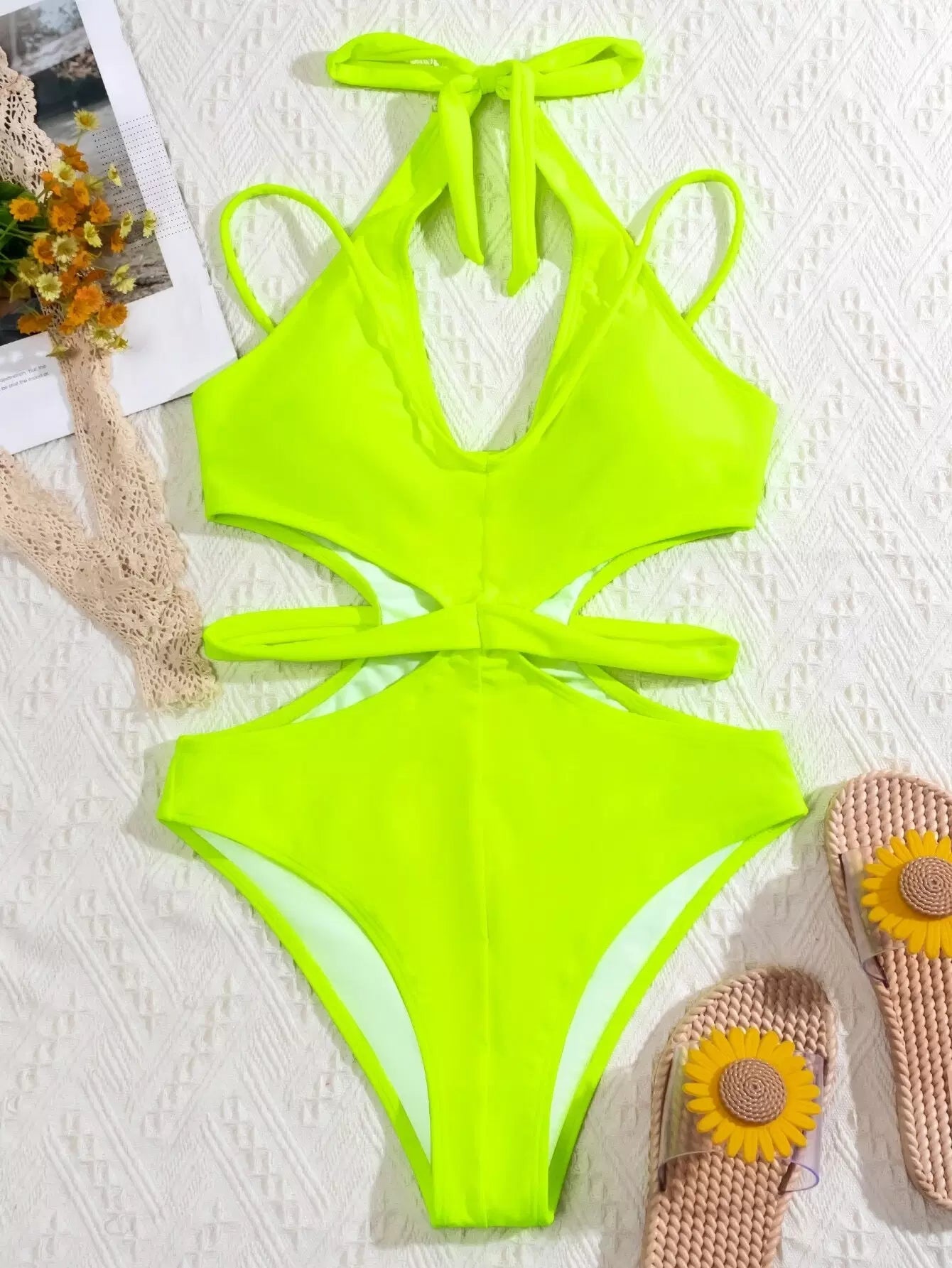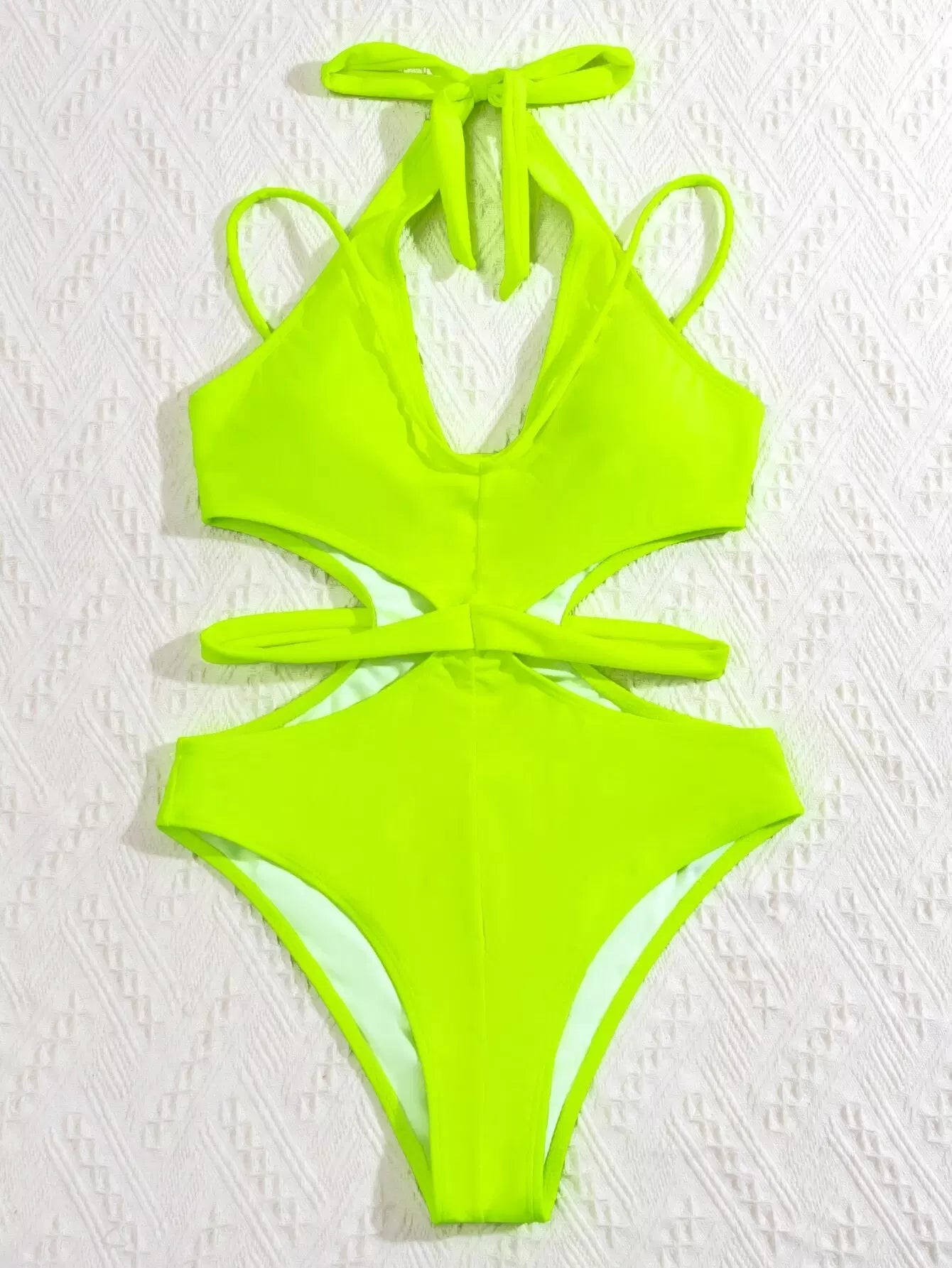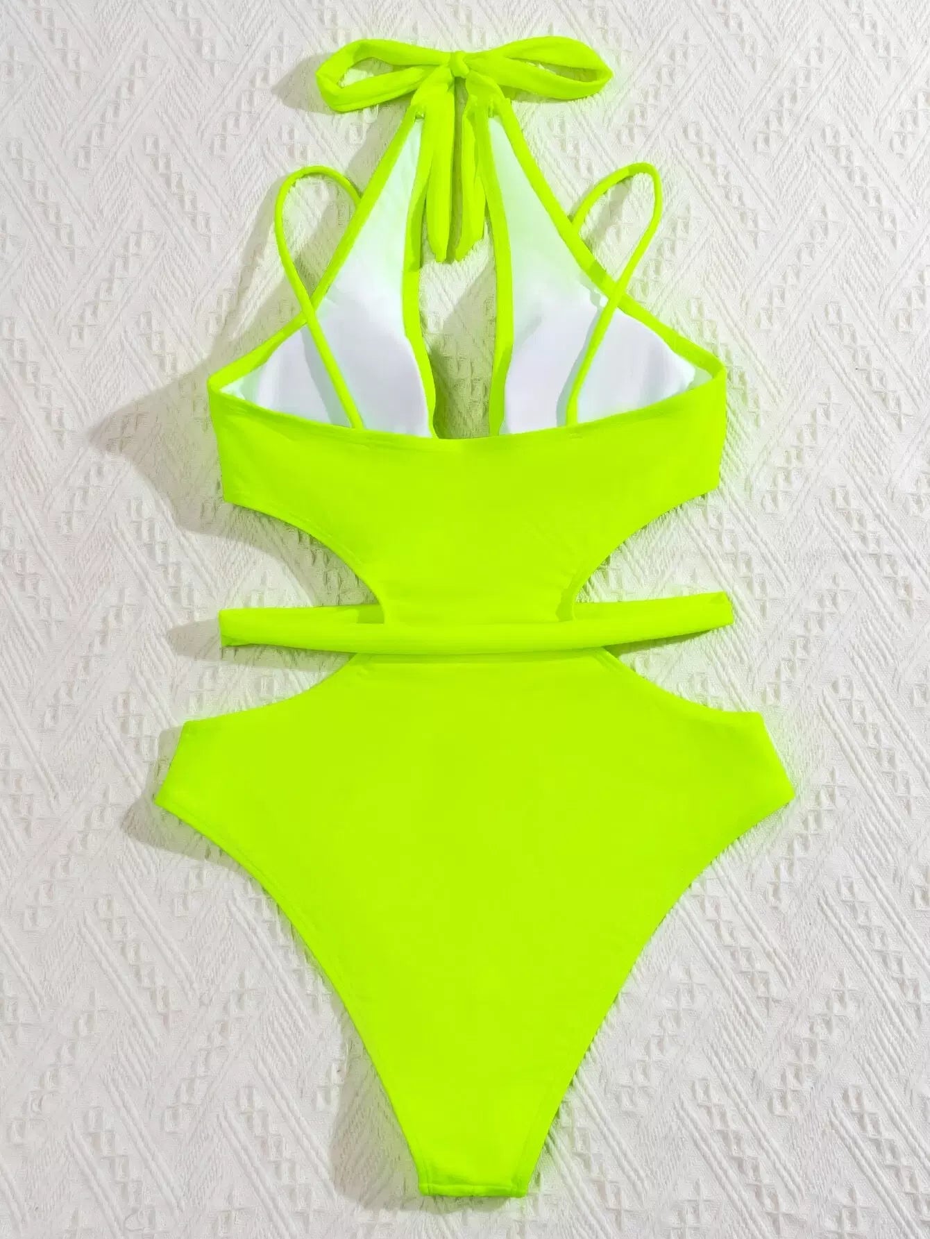 بدلة سباحة بقطعة واحدة بقصّة واحدة ليمون نيون مقطوعة