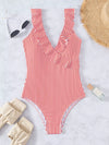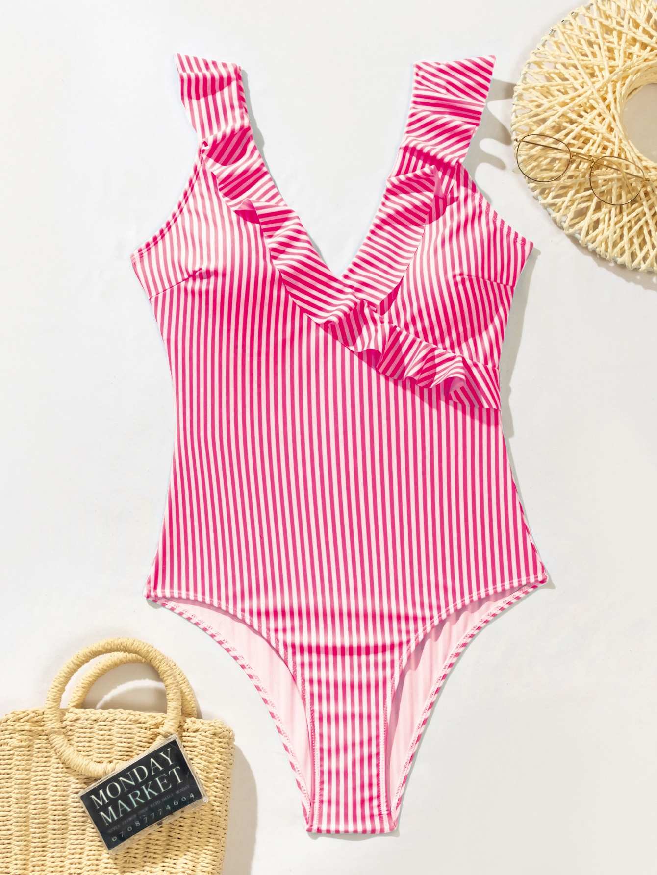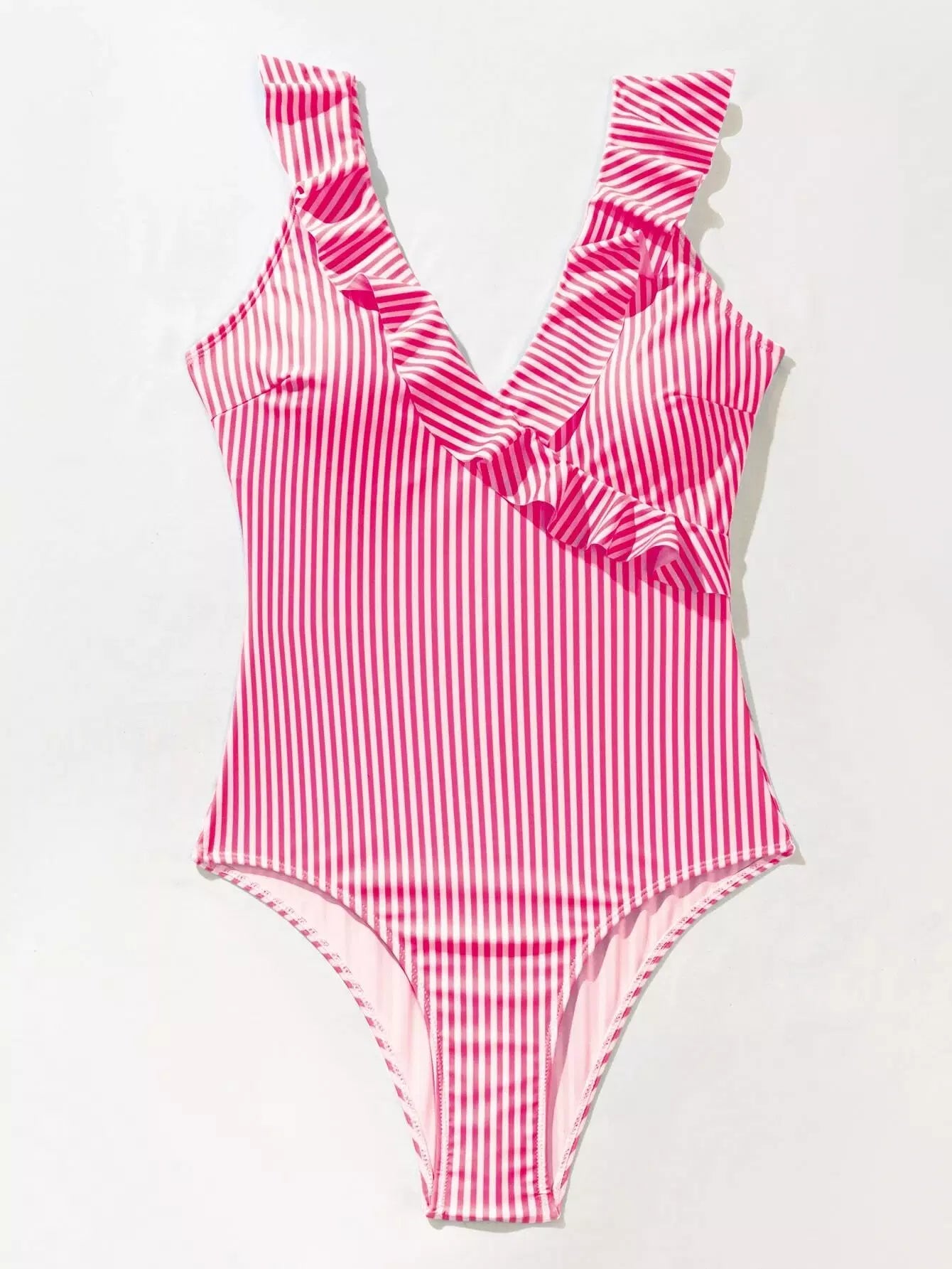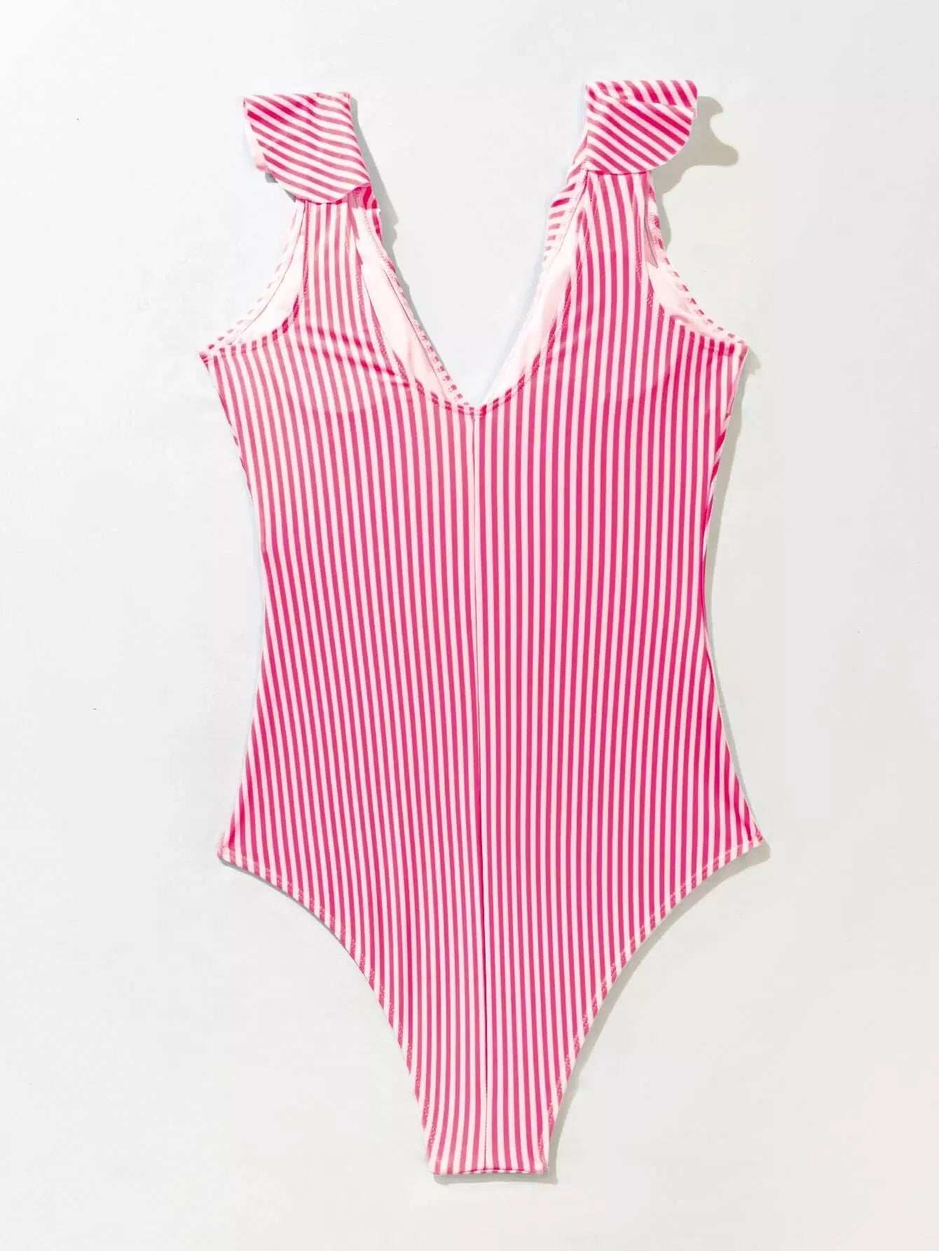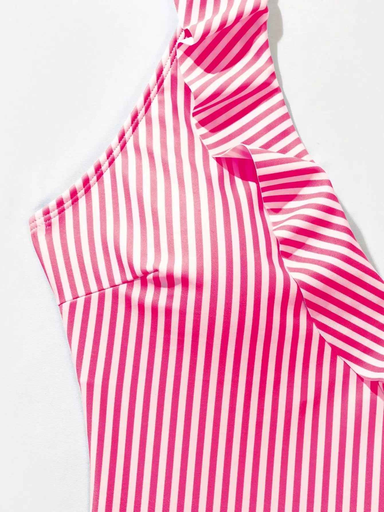 بدلة سباحة بقطعة واحدة مخططة مكشكشة من قطعة واحدة