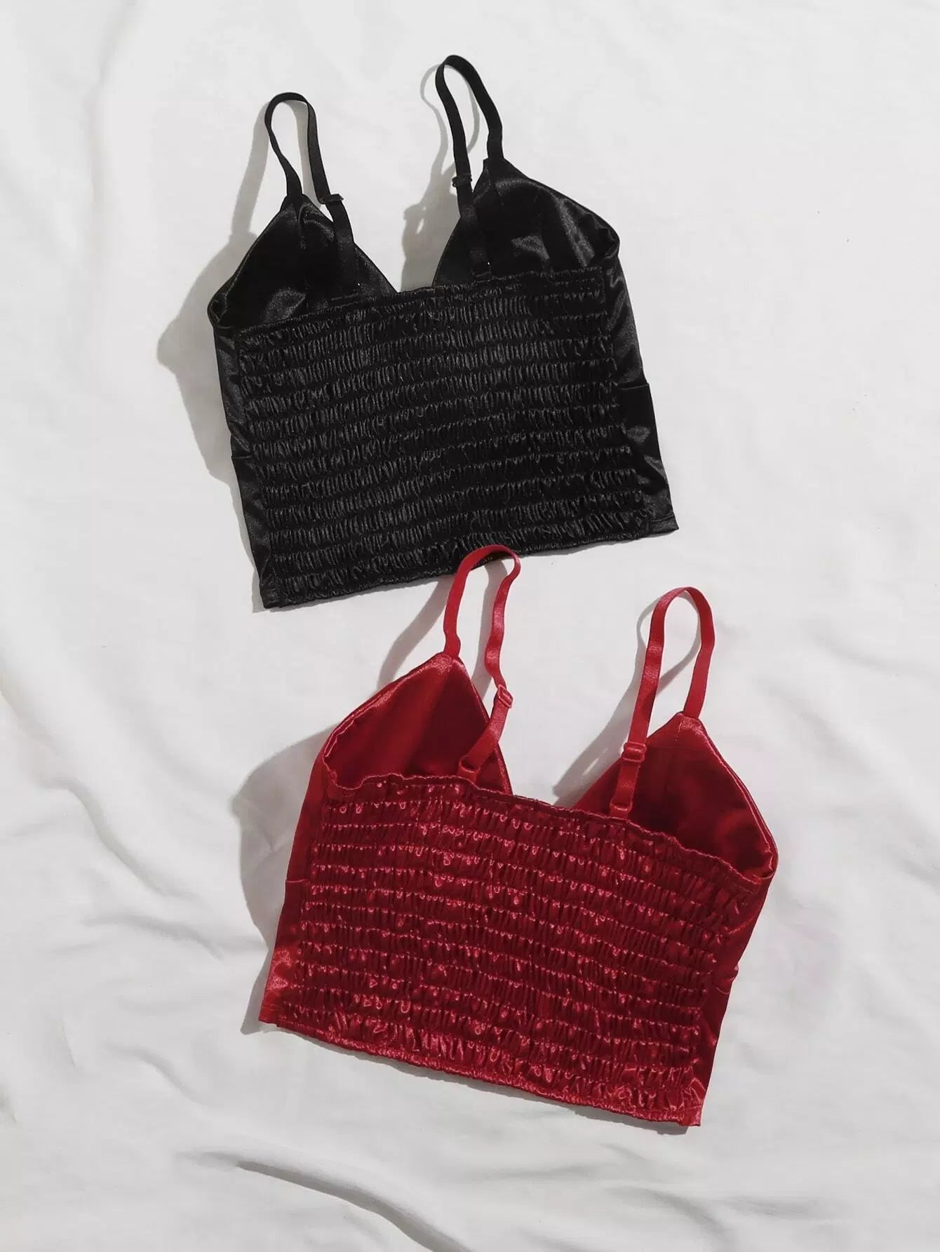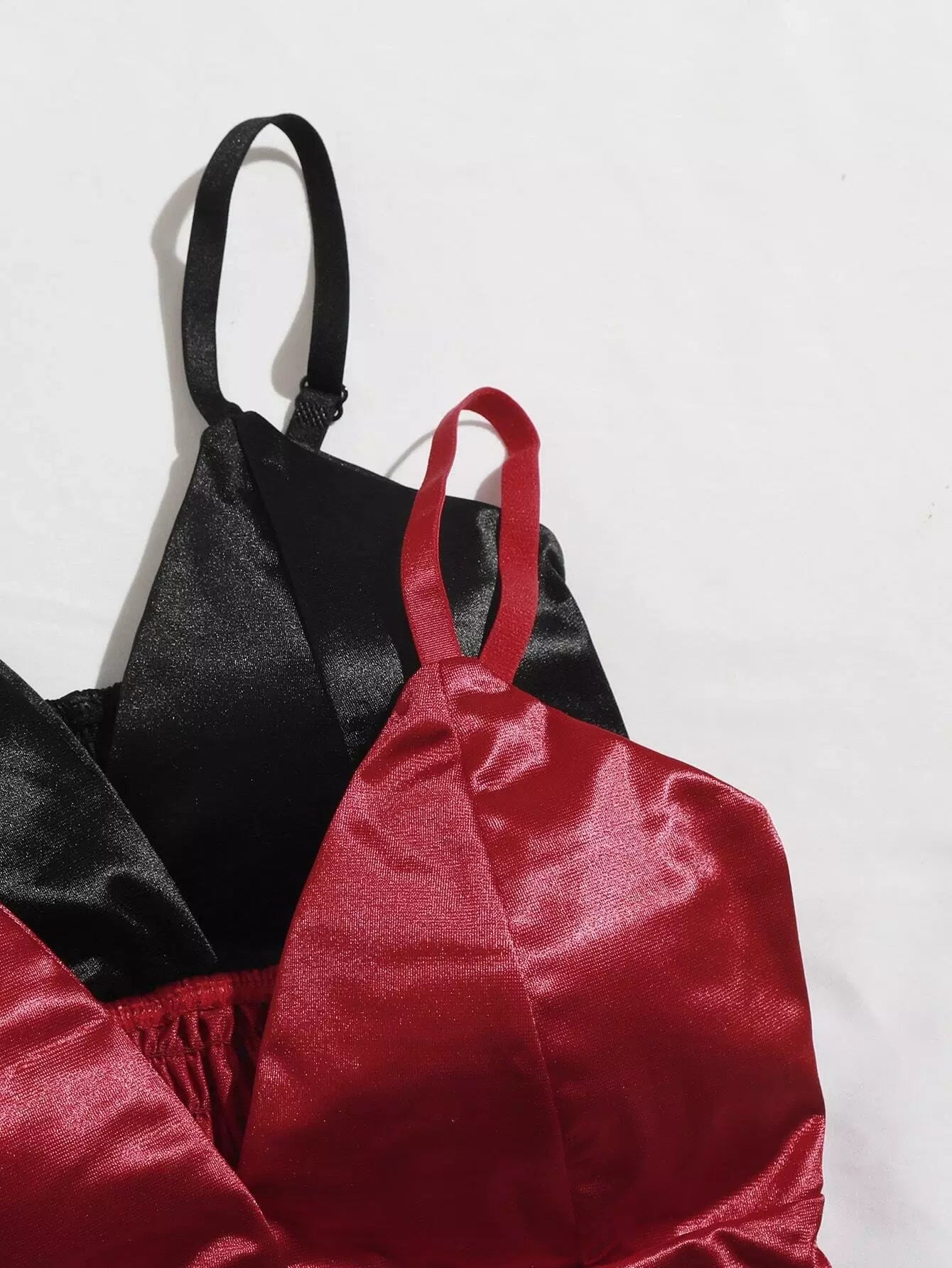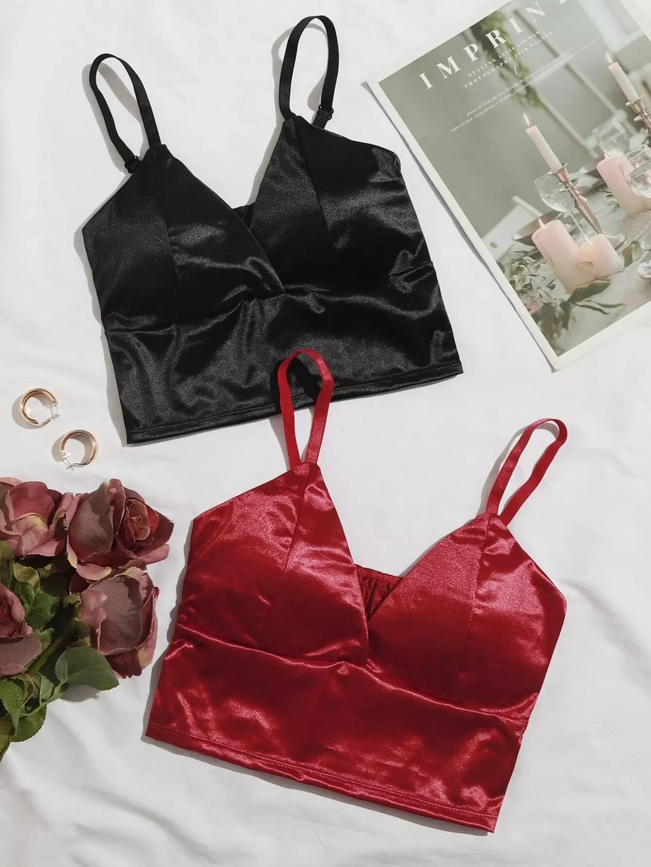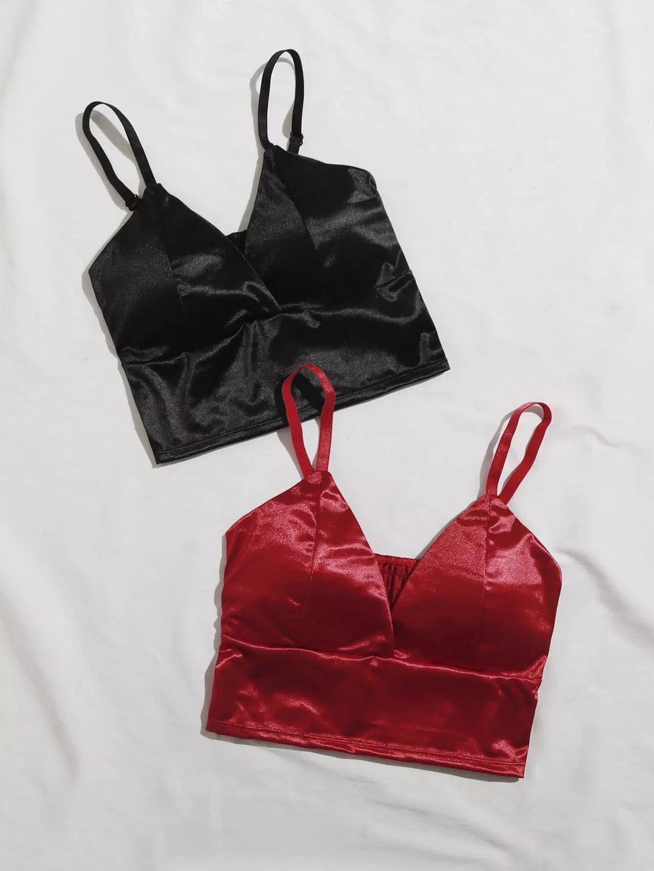 طقم حمالة صدرية طويلة من الساتان 2 عبوة ساتان