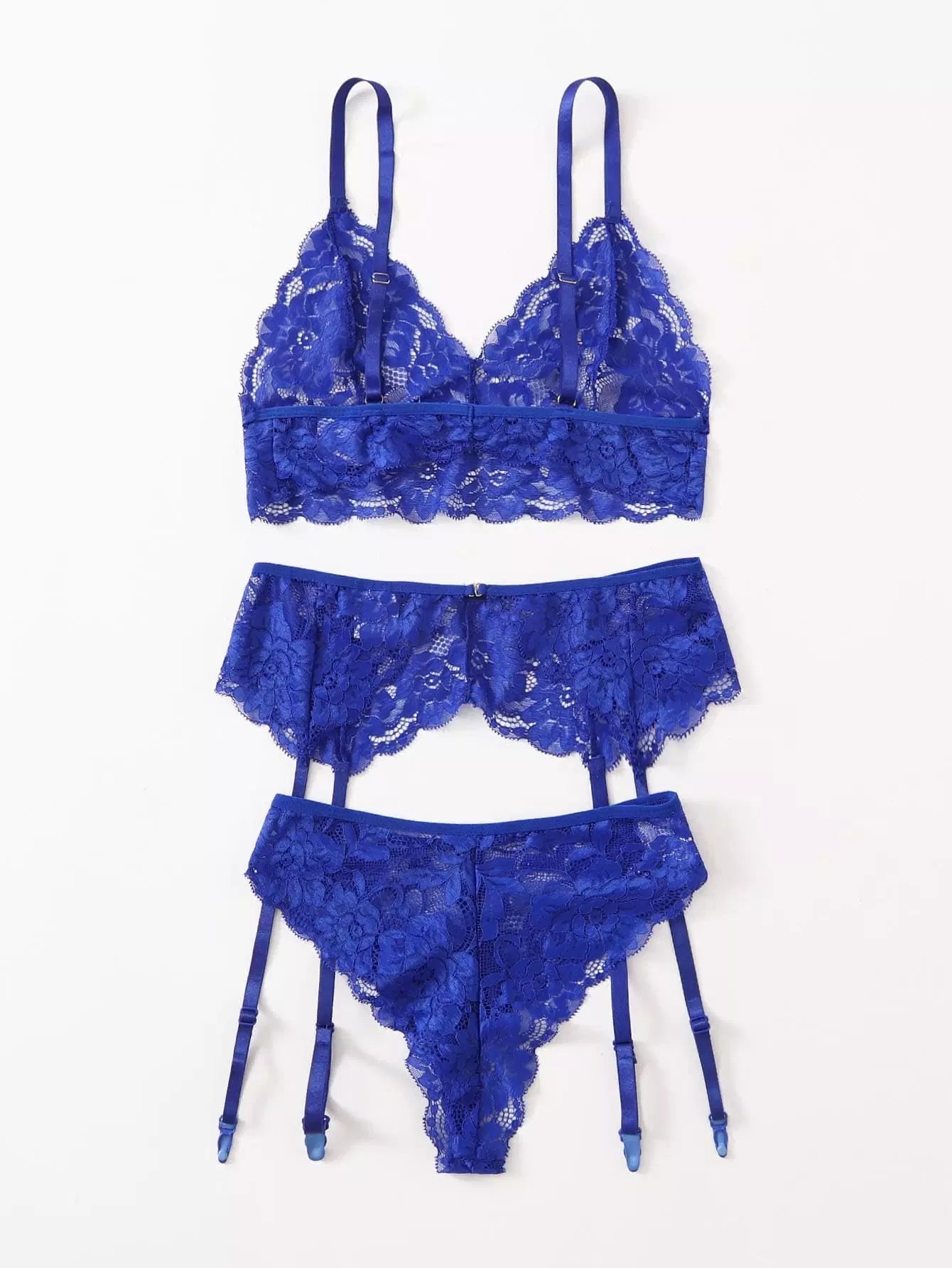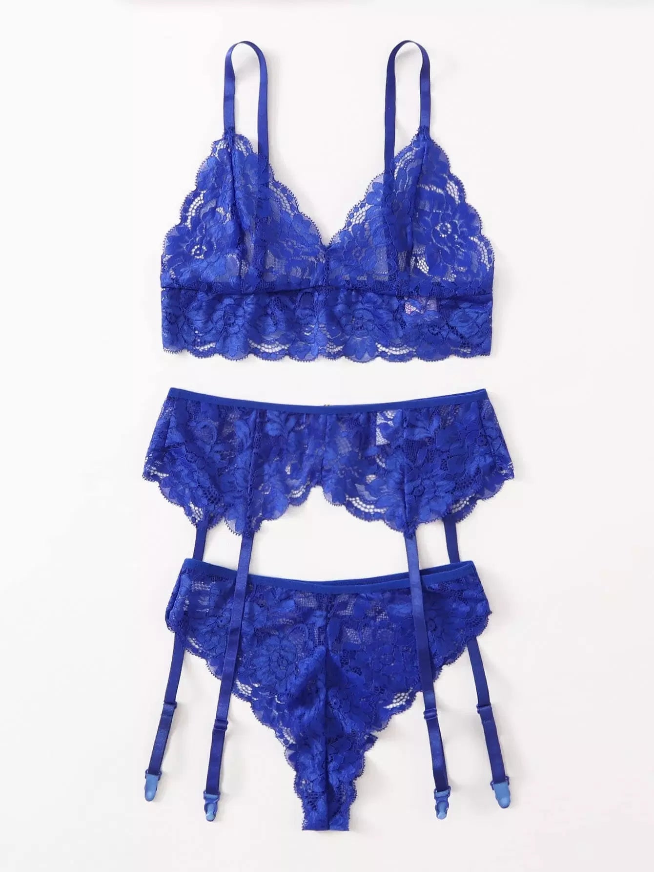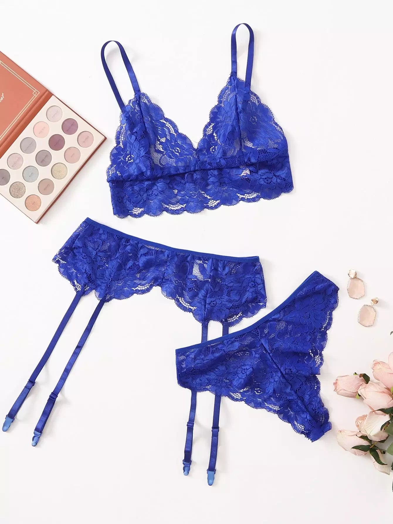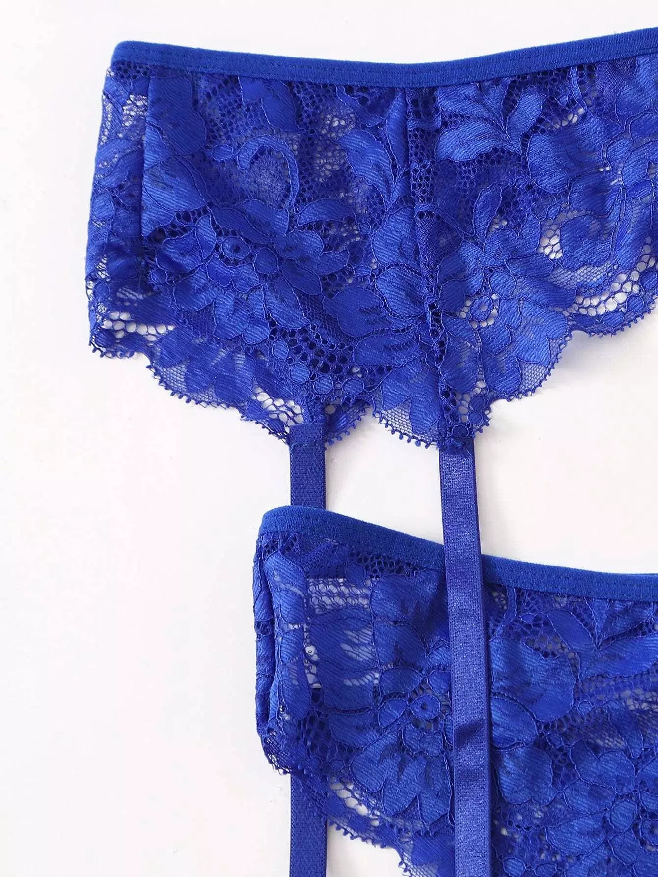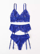 طقم ملابس داخلية من الدانتيل المزين بالأزهار والرباط