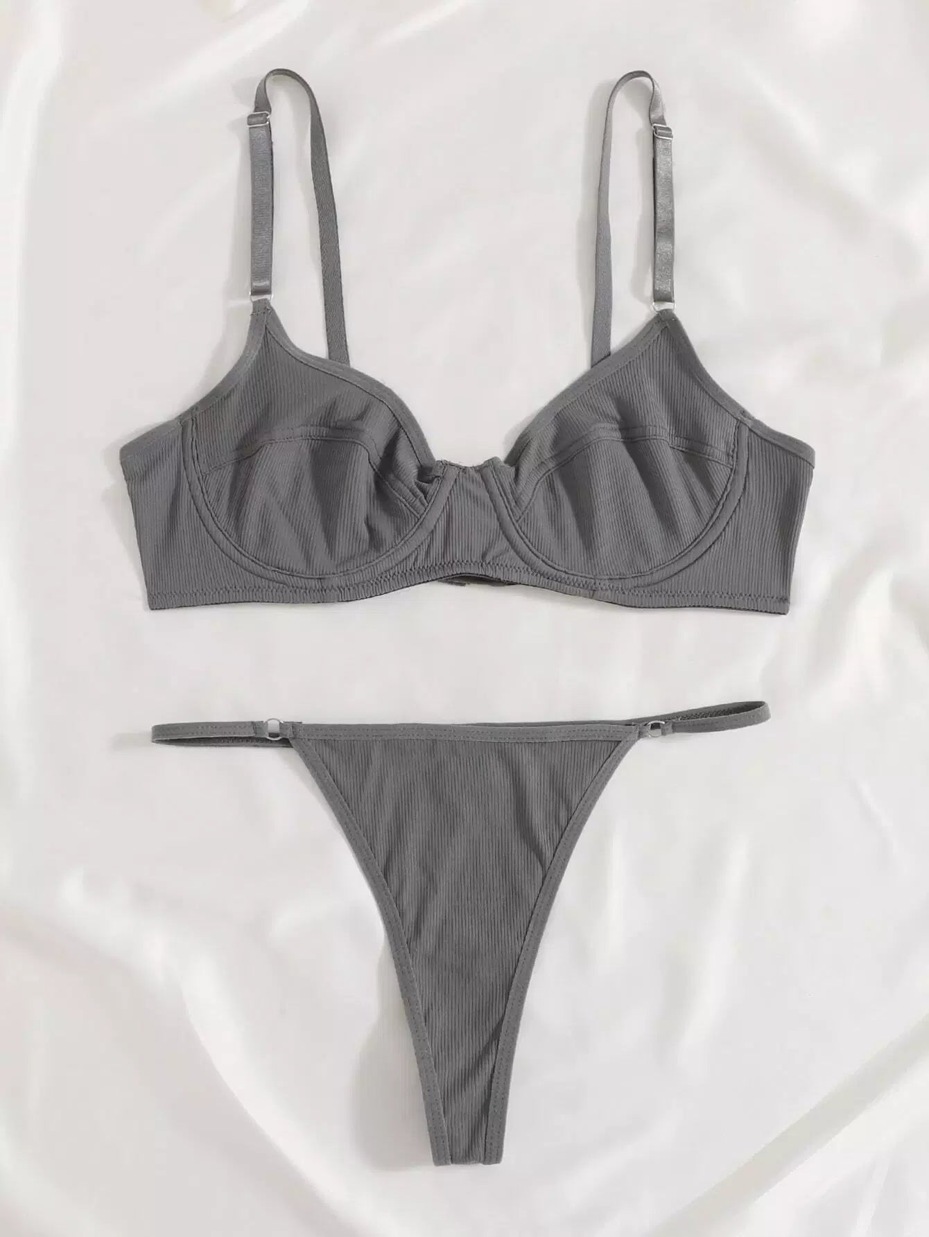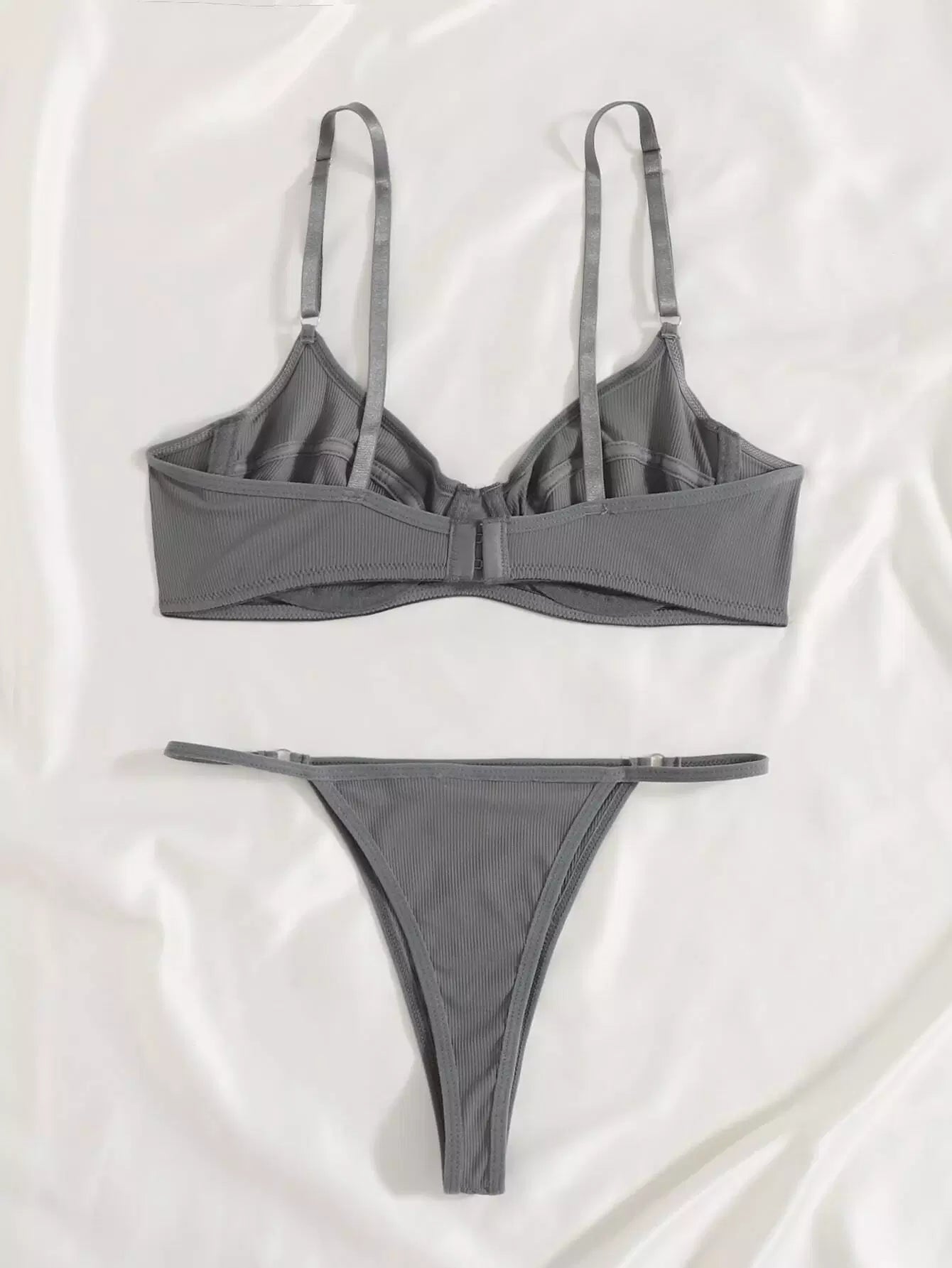 طقم ملابس داخلية داخلية سادة ضلع داخلي تحت سلك ضلع سادة