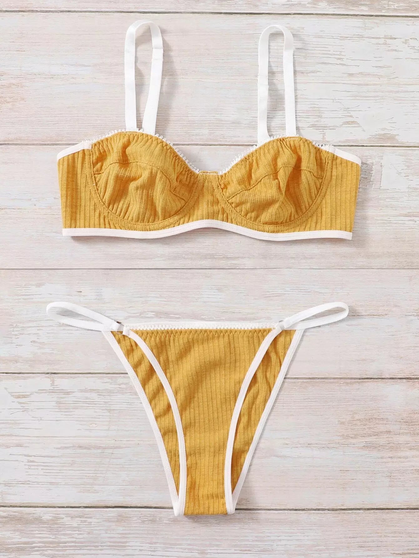 طقم ملابس داخلية داخلية سادة ضلع داخلي تحت سلك ضلع سادة