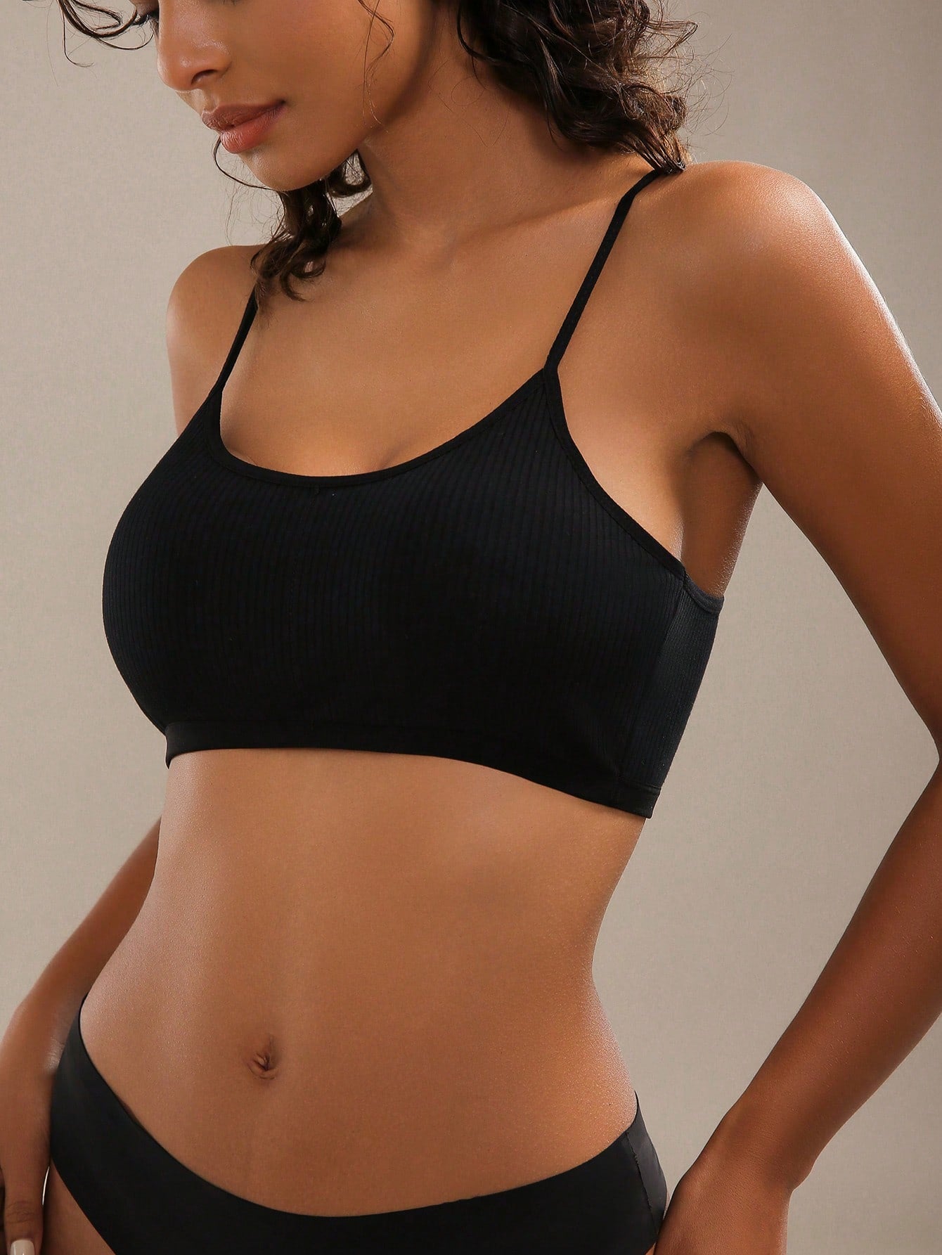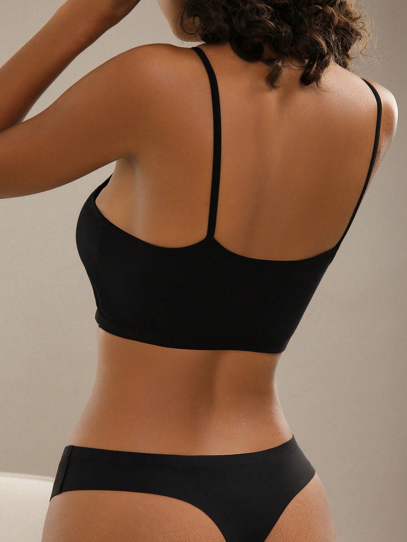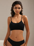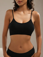 حمالة صدر نسائية سوداء سادة مريحة بدون ظهر مصنوعة من قماش مطاطي متوسط