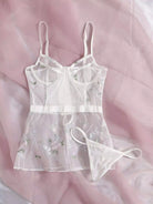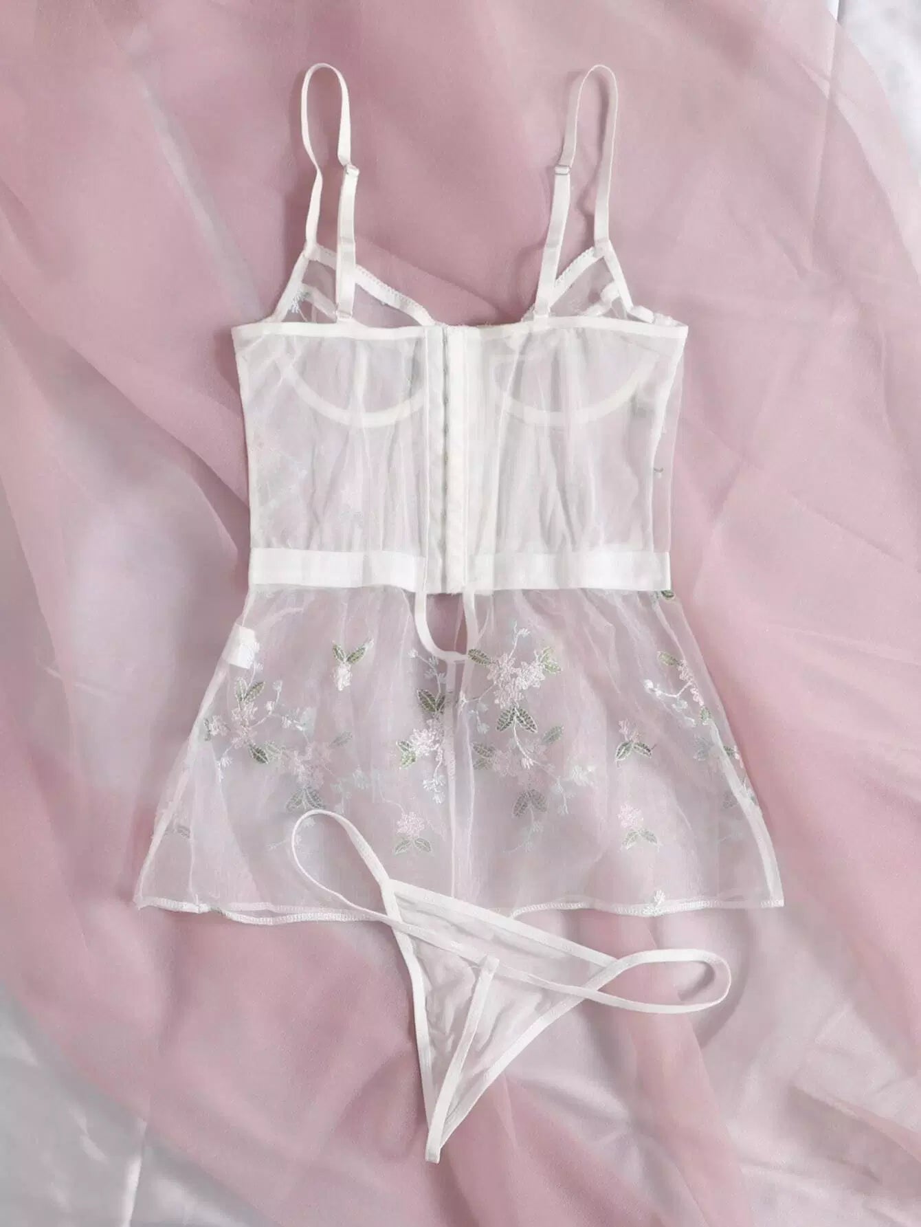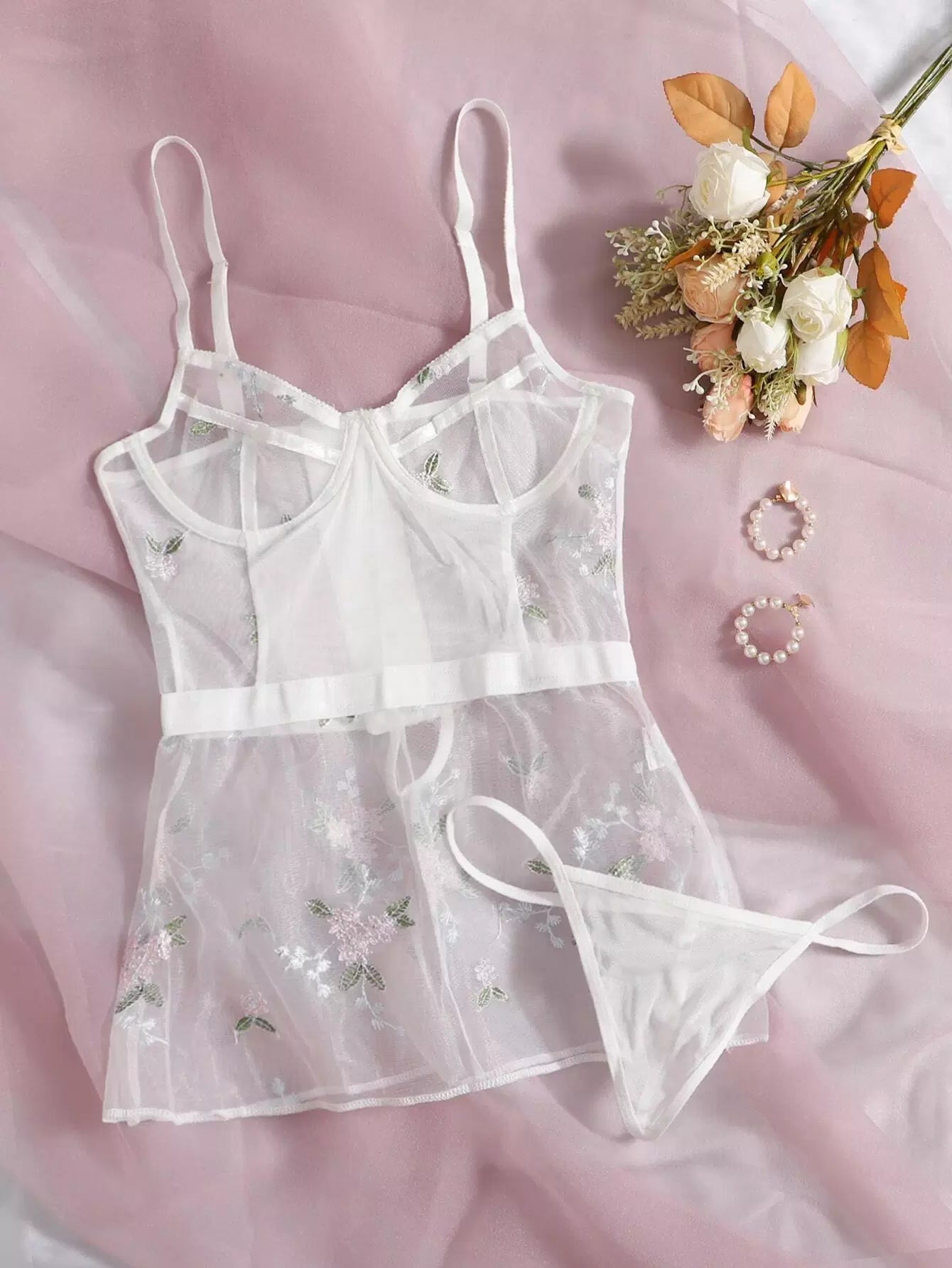 زلات شبكية مطرزة بالورود مع سروال داخلي شبكي مطرز بالزهور