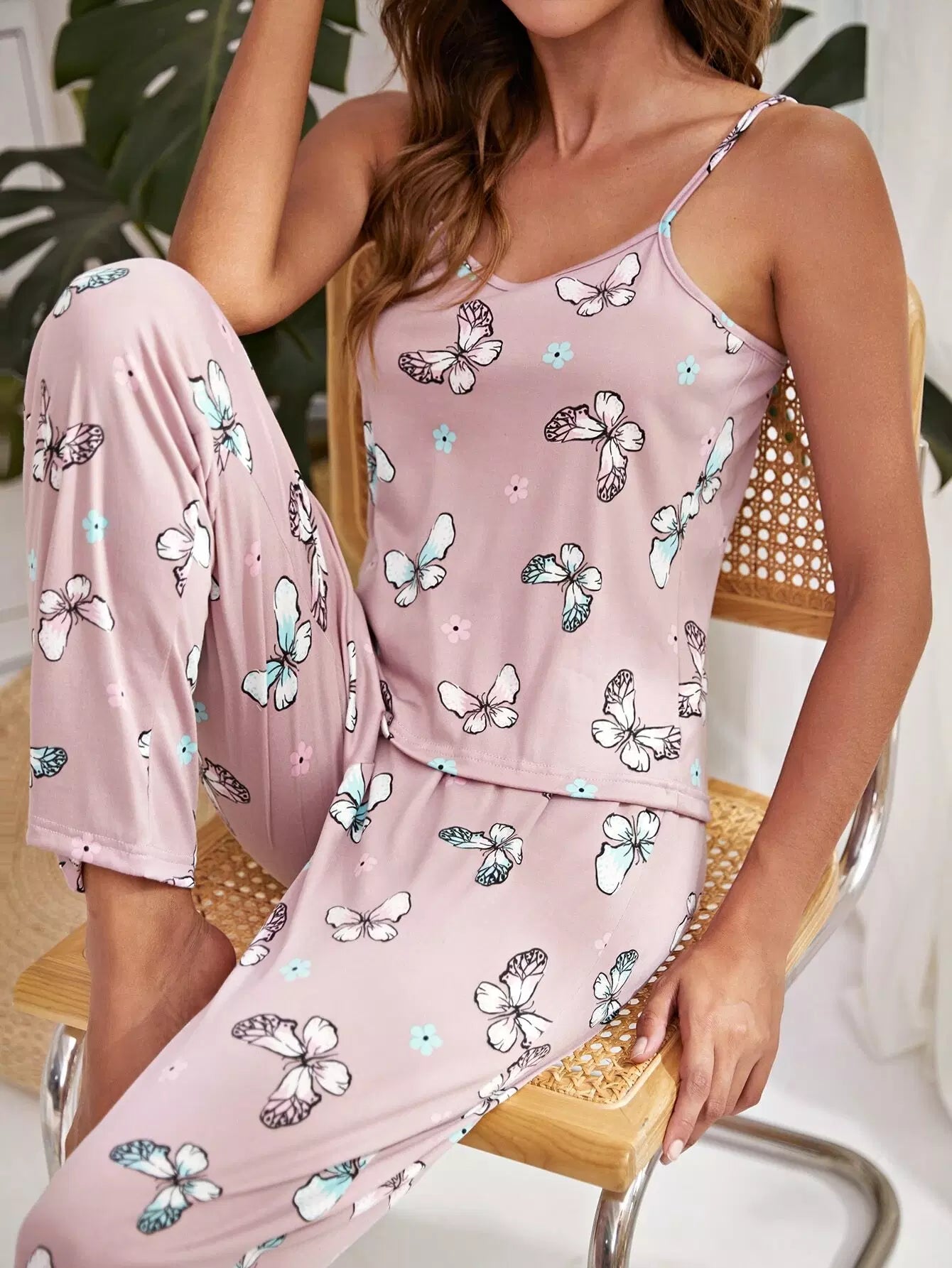 طقم بيجامة بطبعة فراشات وزهور