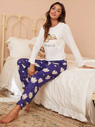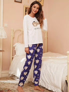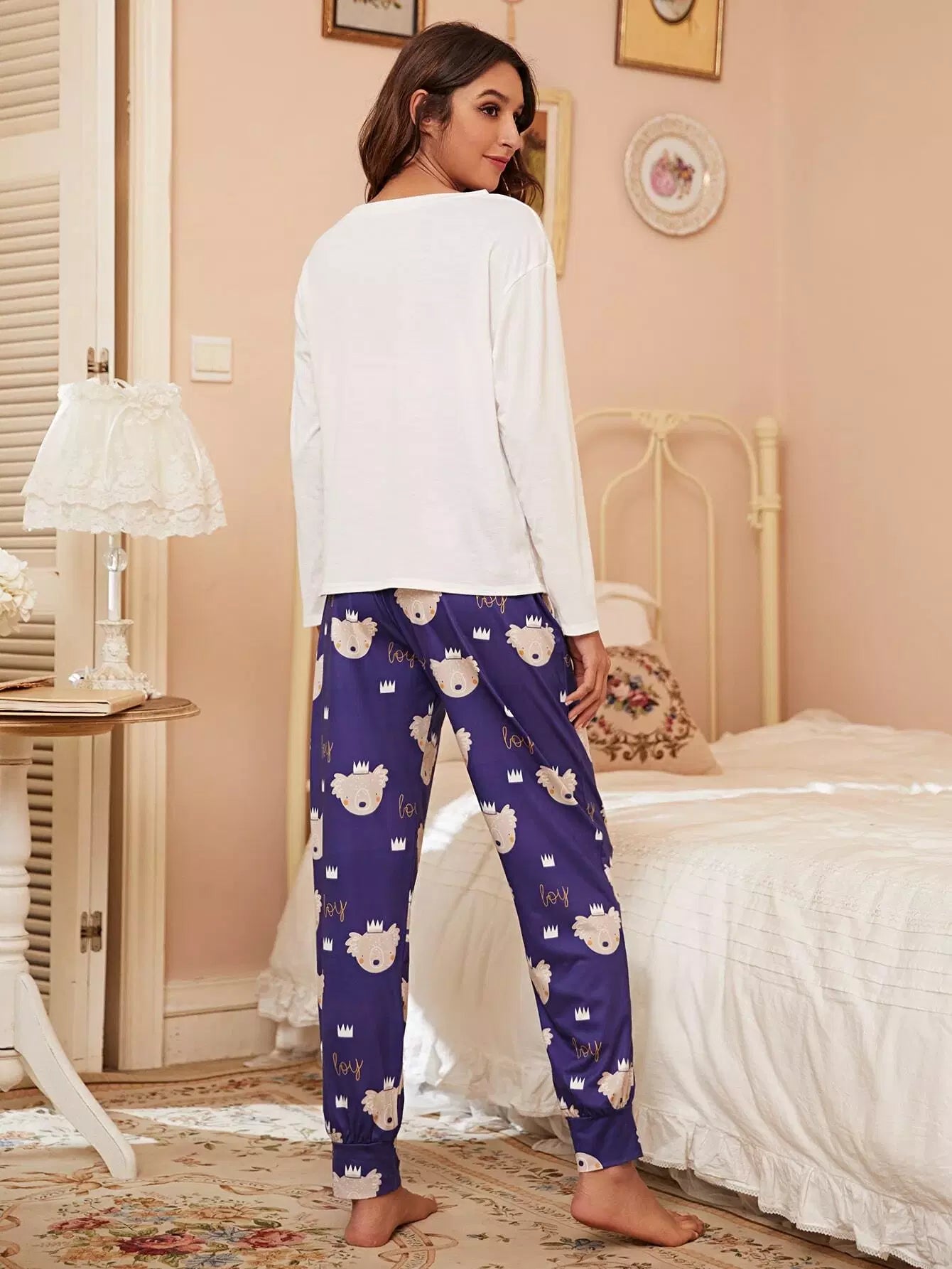 طقم بيجامة برسومات كرتونية وشعارات جرافيك