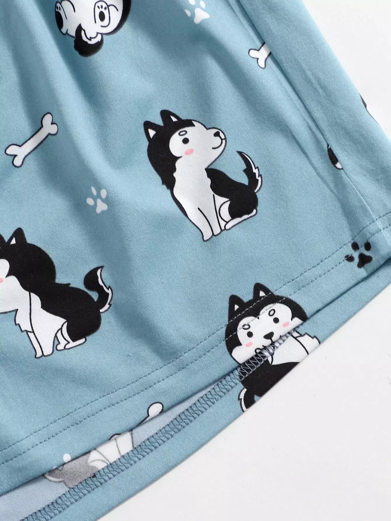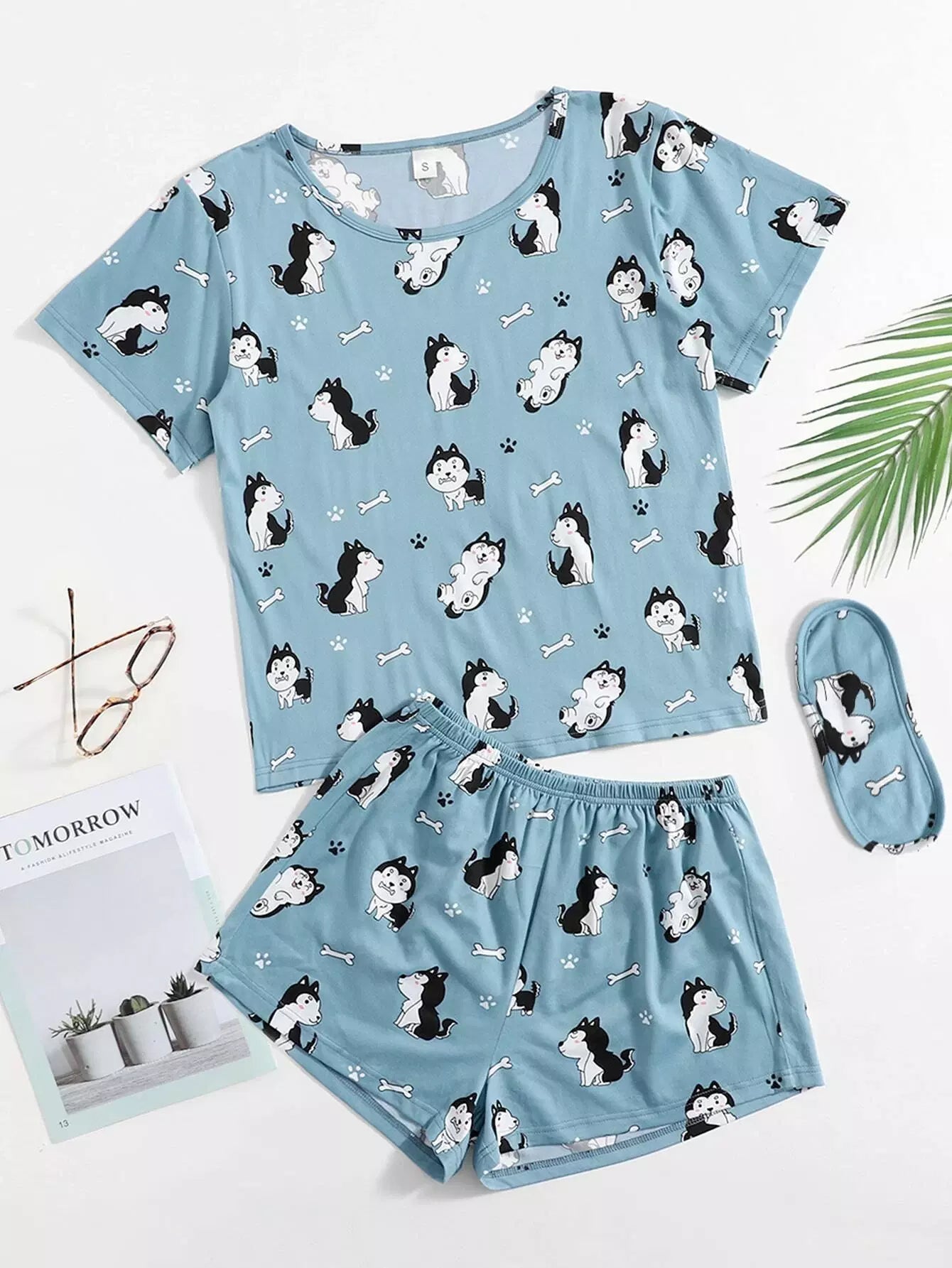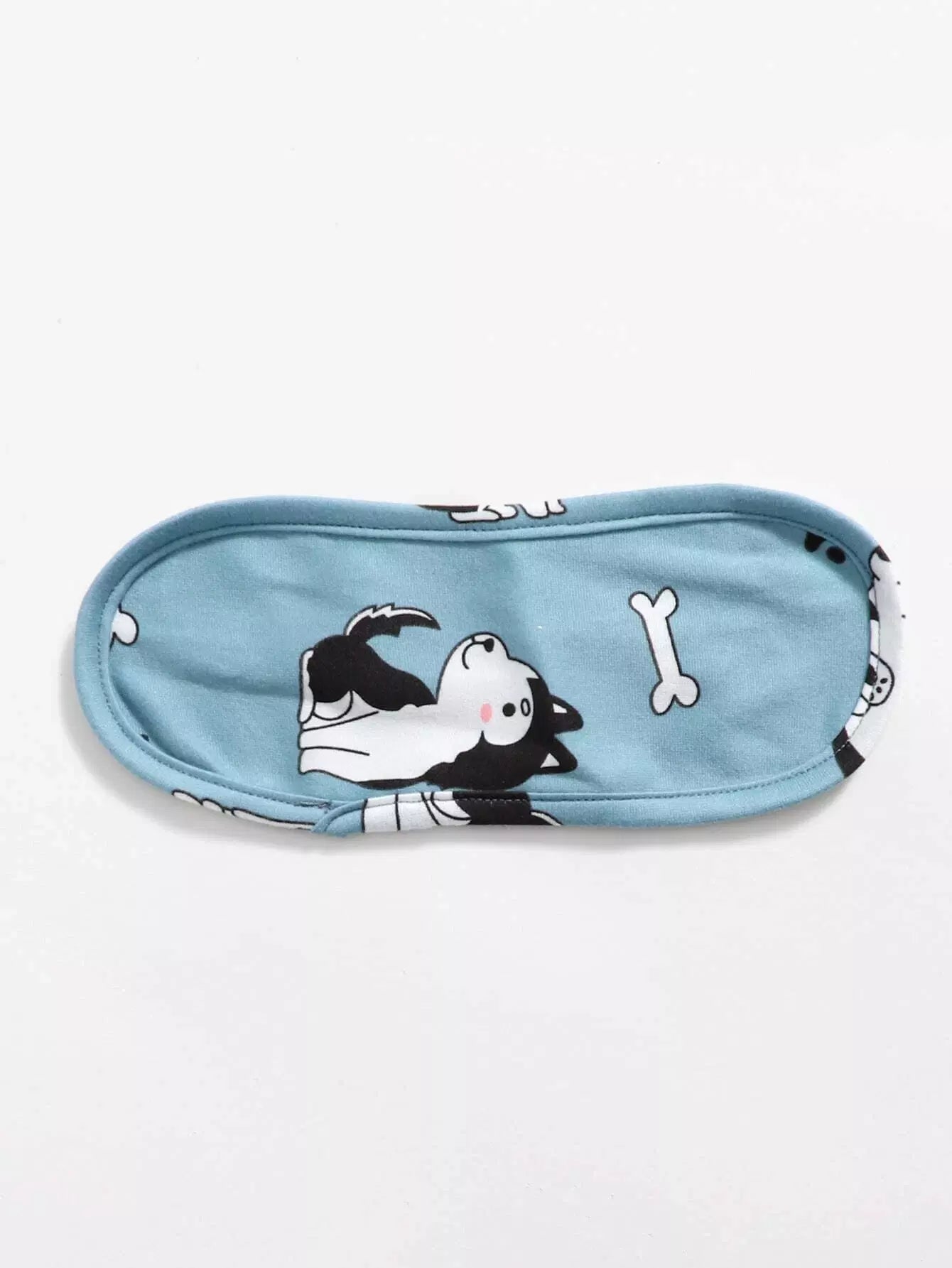 طقم بيجامة برسومات كرتونية مع قناع للعين