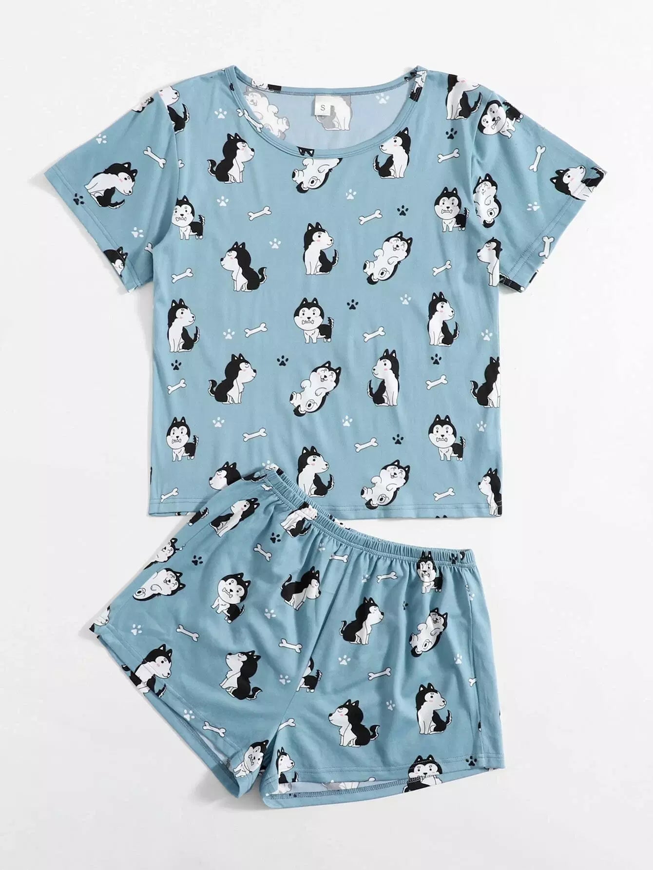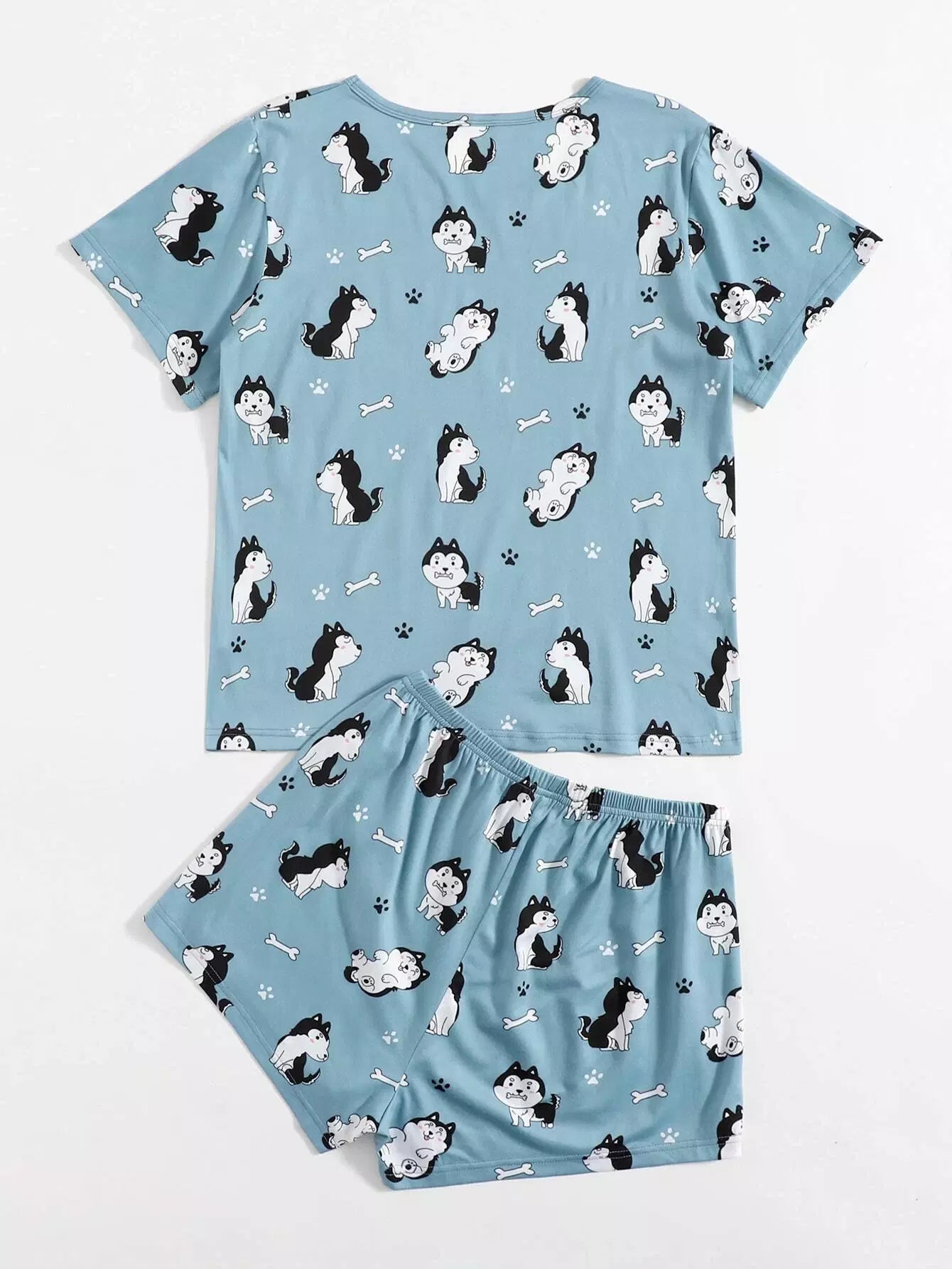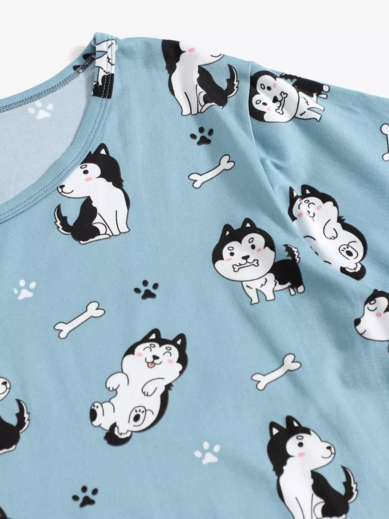 طقم بيجامة برسومات كرتونية مع قناع للعين