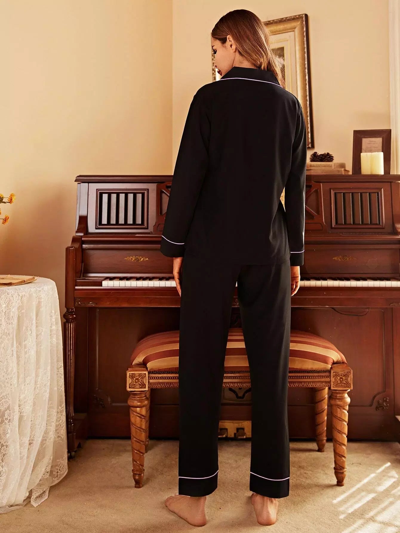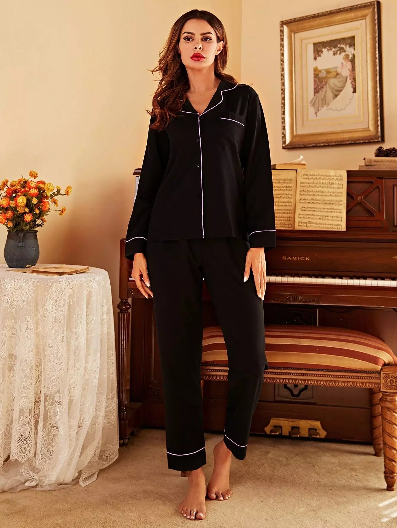 طقم بيجامة أمامي بأزرار أمامية بلون مغلف بلون مغاير