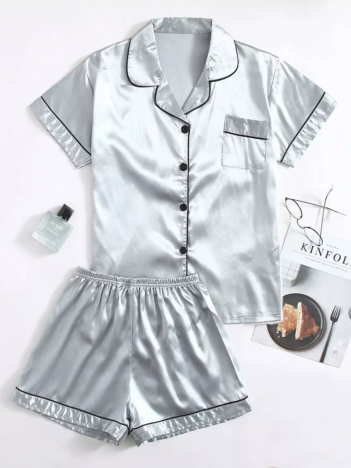 طقم بيجامة ساتان مغلف بلون مغاير