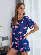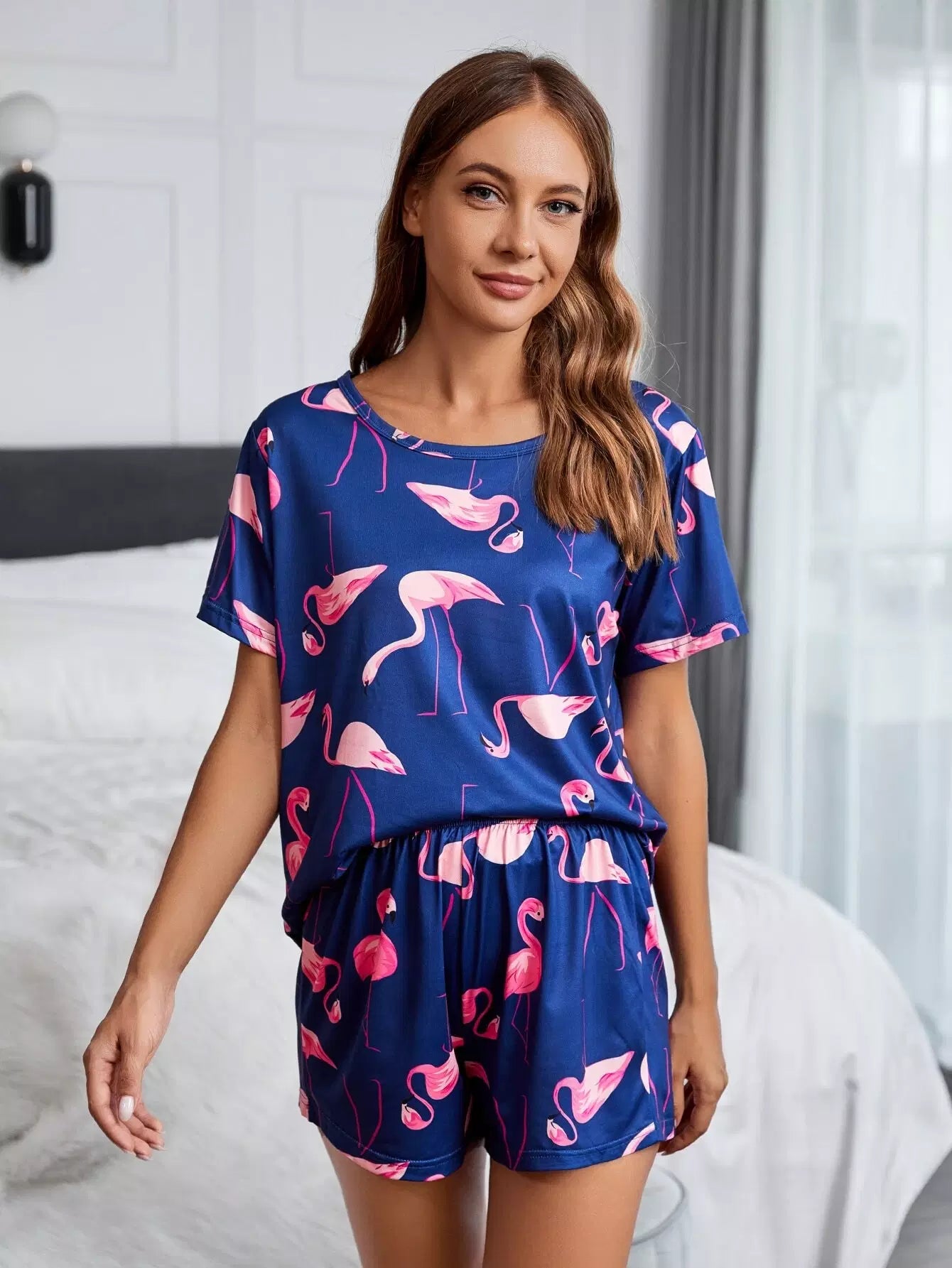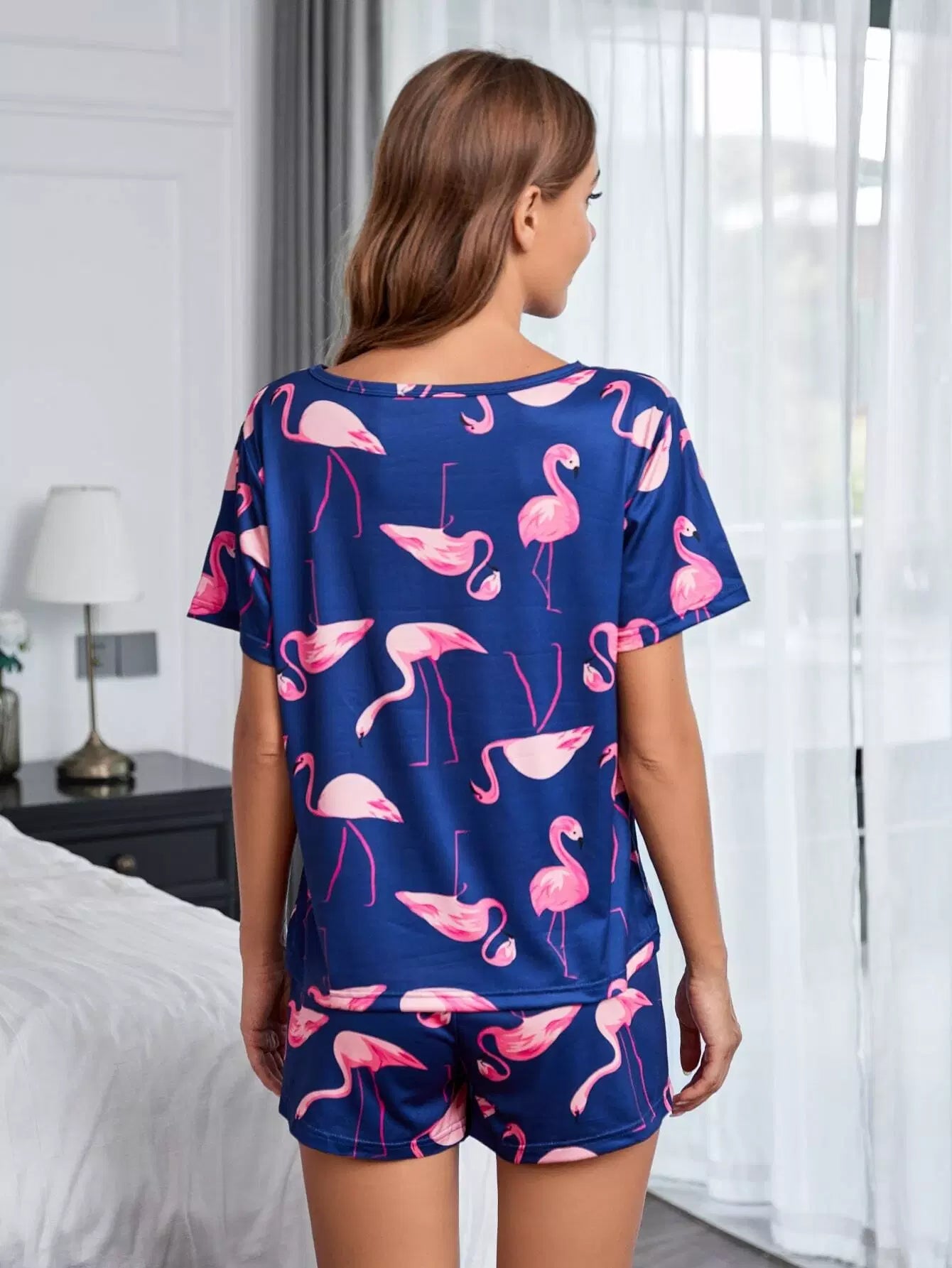 طقم بيجامة بطبعة فلامنغو مع قناع للعينين