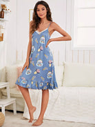 للنساء - فستان نوم كامي بحاشية مكشكشة من الدانتيل المتباين بطبعات زهور
