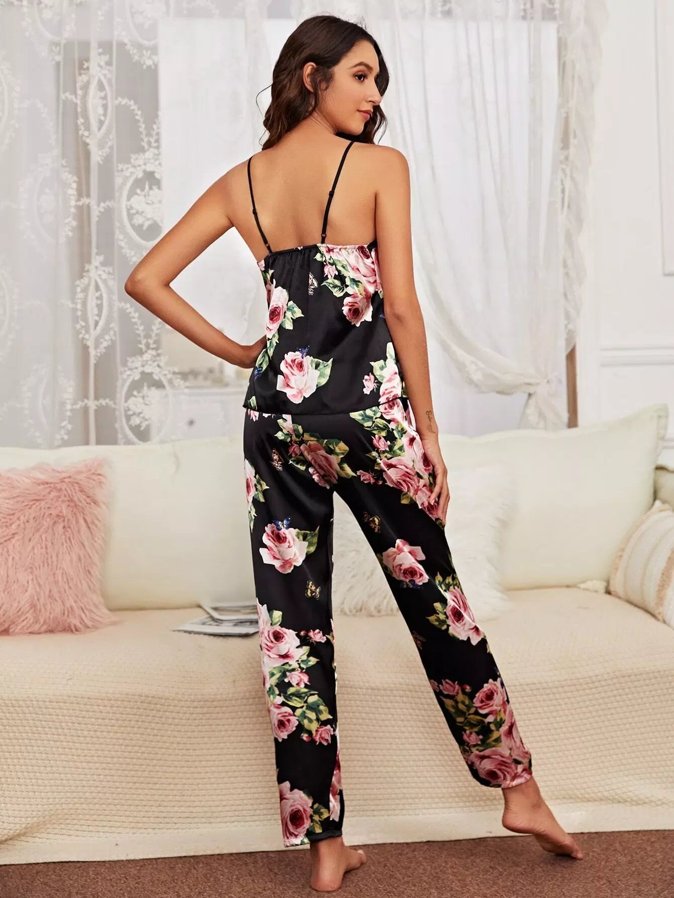 طقم ليلي ساتان كامي ساتان بطبعة زهور