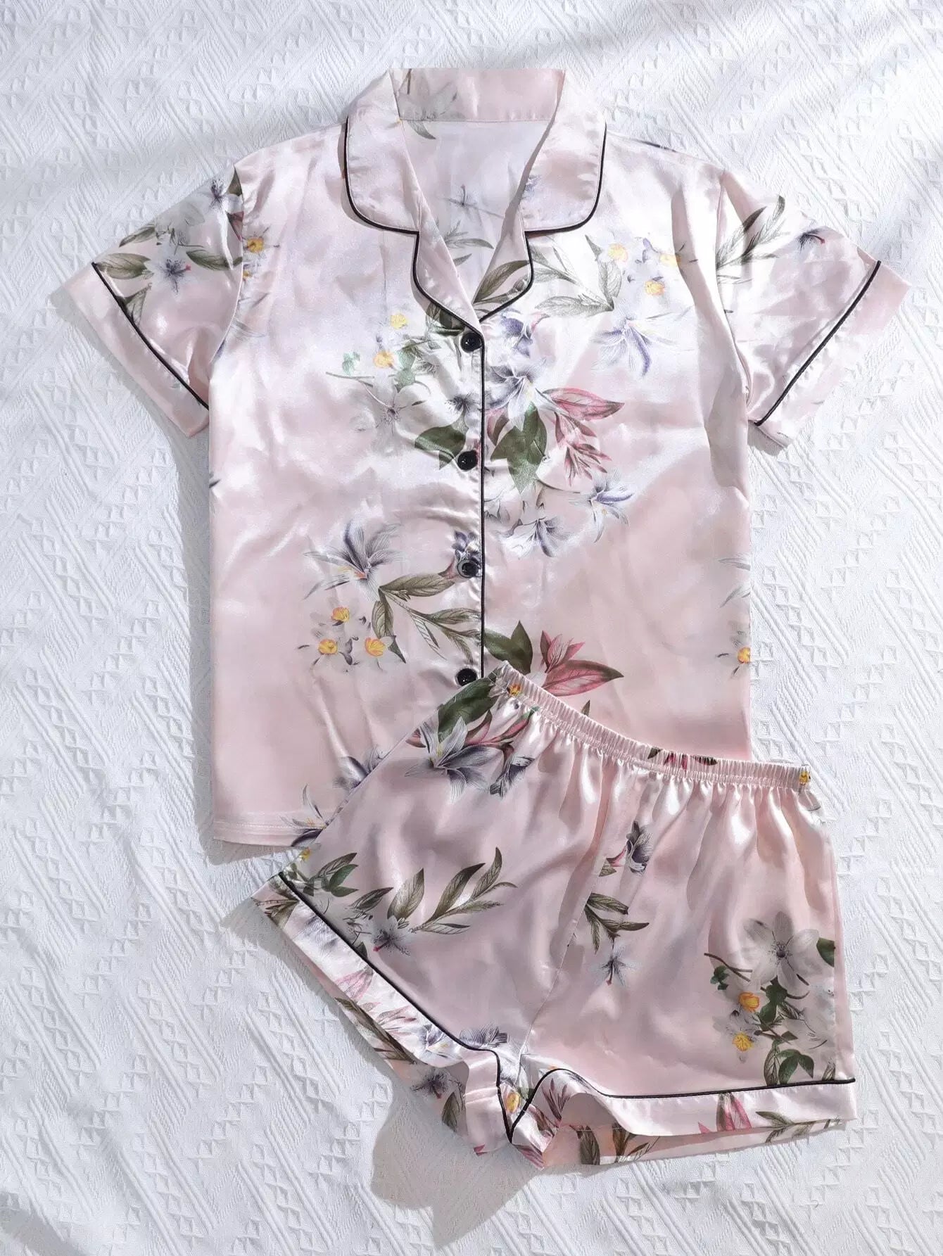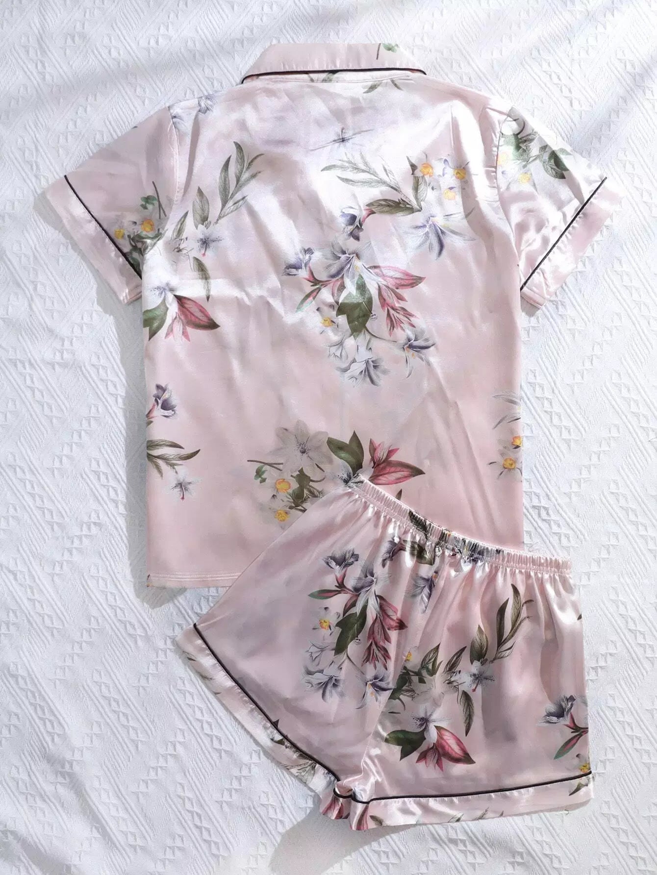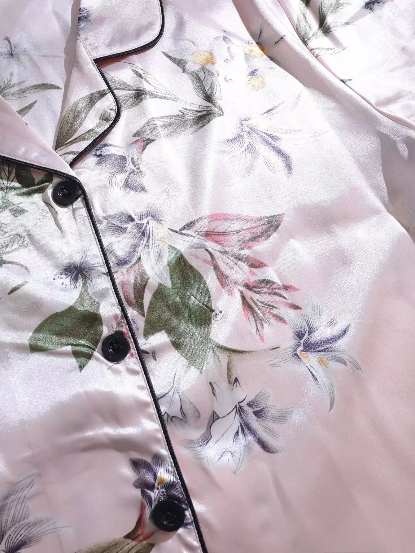 للنساء - طقم ليلي من الساتان بطبعة زهور