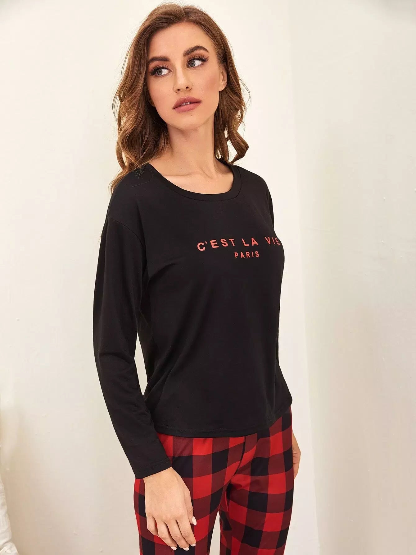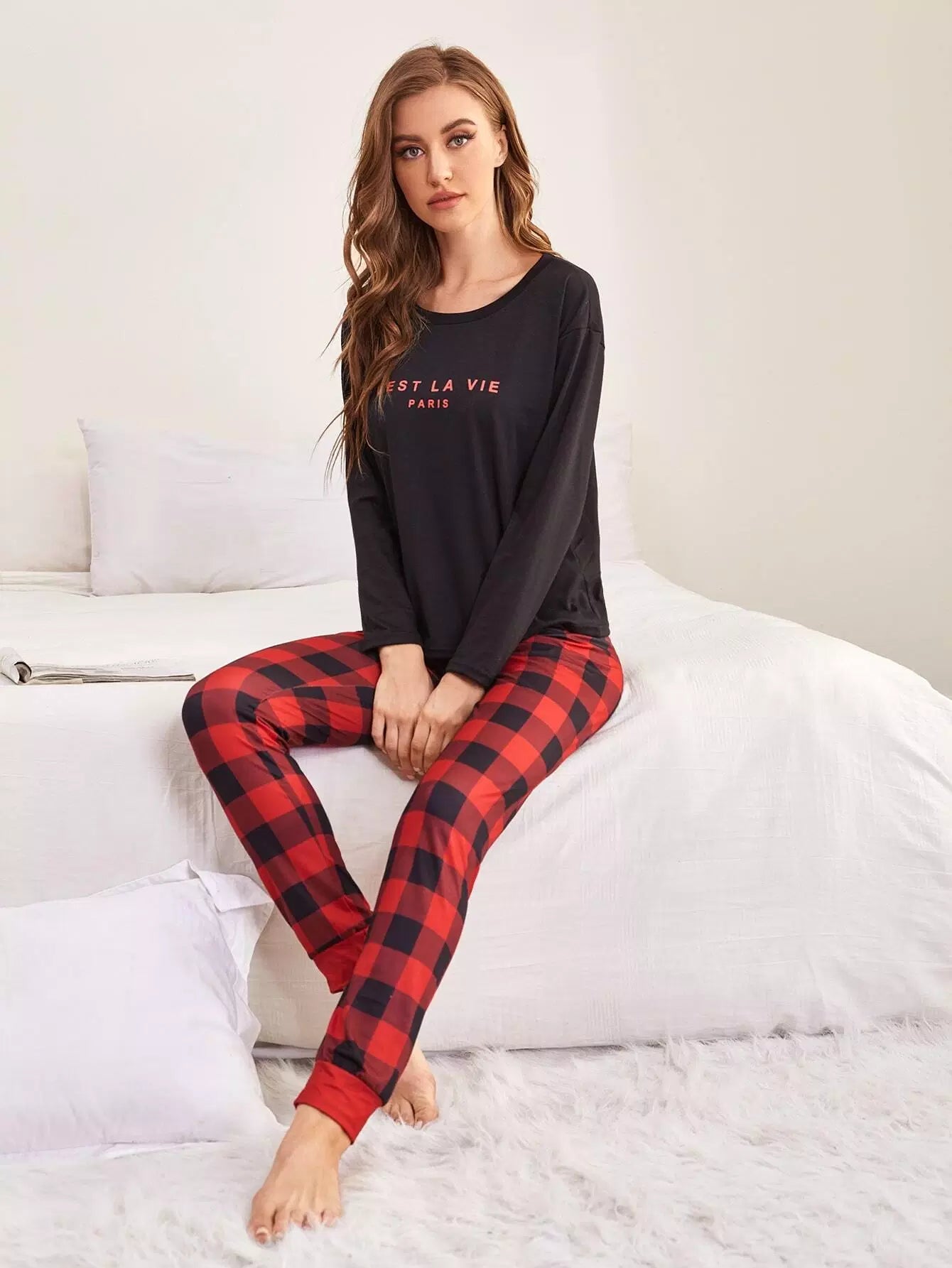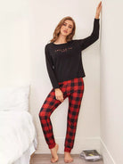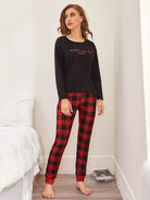 طقم بيجامة قماش قطني ورسومات حروف قطنية