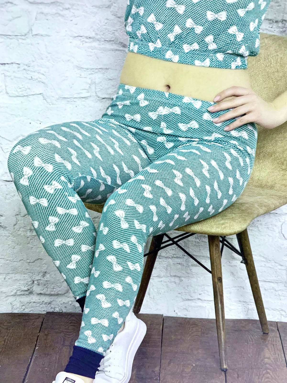 بيجامة خضراء مع طباعة عقدة بيضاء