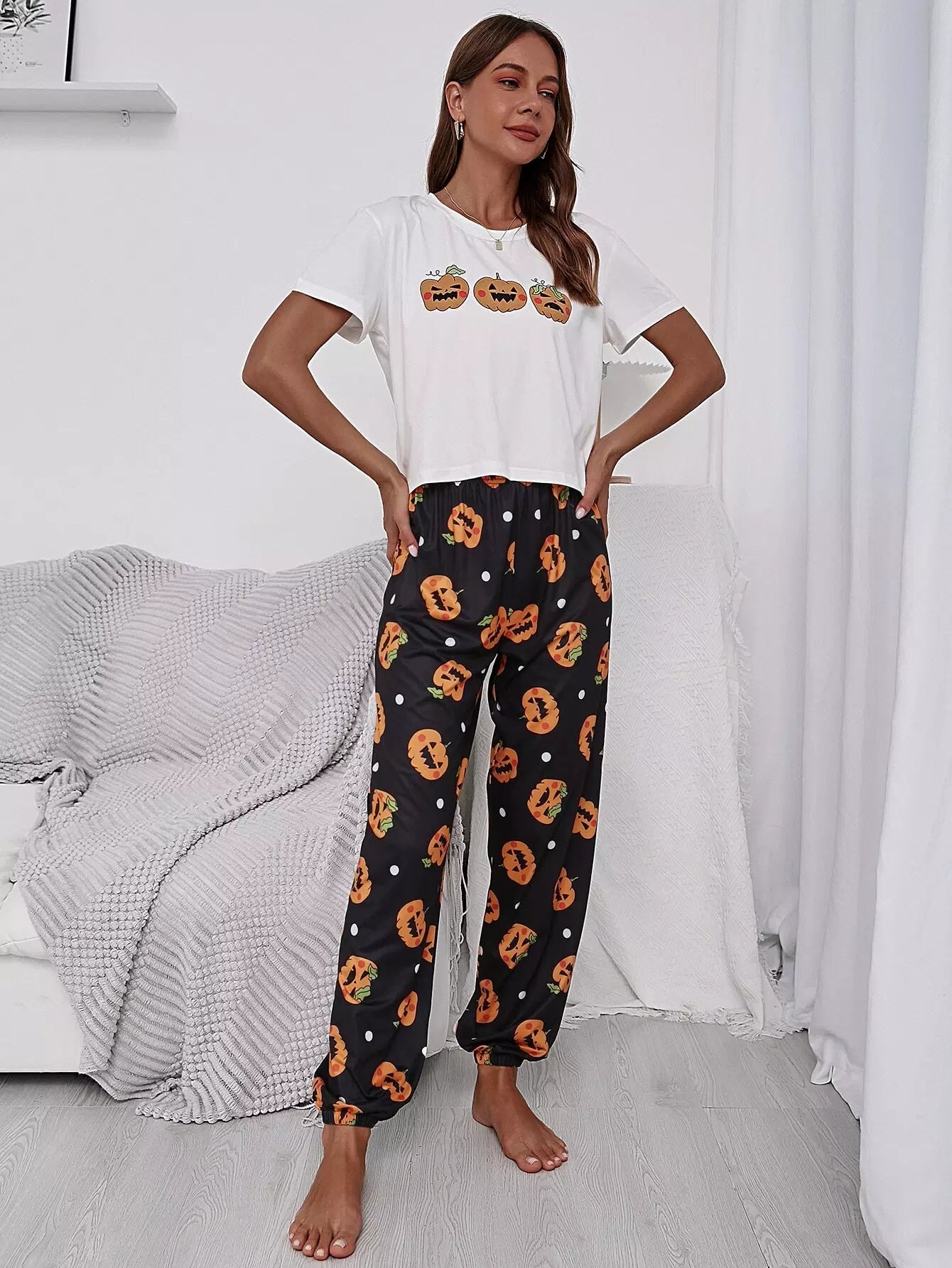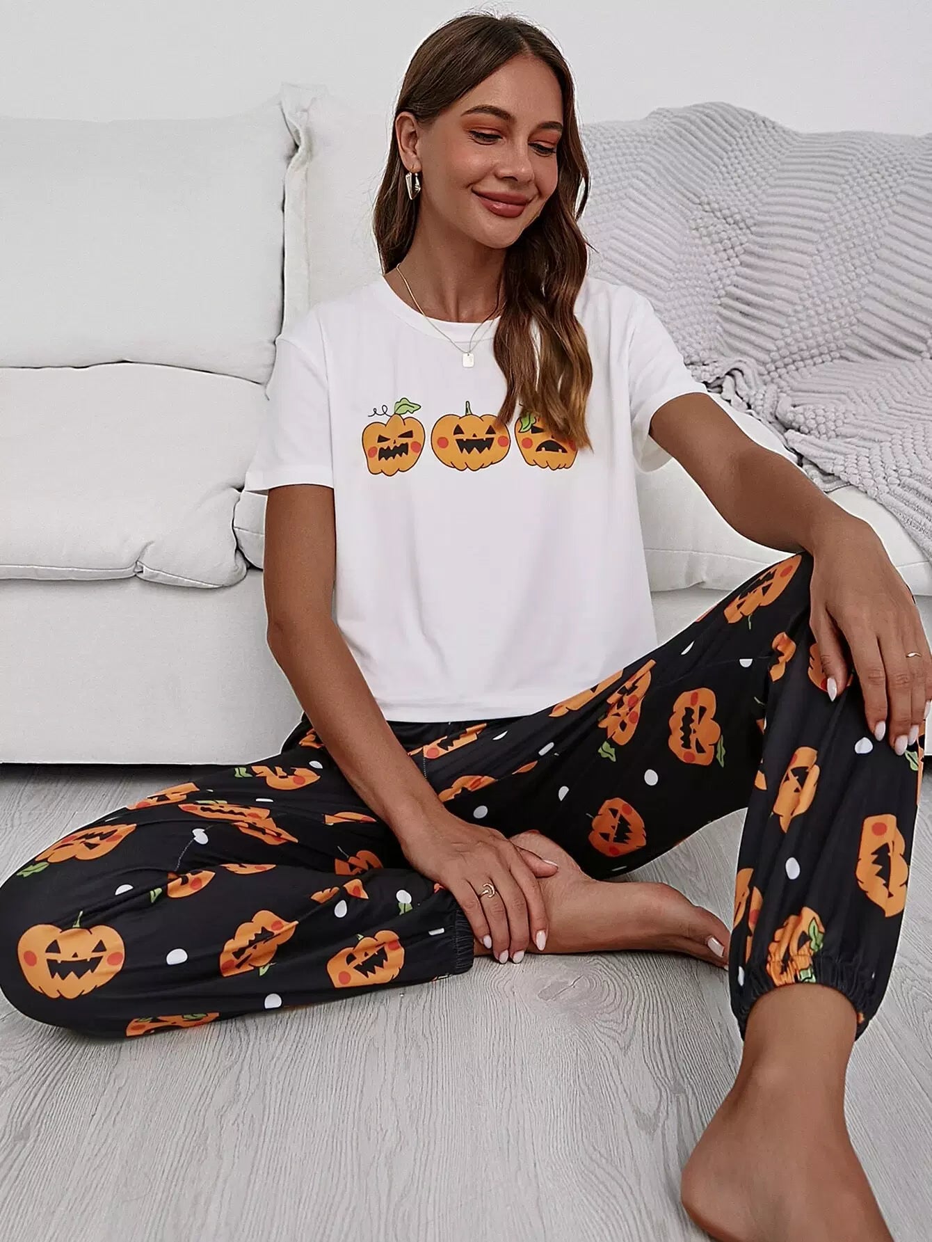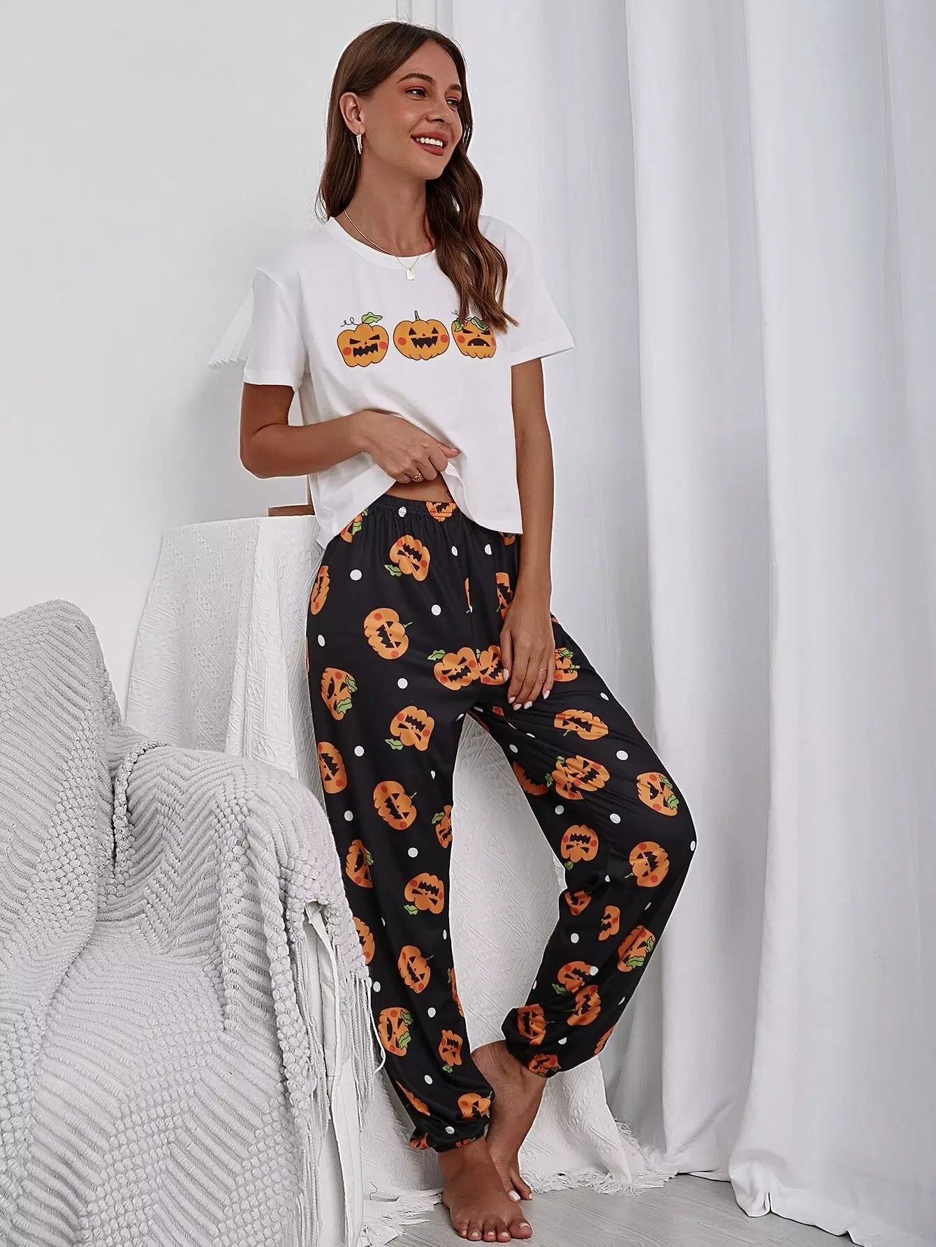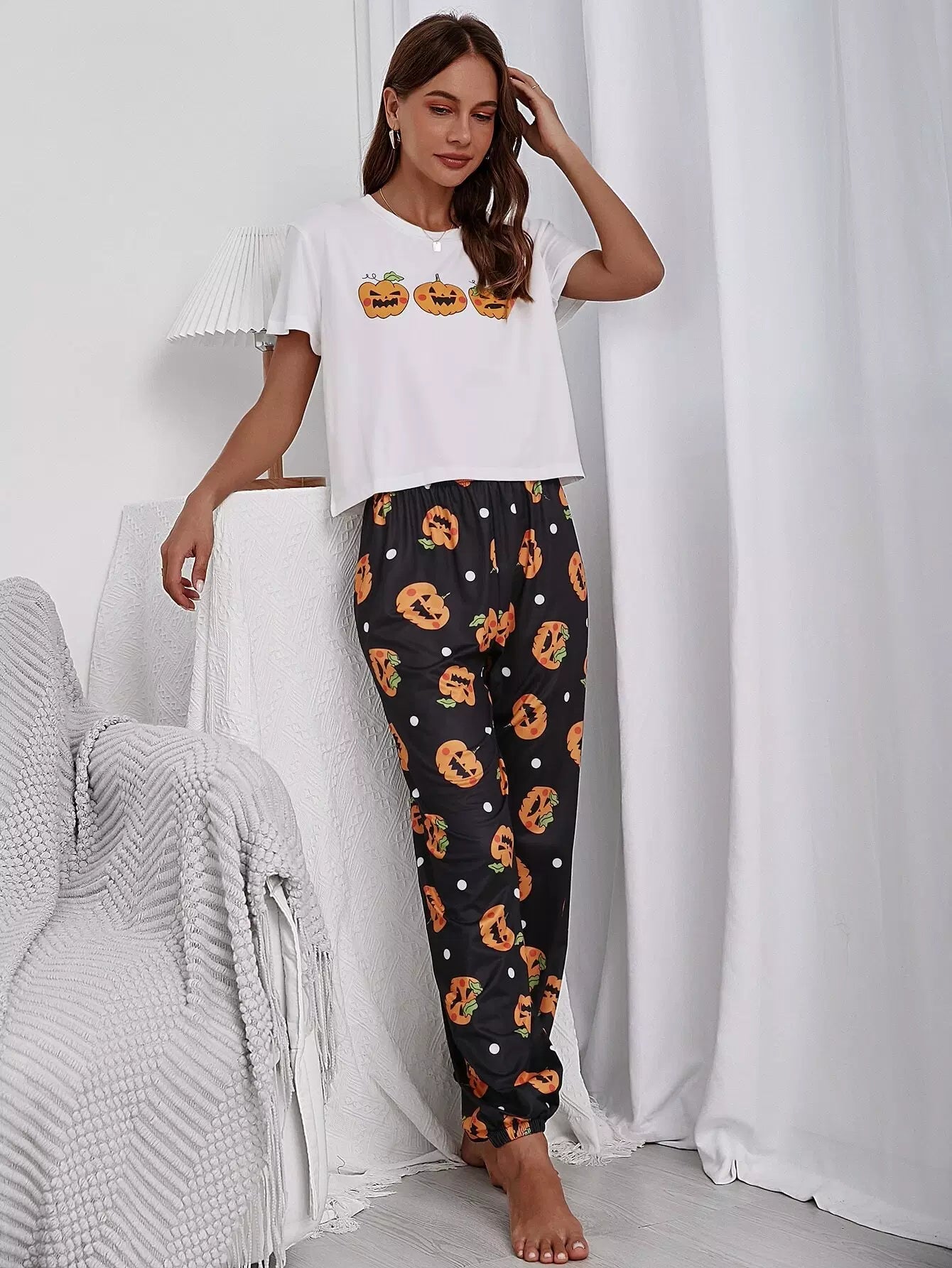 النساء - طقم بيجامة بطبعة الهالوين