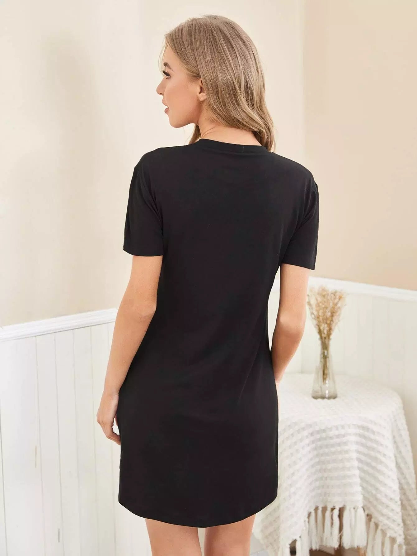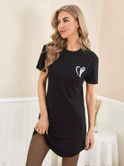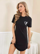 فستان نوم بأكمام قصيرة بطبعة قلب