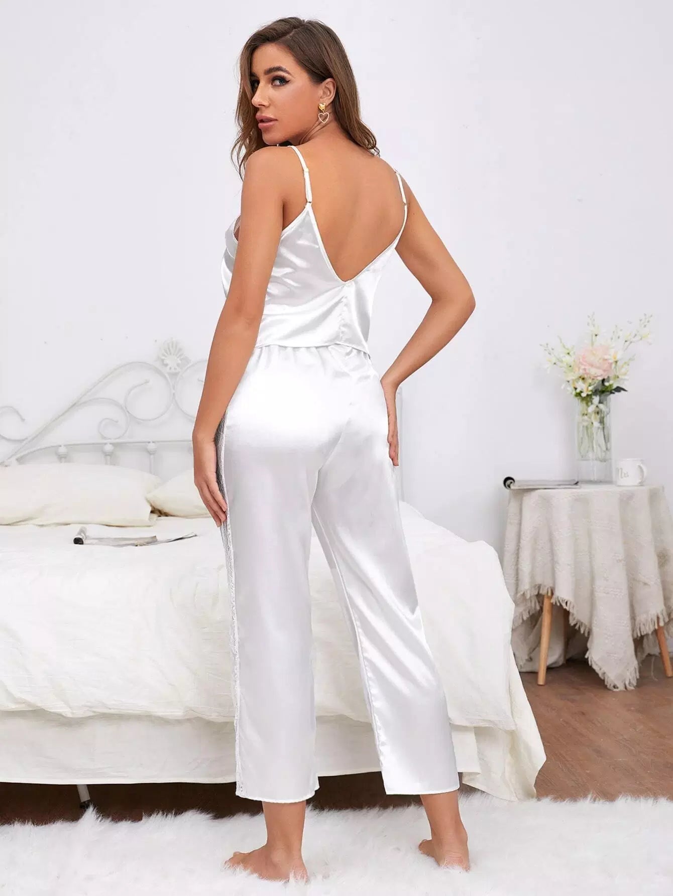 النساء - طقم PJ من الساتان ذو لوحة من الدانتيل