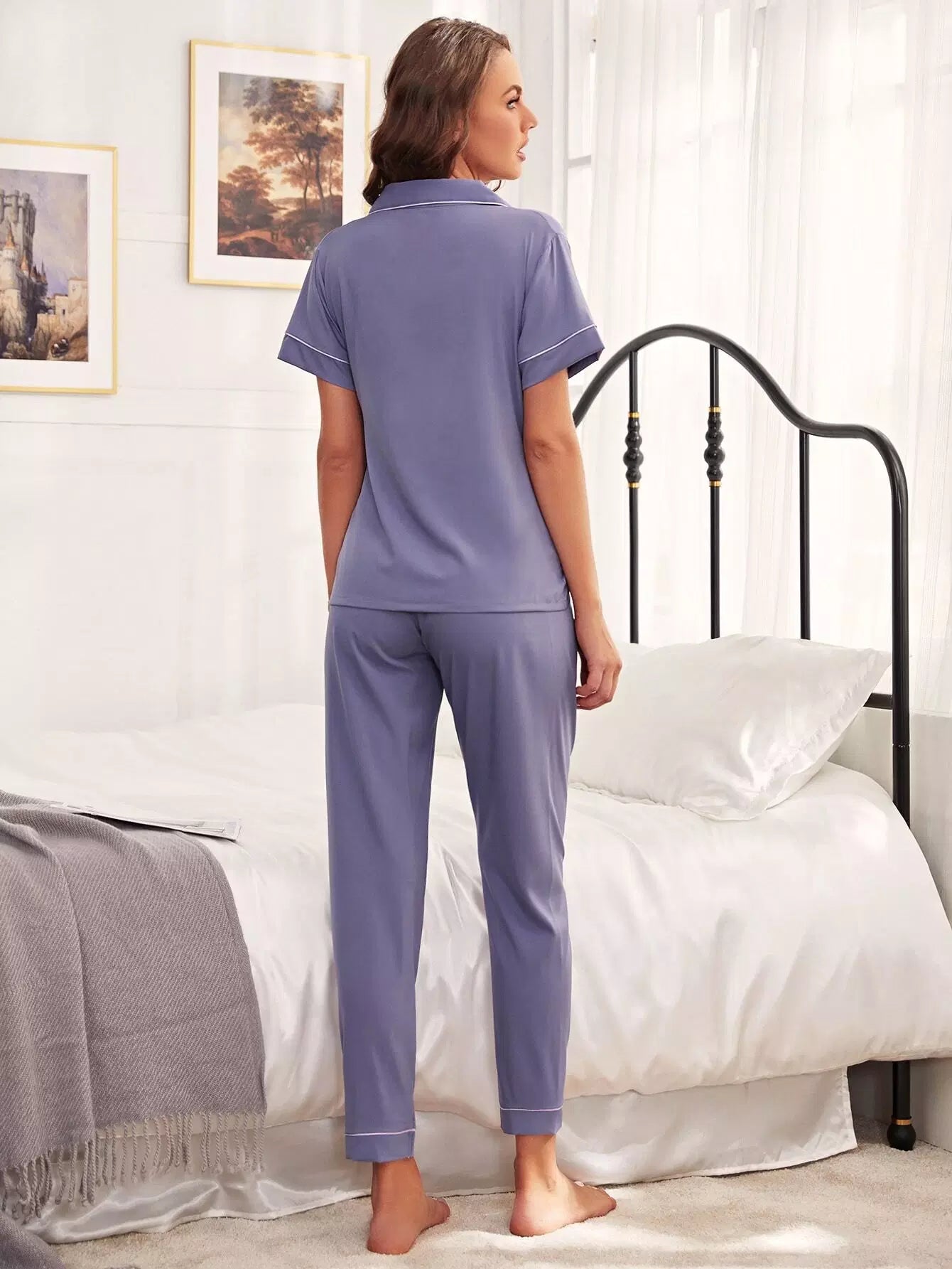 طقم بيجامة برقبة رقبة العنق بلون مغاير