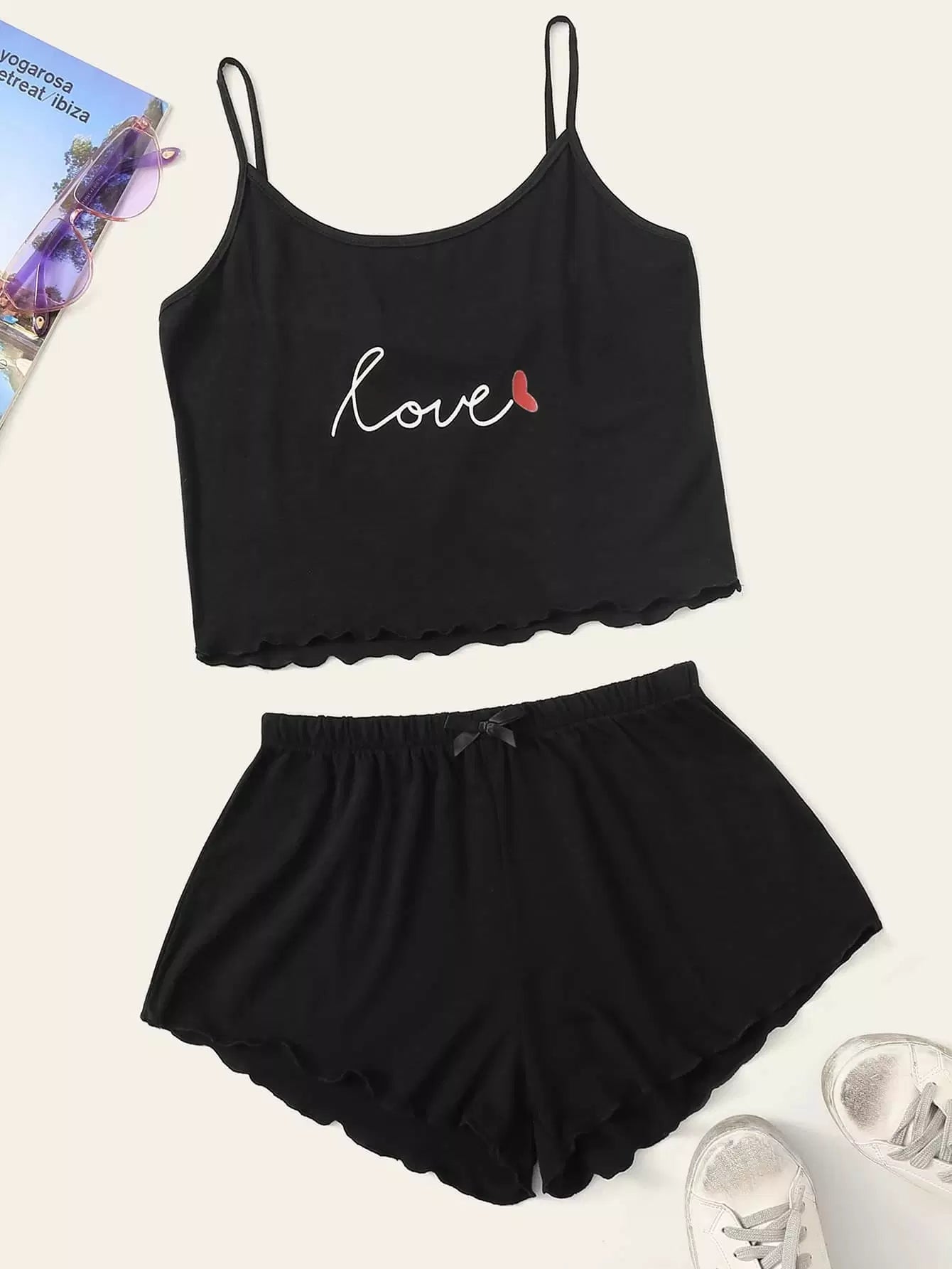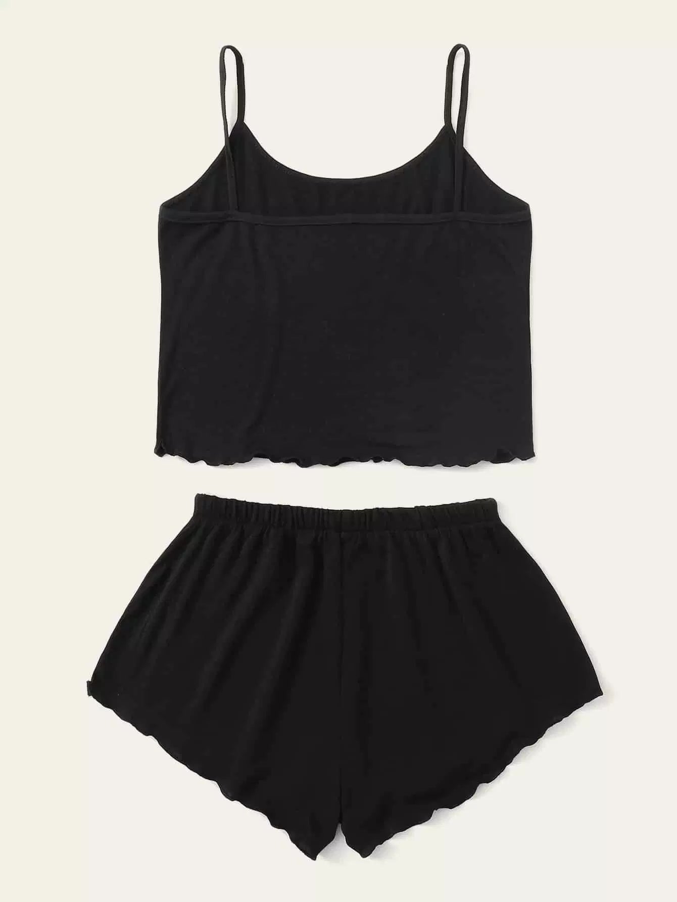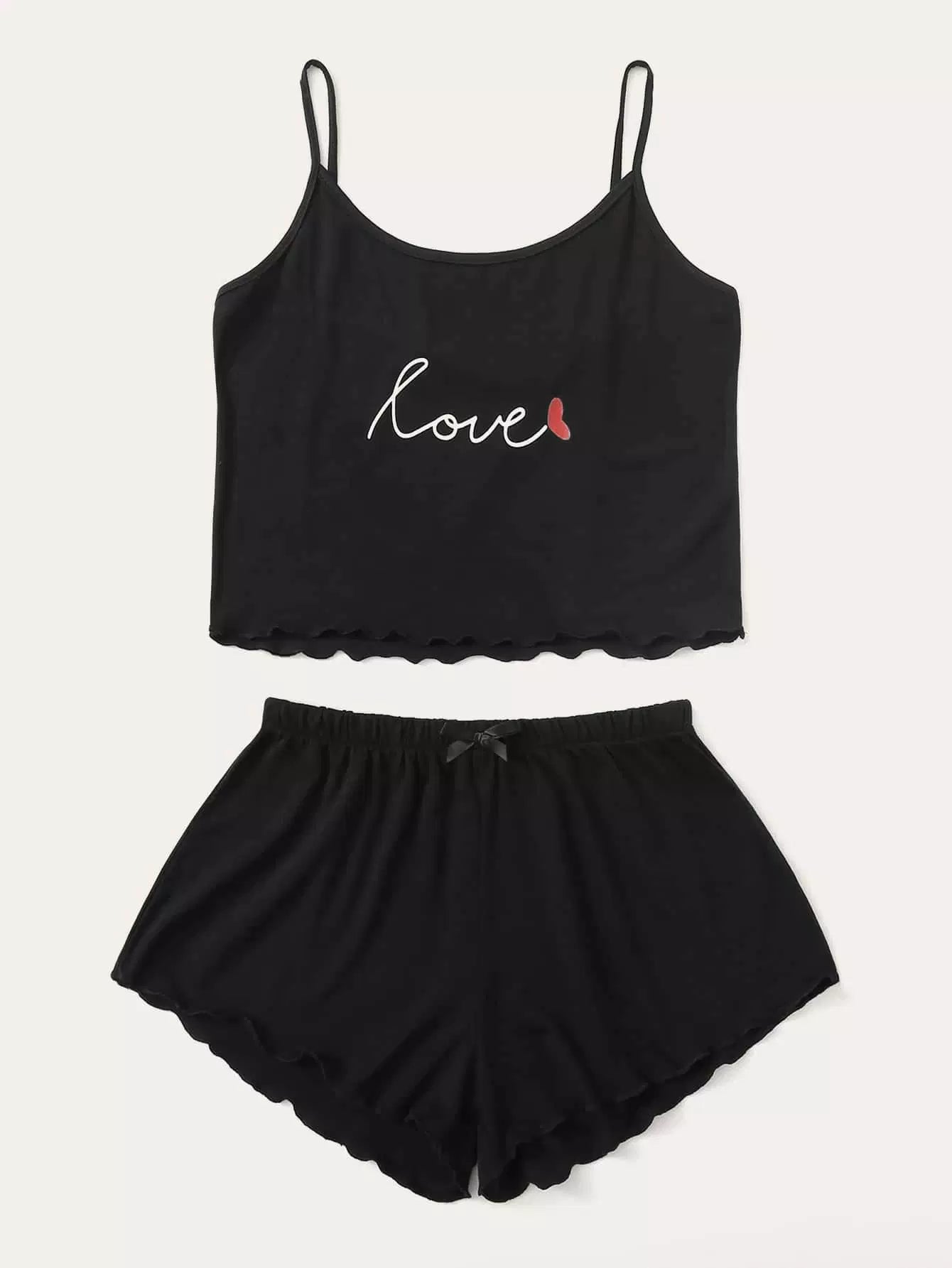 طقم بيجامة كامي بطبعة حروف بحاشية خس