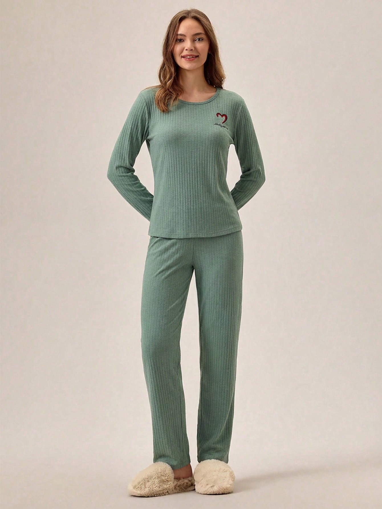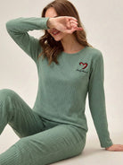 طقم ملابس نوم من لوملين مصنوع من القطن بنسبة 100%، مطرز بحروف، ومحبوك بنمط مضلع