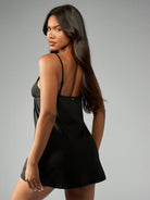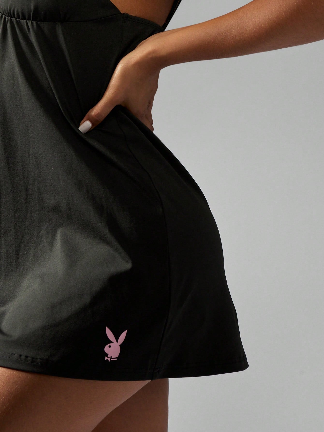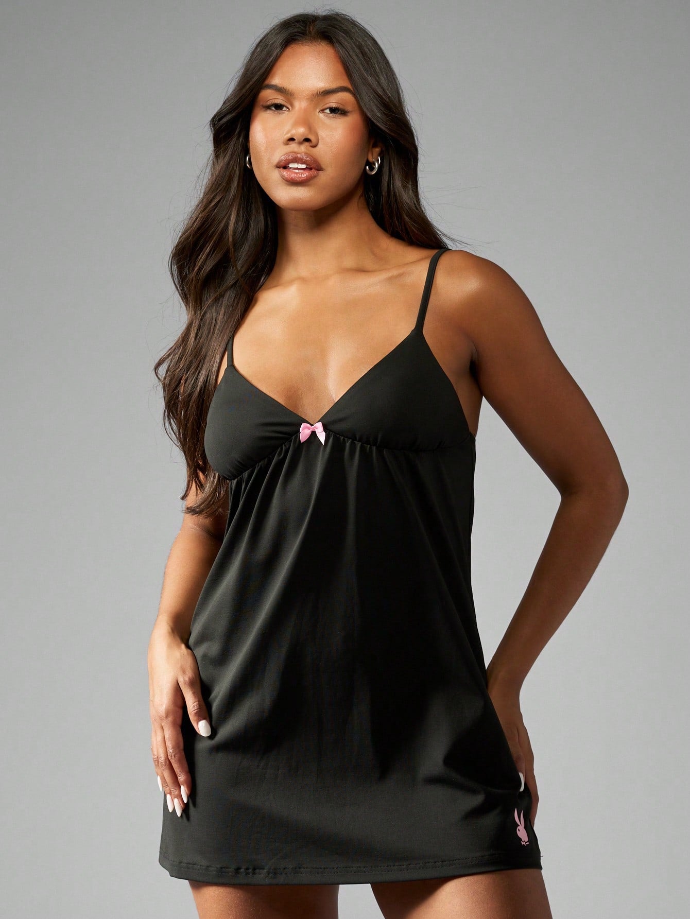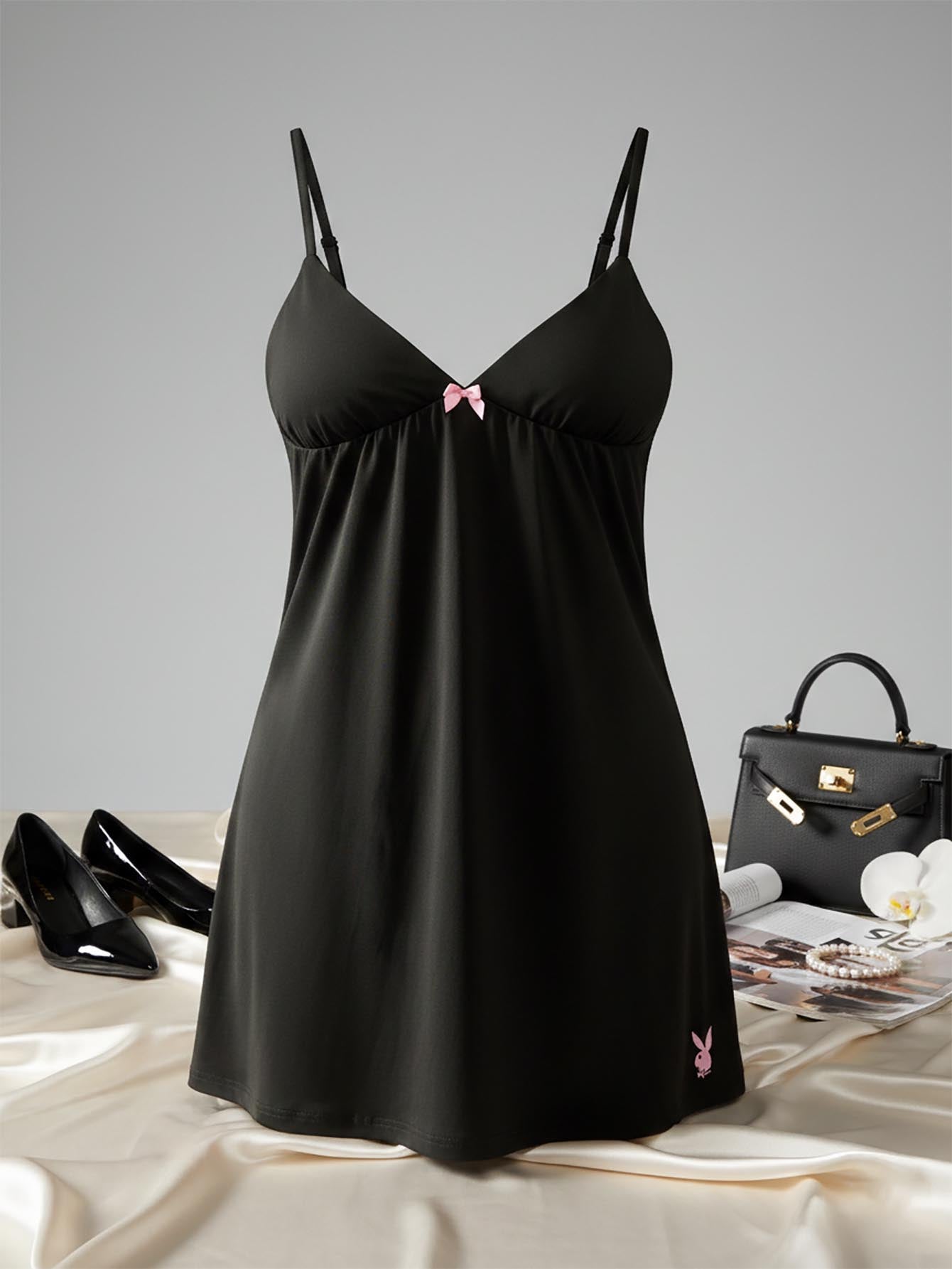 فستان نوم ساتان مريح من Missguided x Playboy لعيد الميلاد، مزين بفيونكة رقيقة وخصر مرتفع