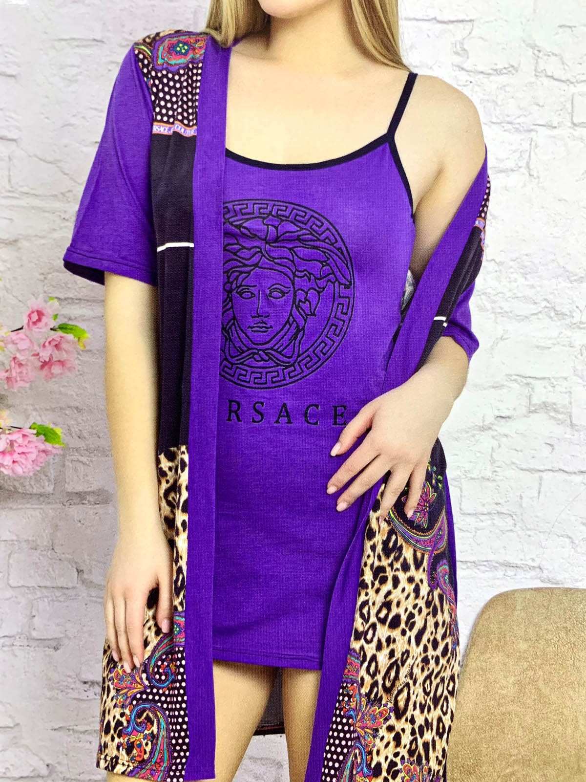 بيجامة بحزام طبعة جلد الفهد بنفسجي قطعتين