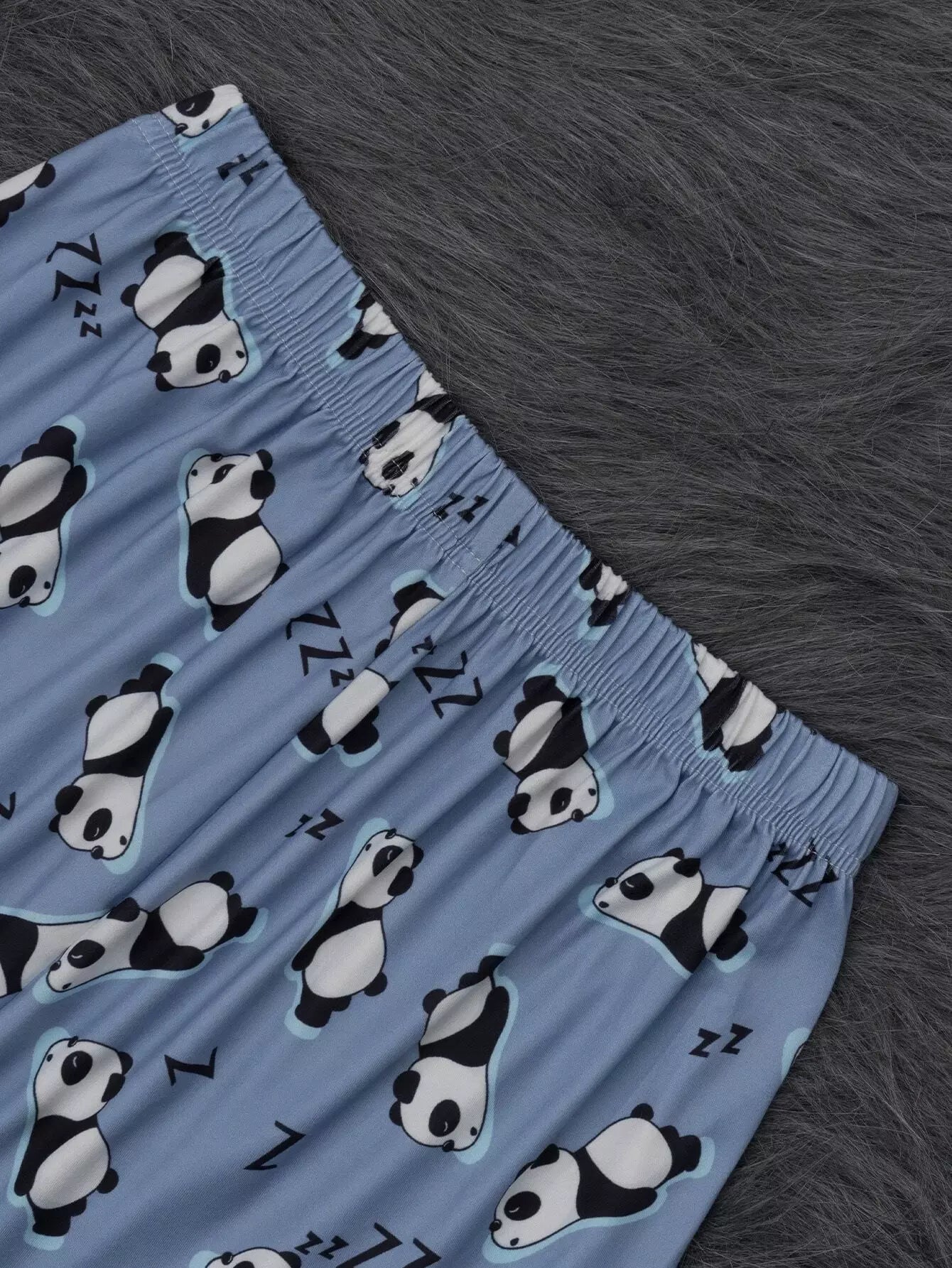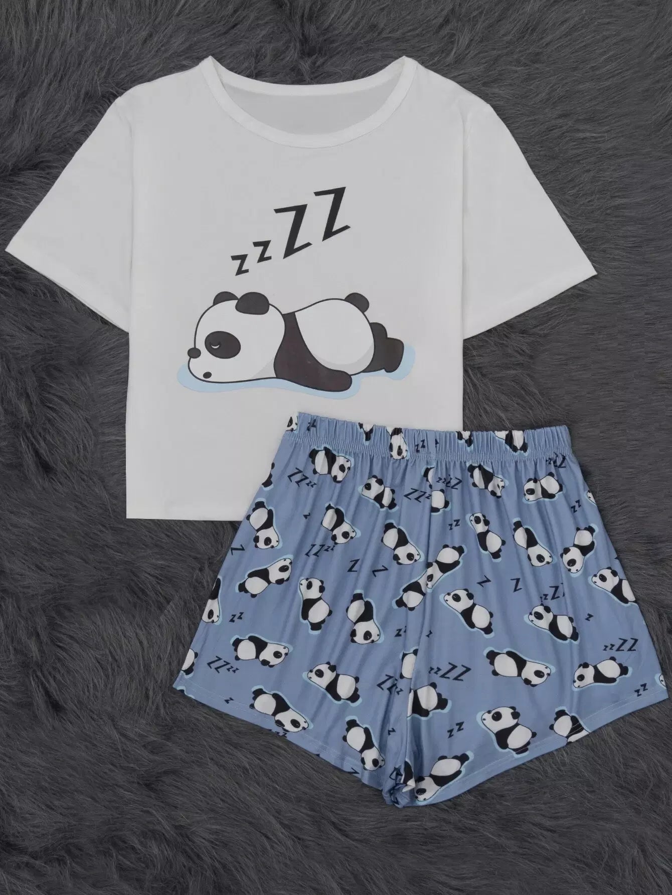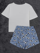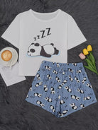 طقم تي شيرت وشورت بيجامة برسومات الباندا وحروف الباندا
