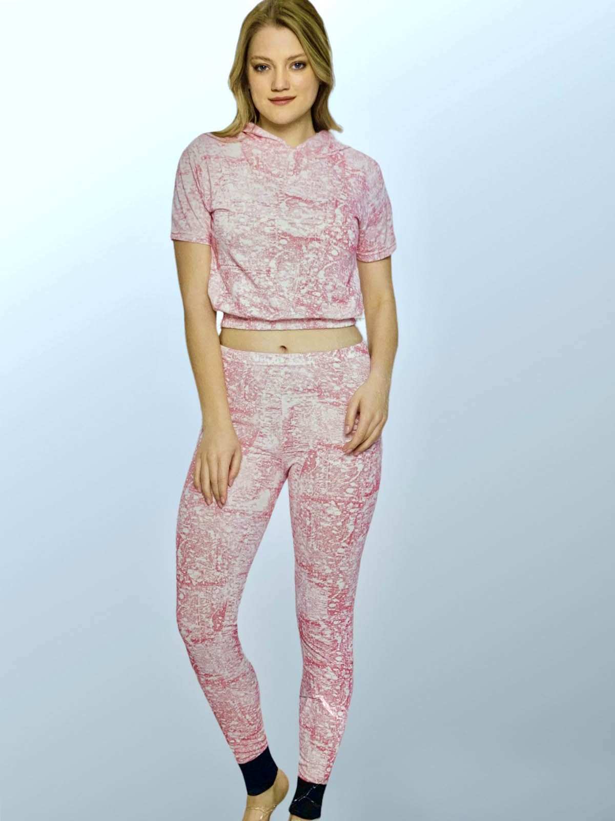 بيجامة وردية مع طباعة زهور صفراء وحمراء