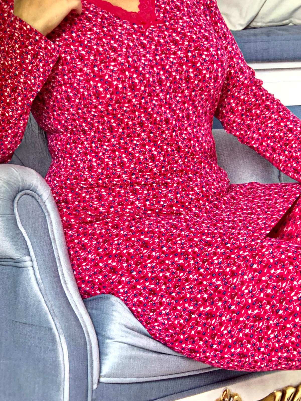 بيجامة حمراء مع طباعة زهور بيضاء وزرقاء