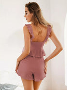 طقم قميص كشكش بحواف مكشكشة وشورت قصير طقم صالة