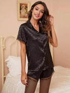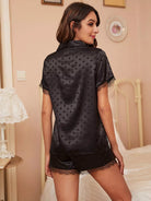 طقم ليلي من الساتان المنقّط بالدانتيل المنقّط
