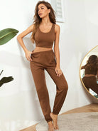 طقم قميص قصير سادة بدون أكمام مع بنطلون قصير سادة