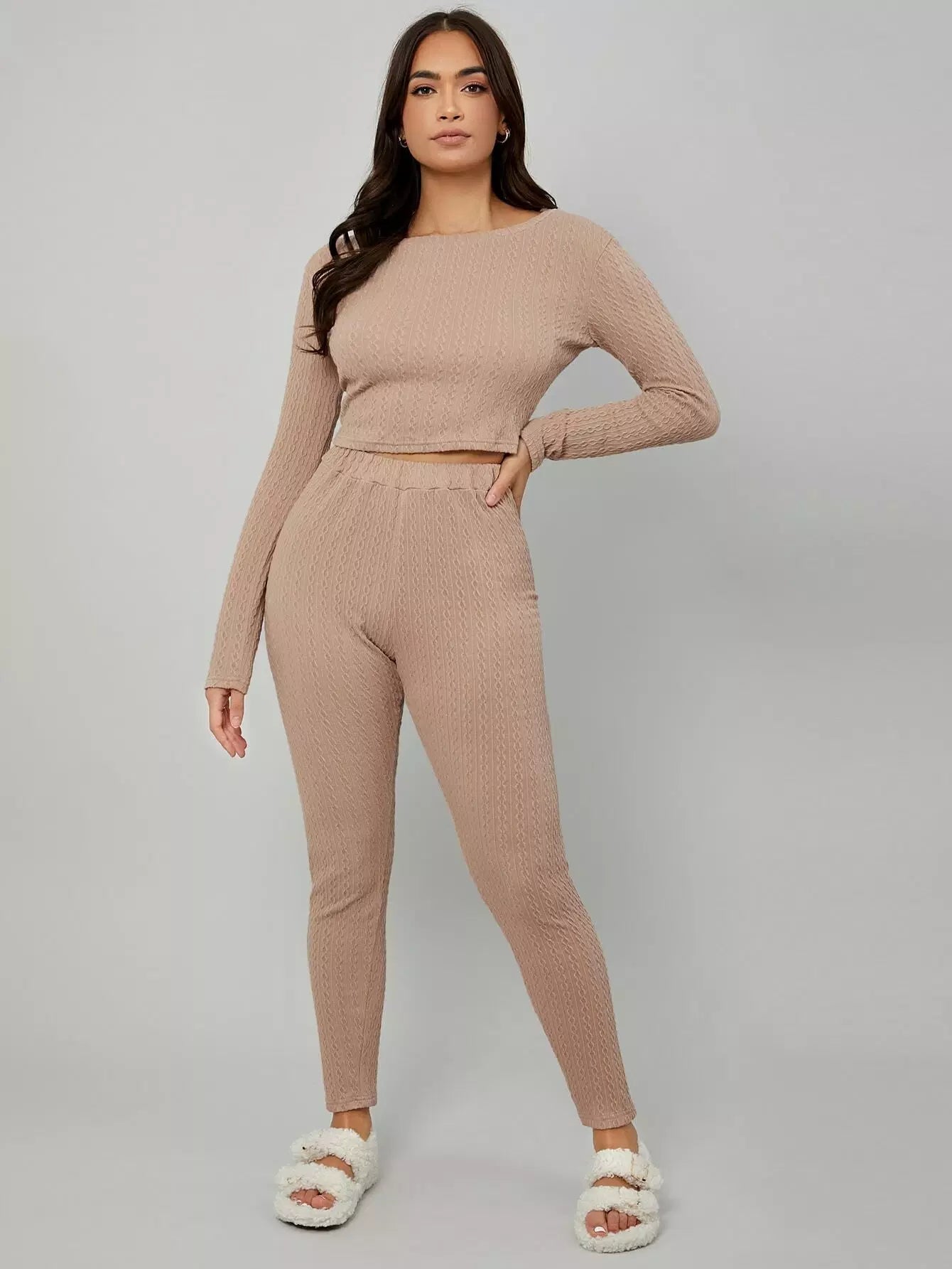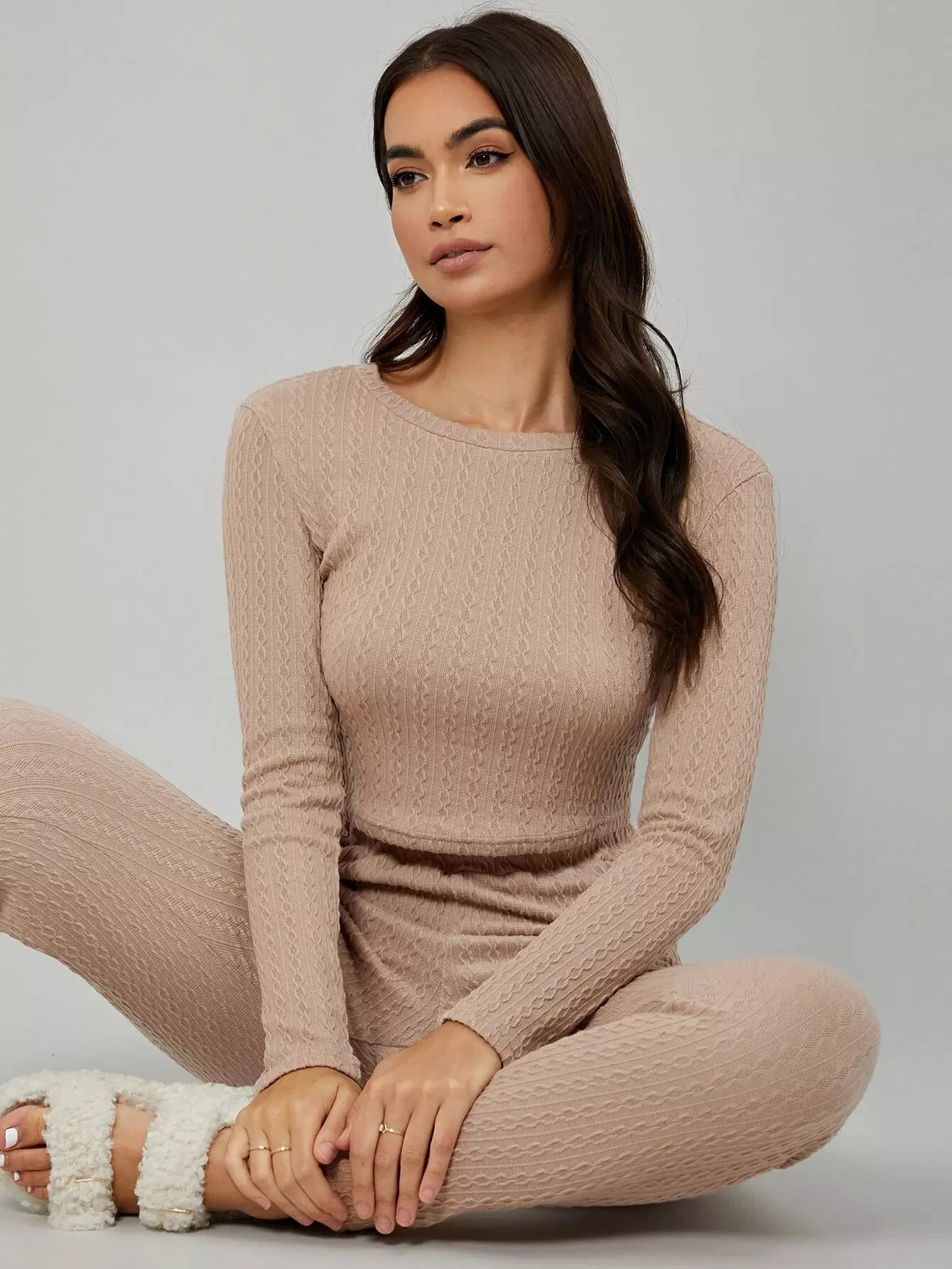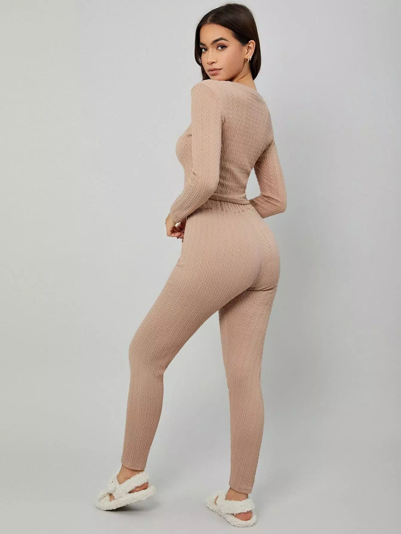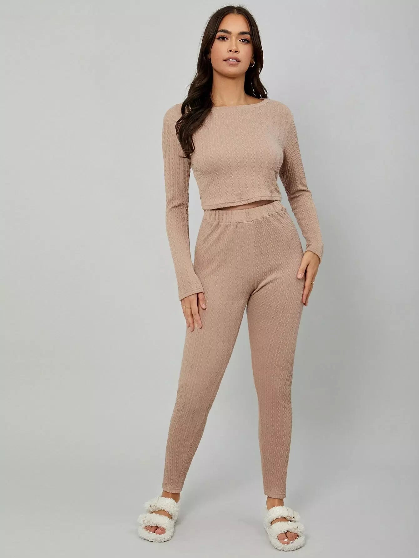 طقم قميص قصير سادة وسروال ضيق سادة لصالة الاستراحة