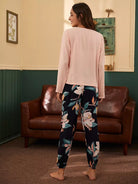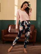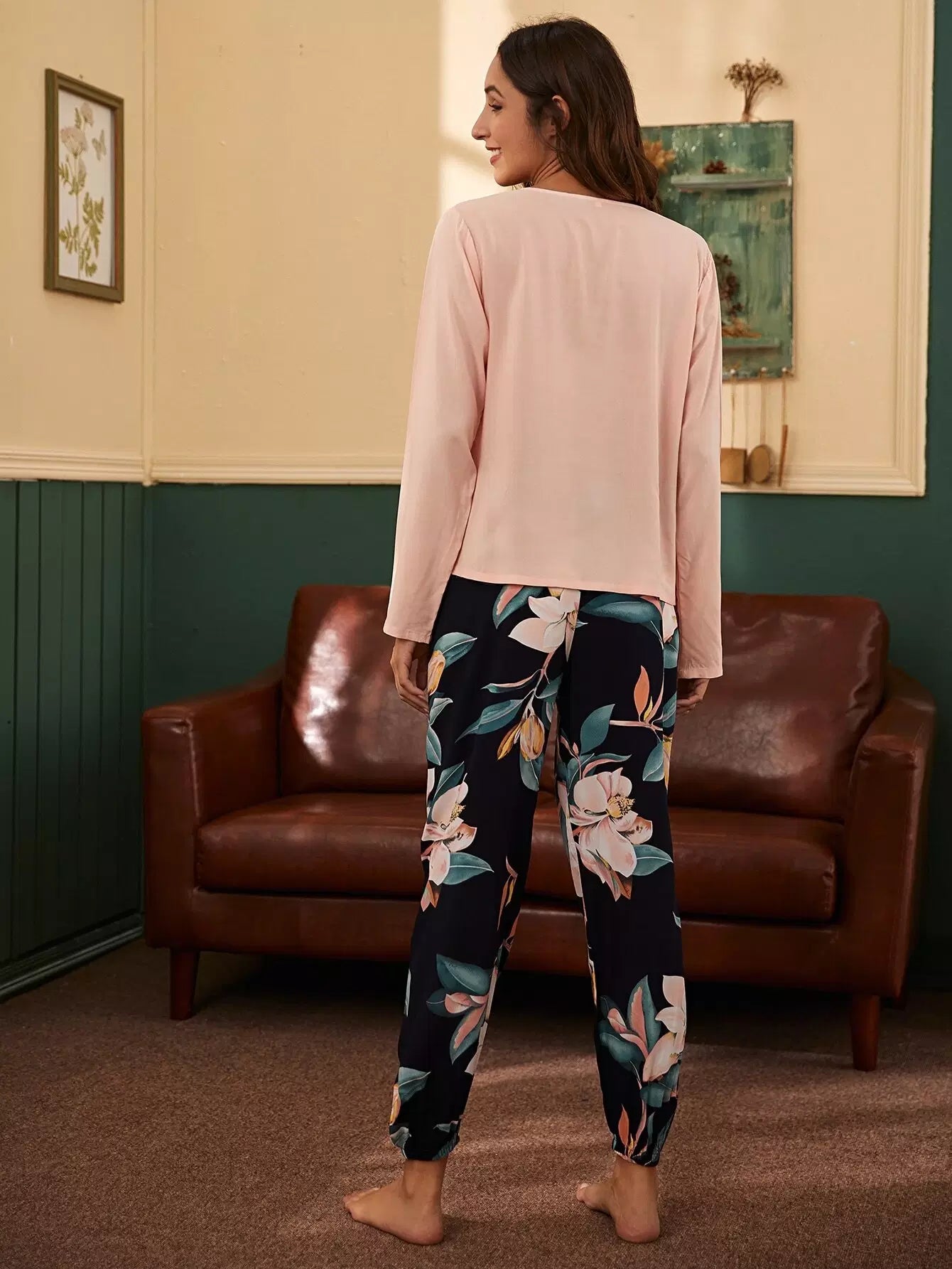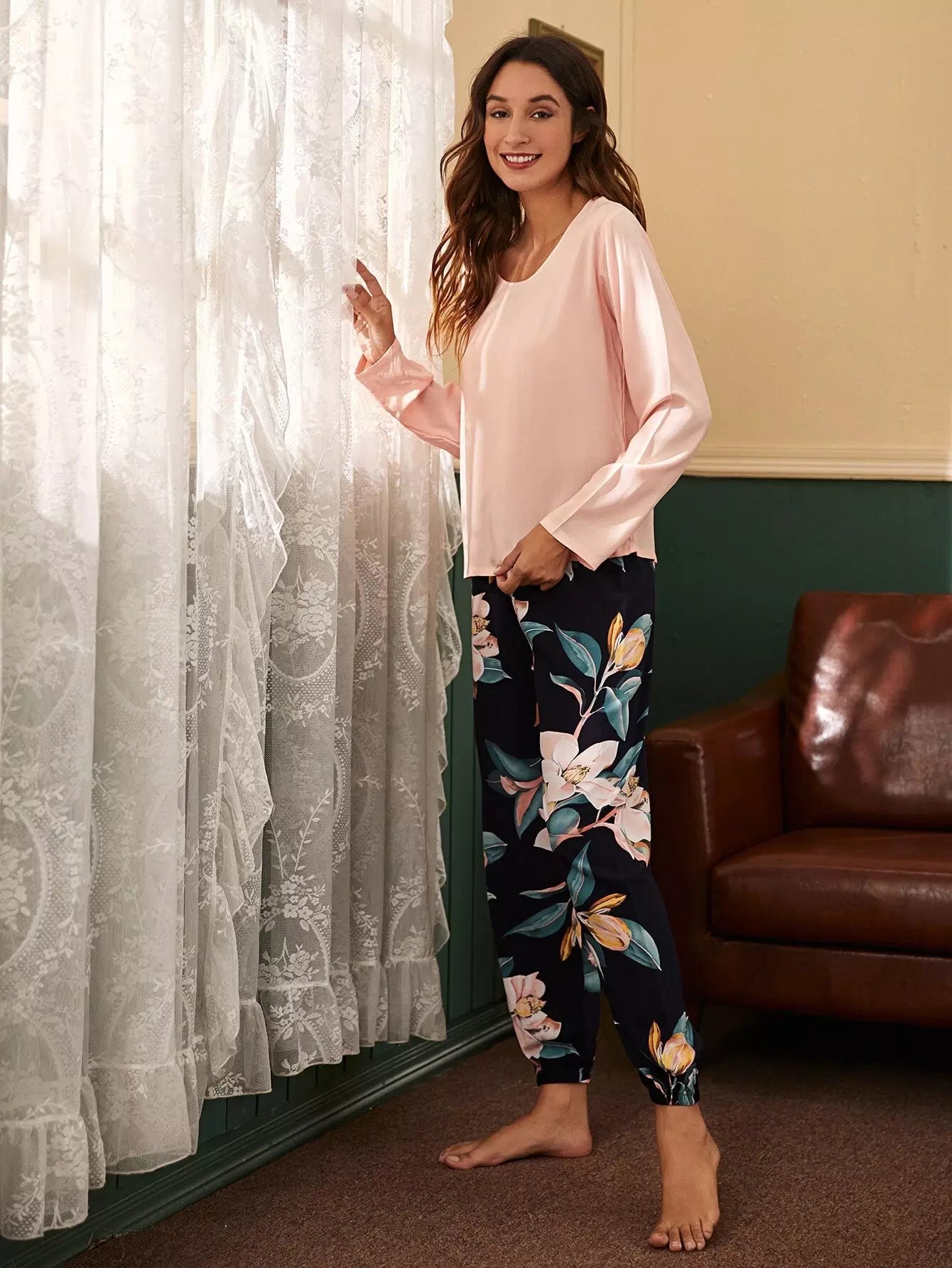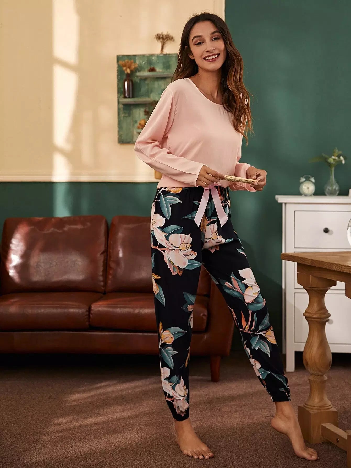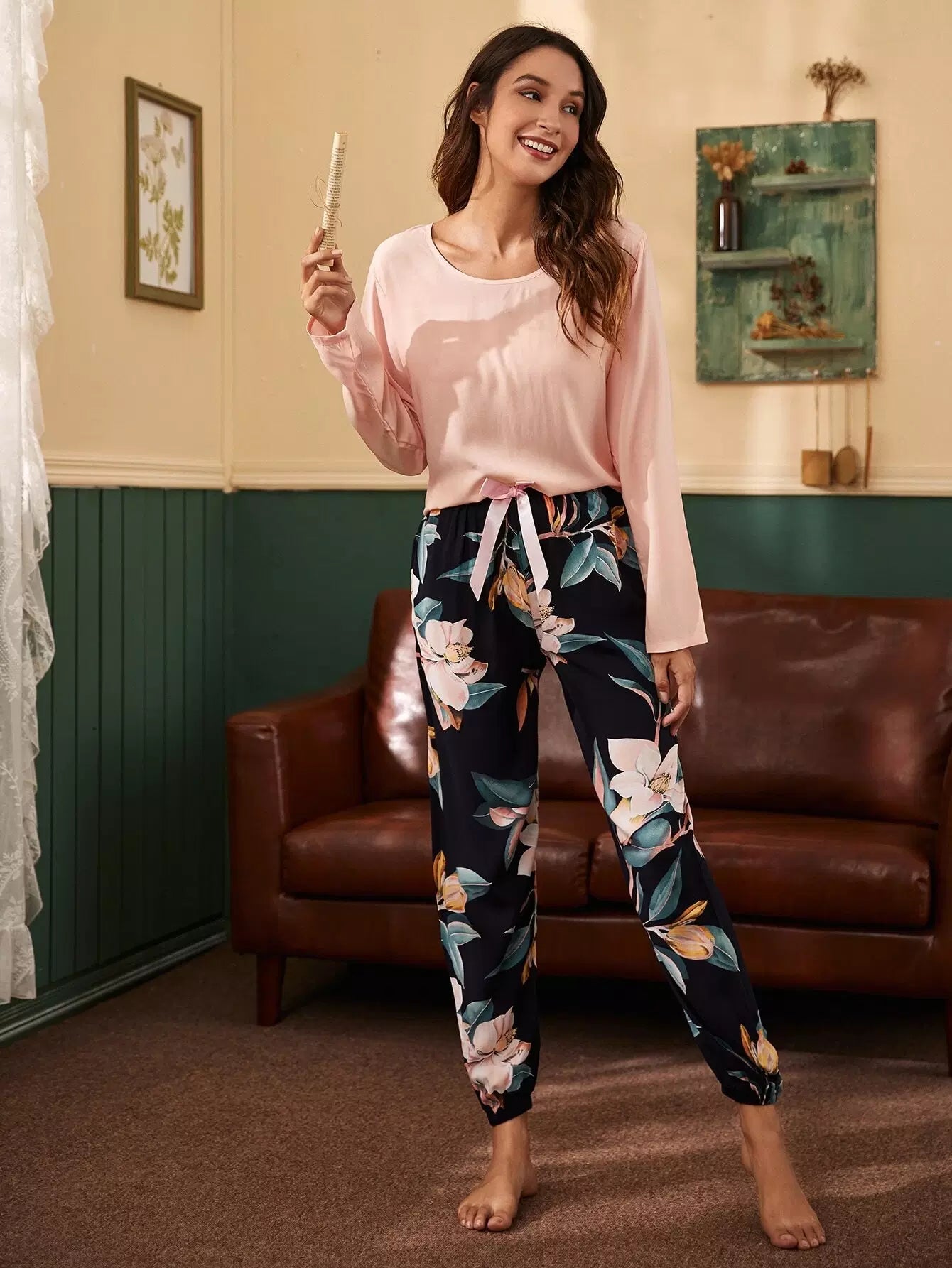 للنساء - طقم بيجامة بنطال على شكل تيشيرت وطبعة زهور