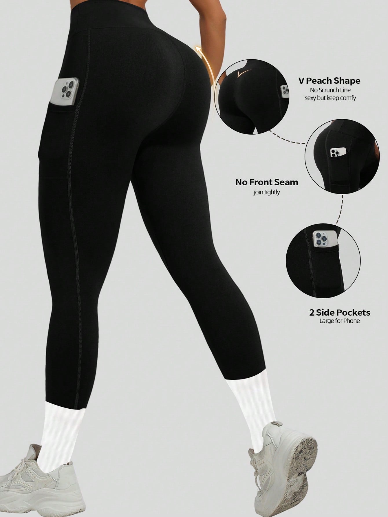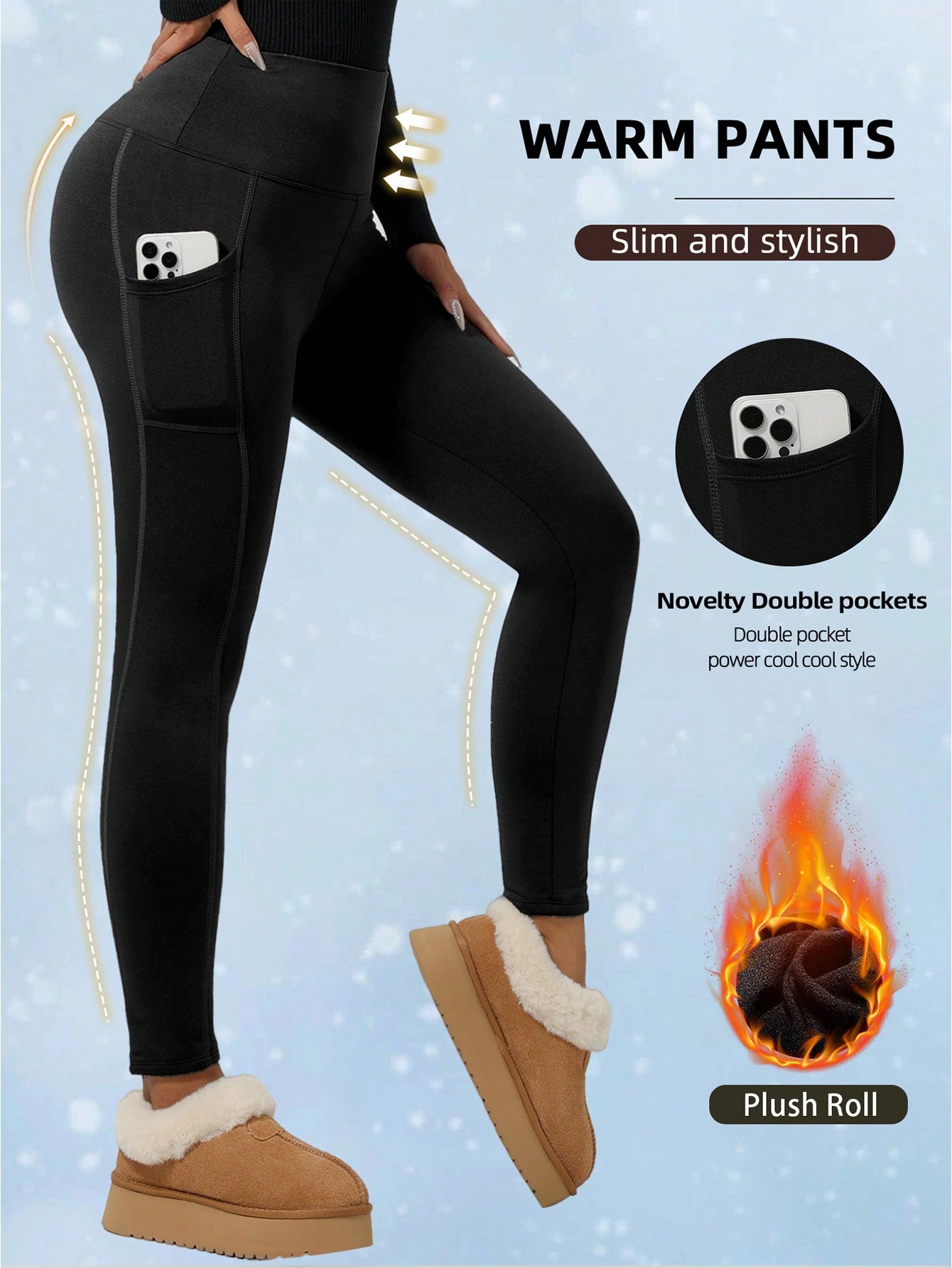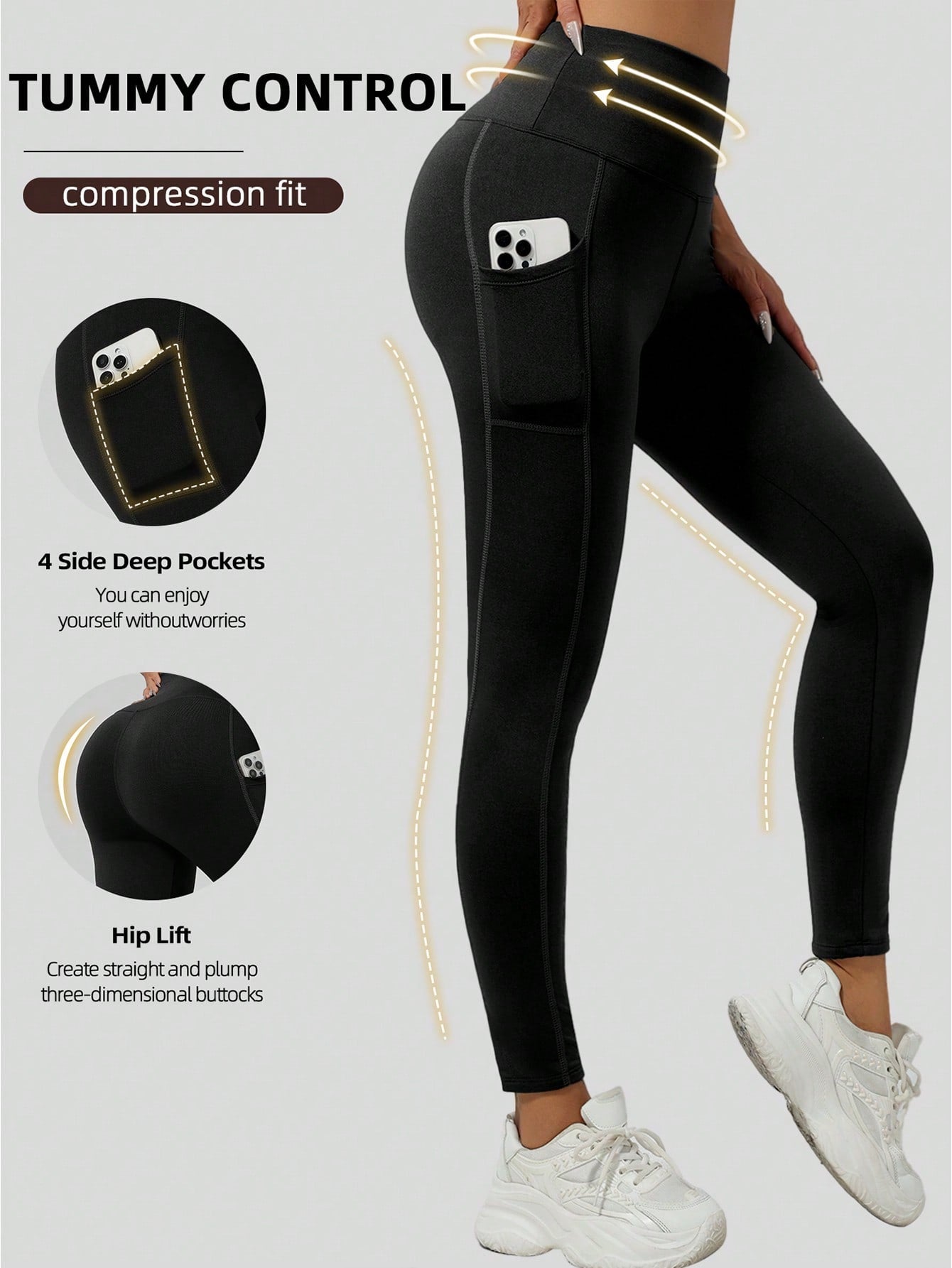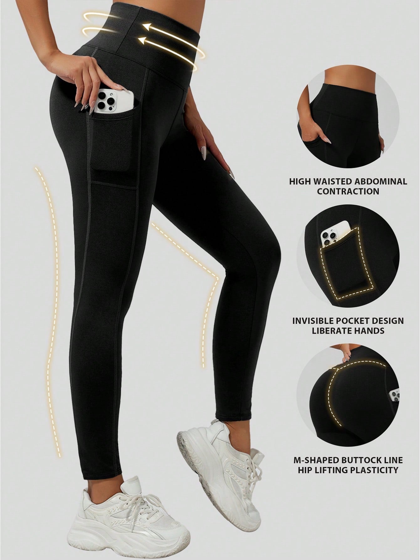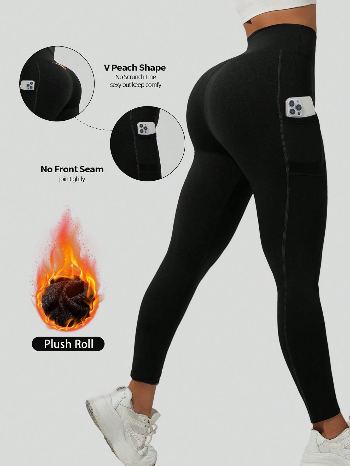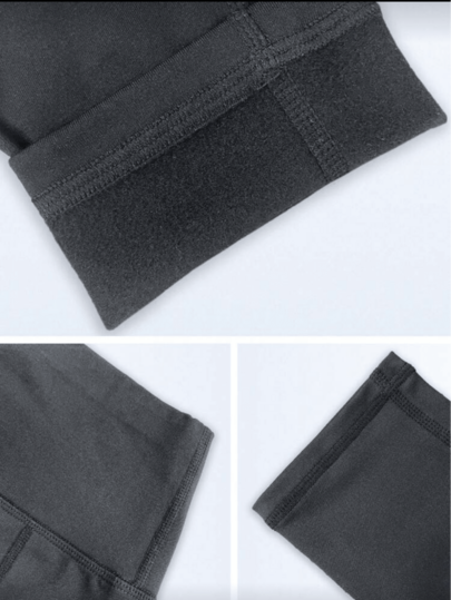 قطعة واحدة من بنطال اليوغا الأسود السميك للخريف/الشتاء مع جيوب جانبية