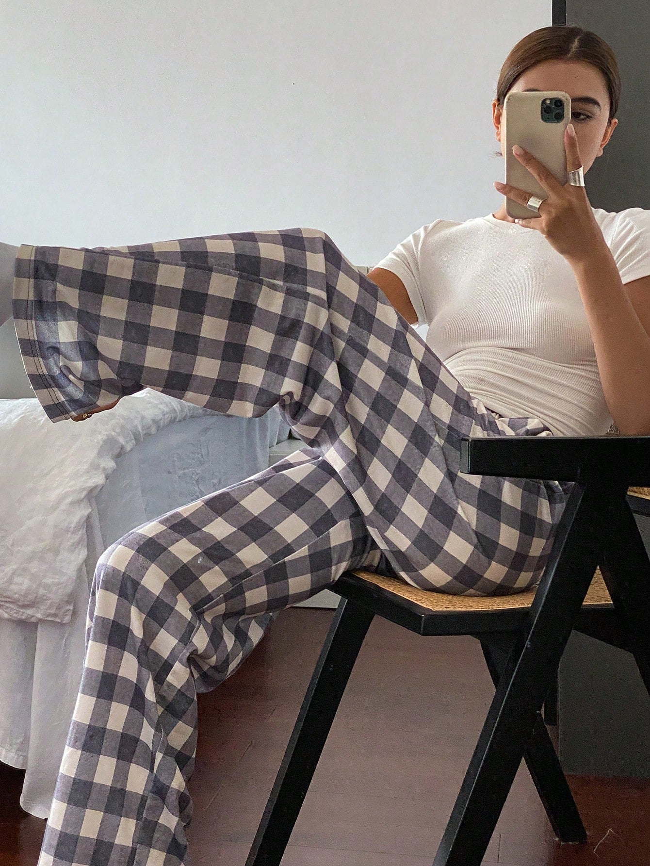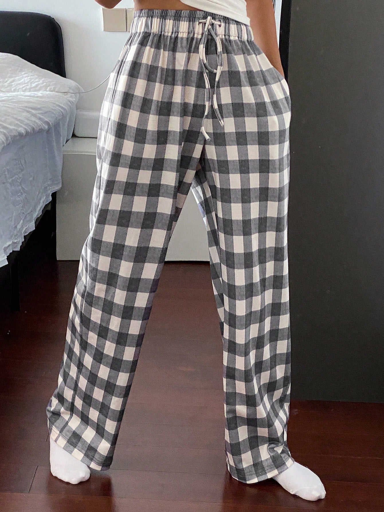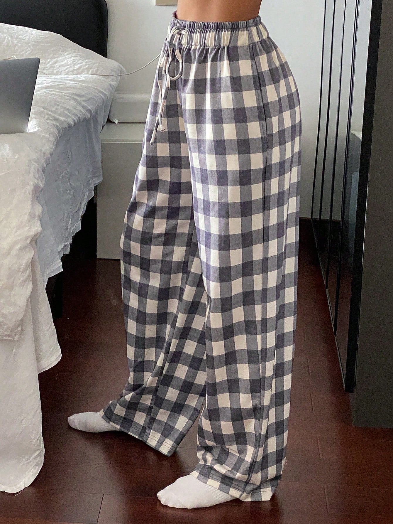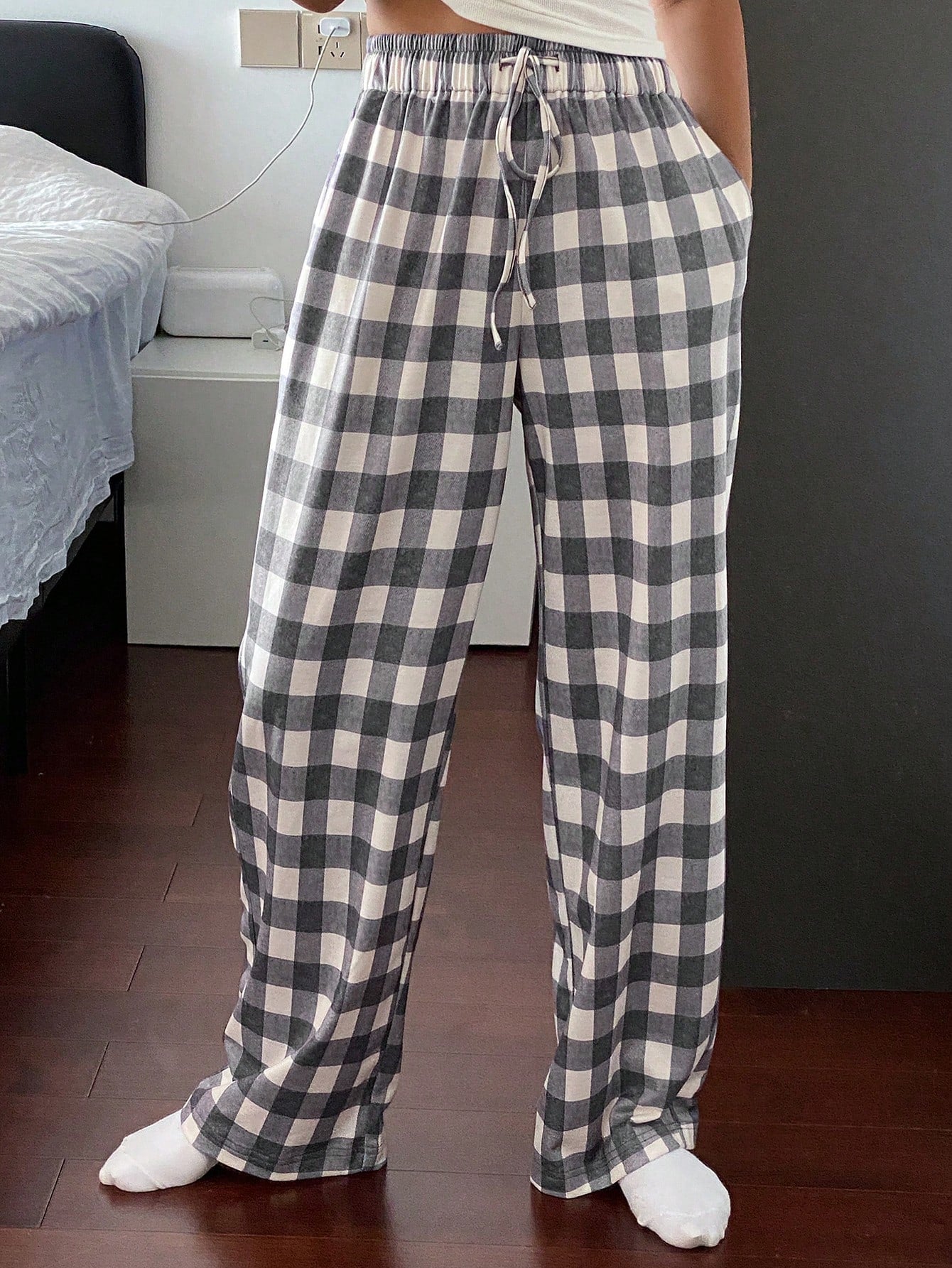 بنطلون بيجاما بسيط من قماش الجينغهام من لايفسو - مناسب للخريف والشتاء