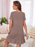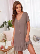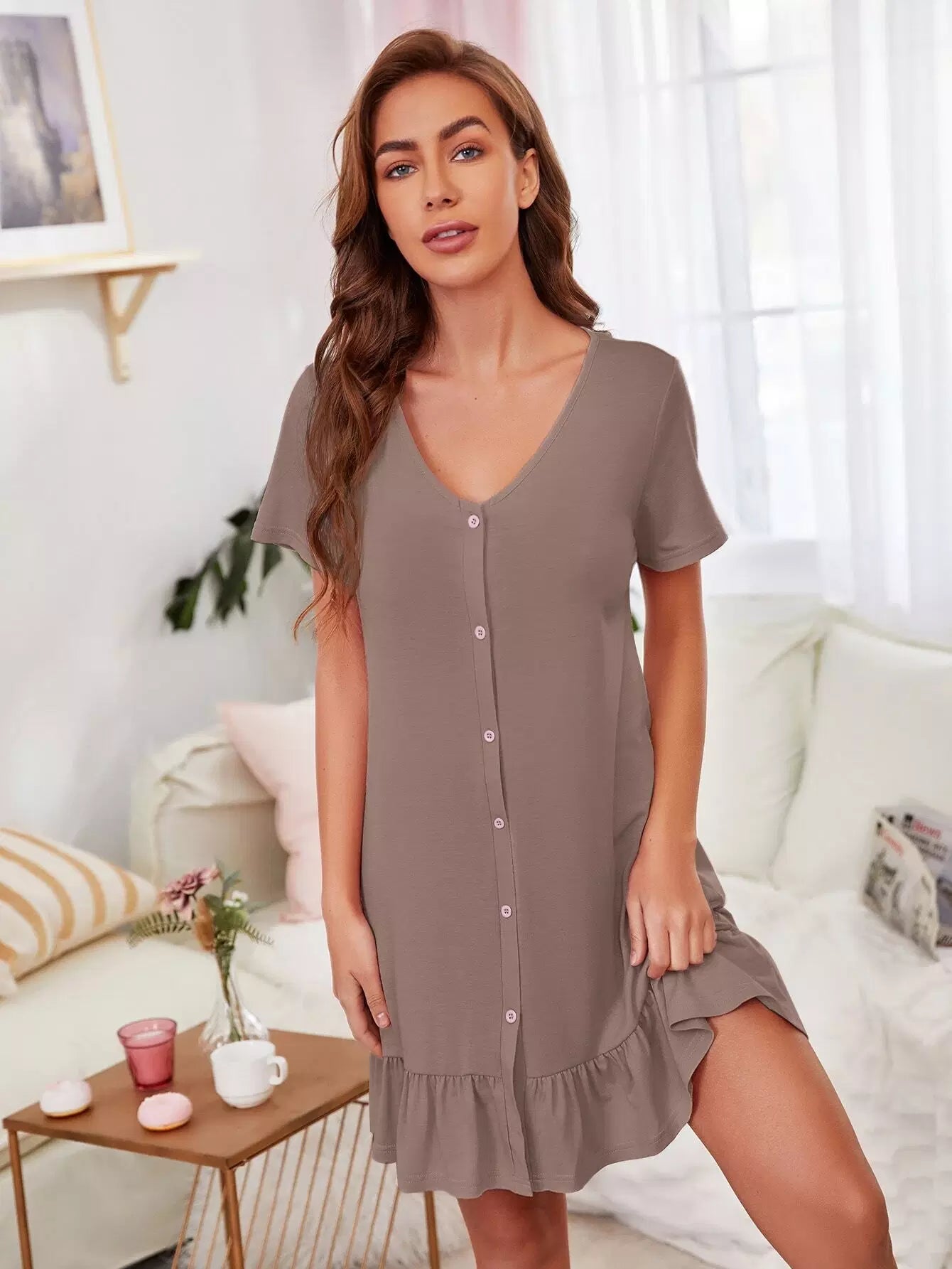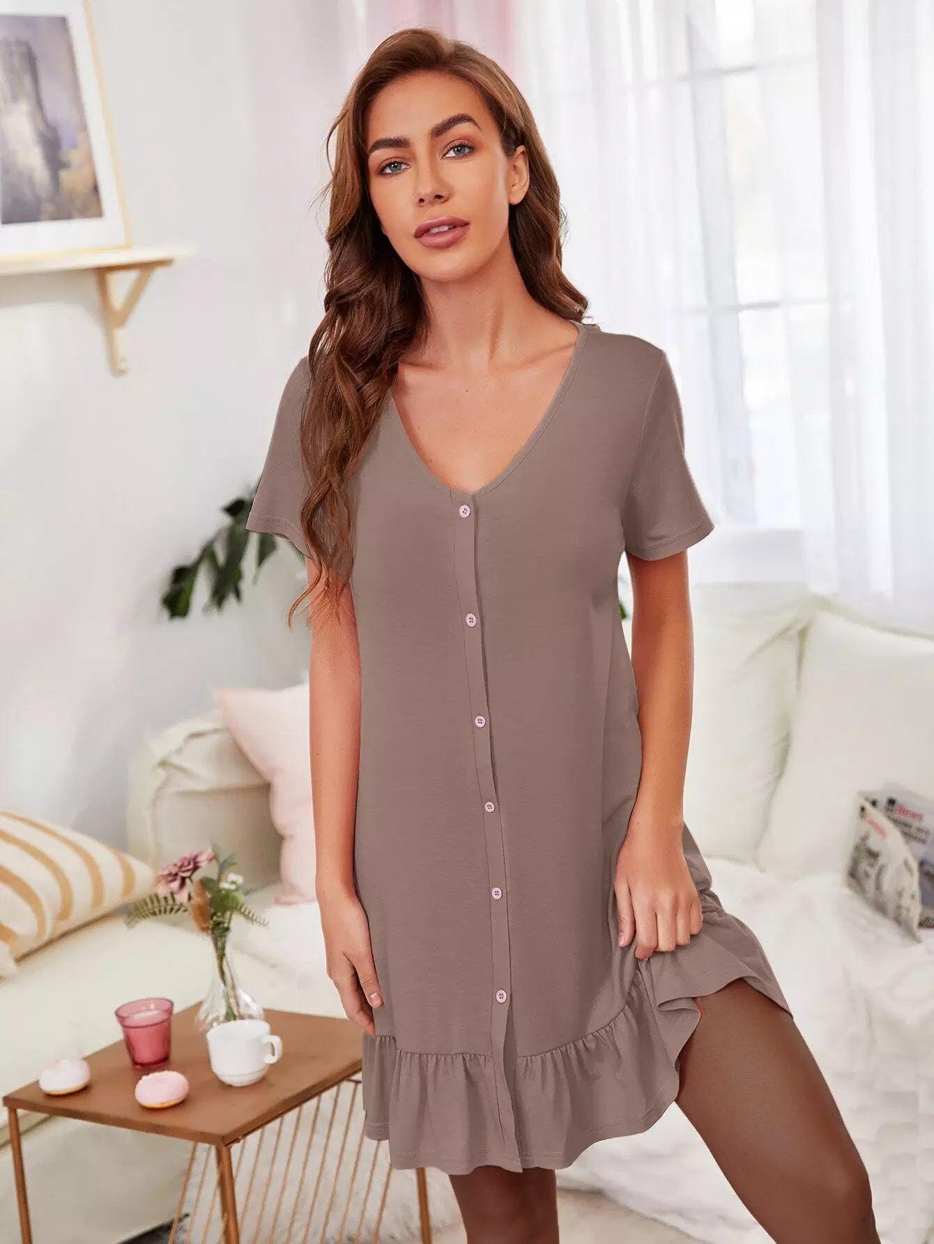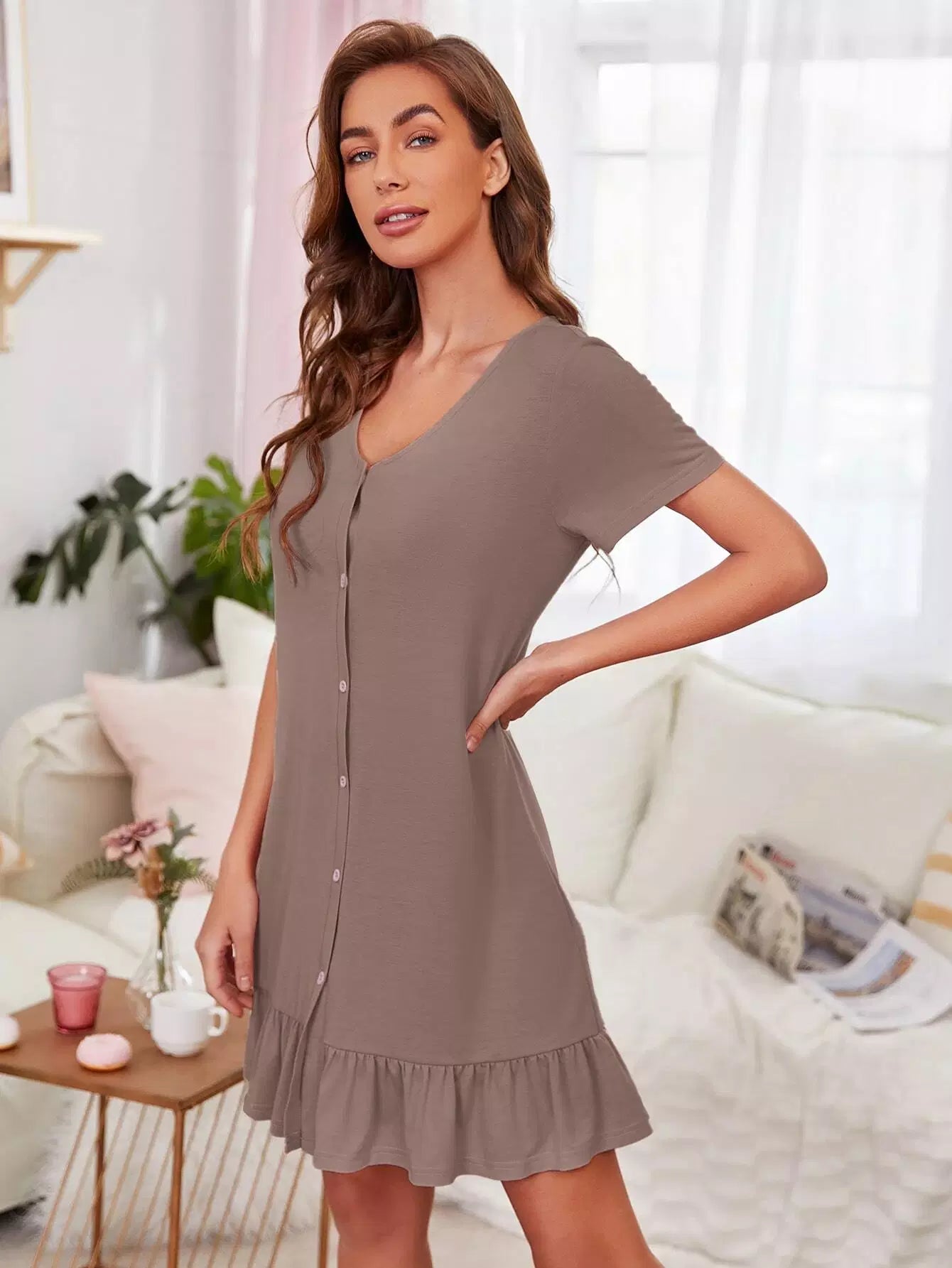 فستان استرخاء بحافة كشكش أمامي بأزرار