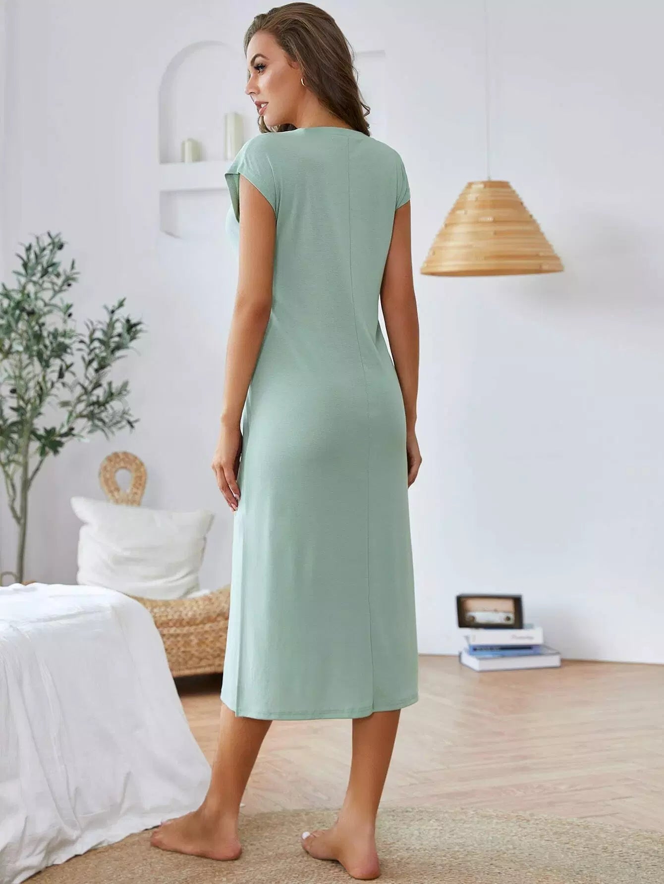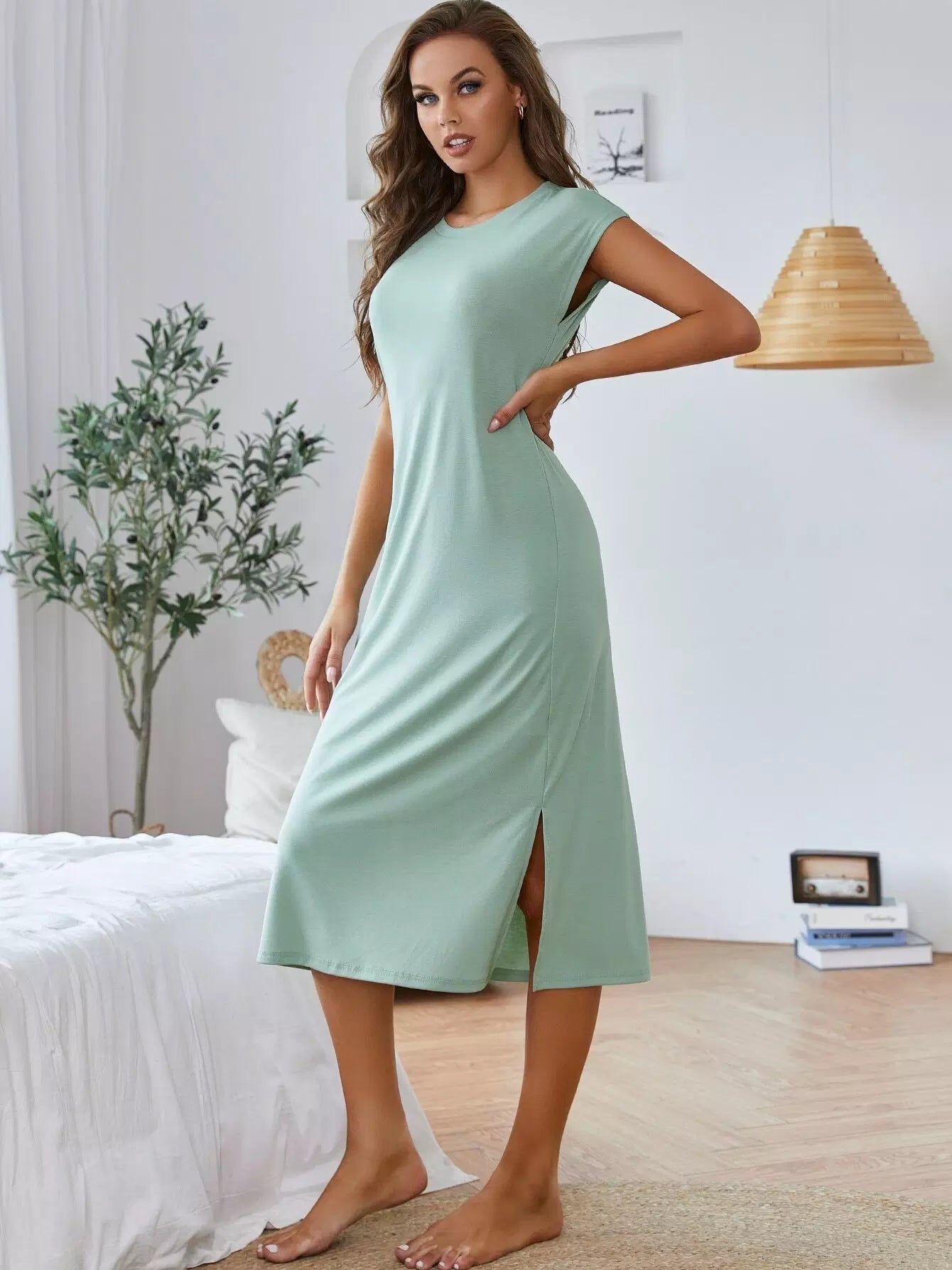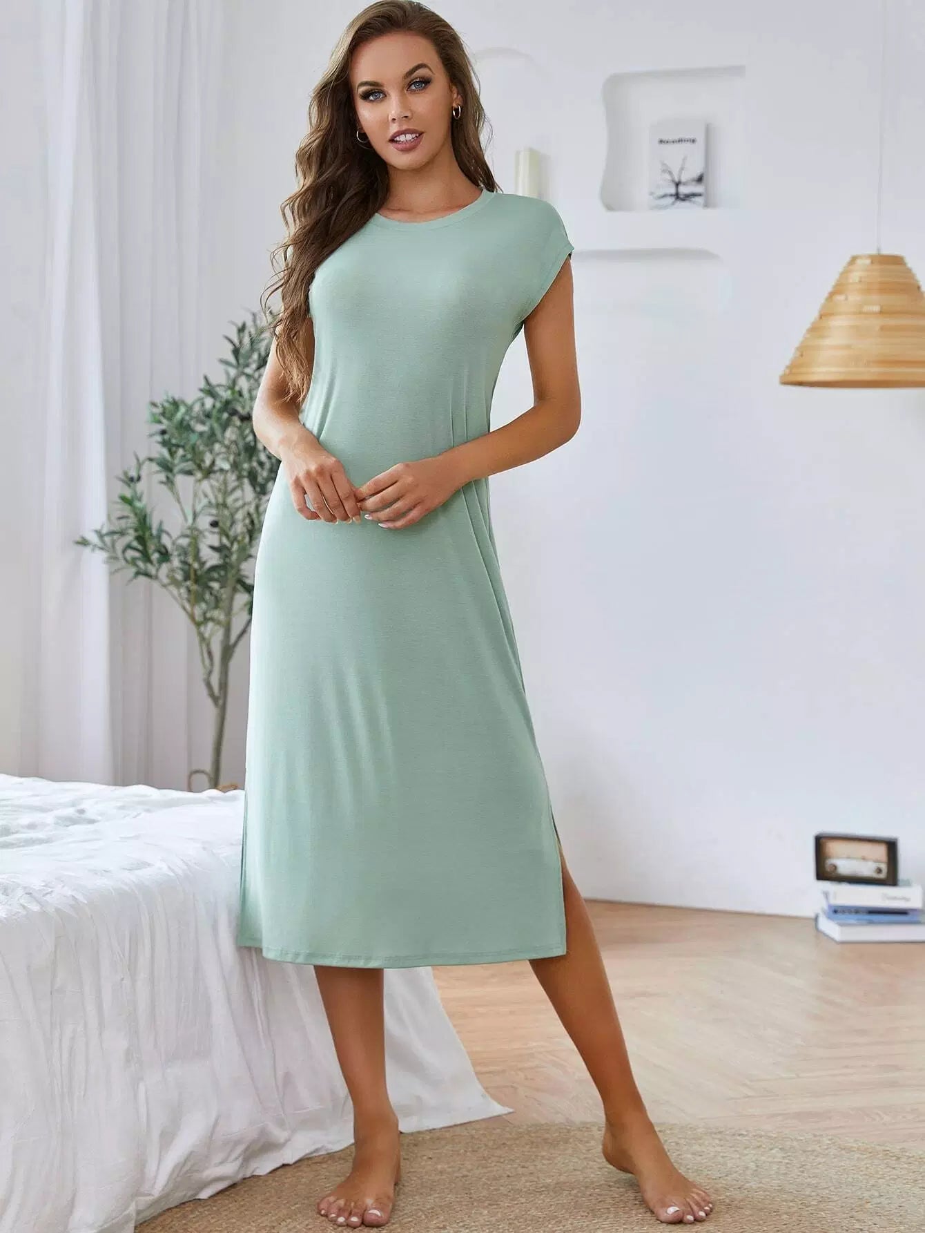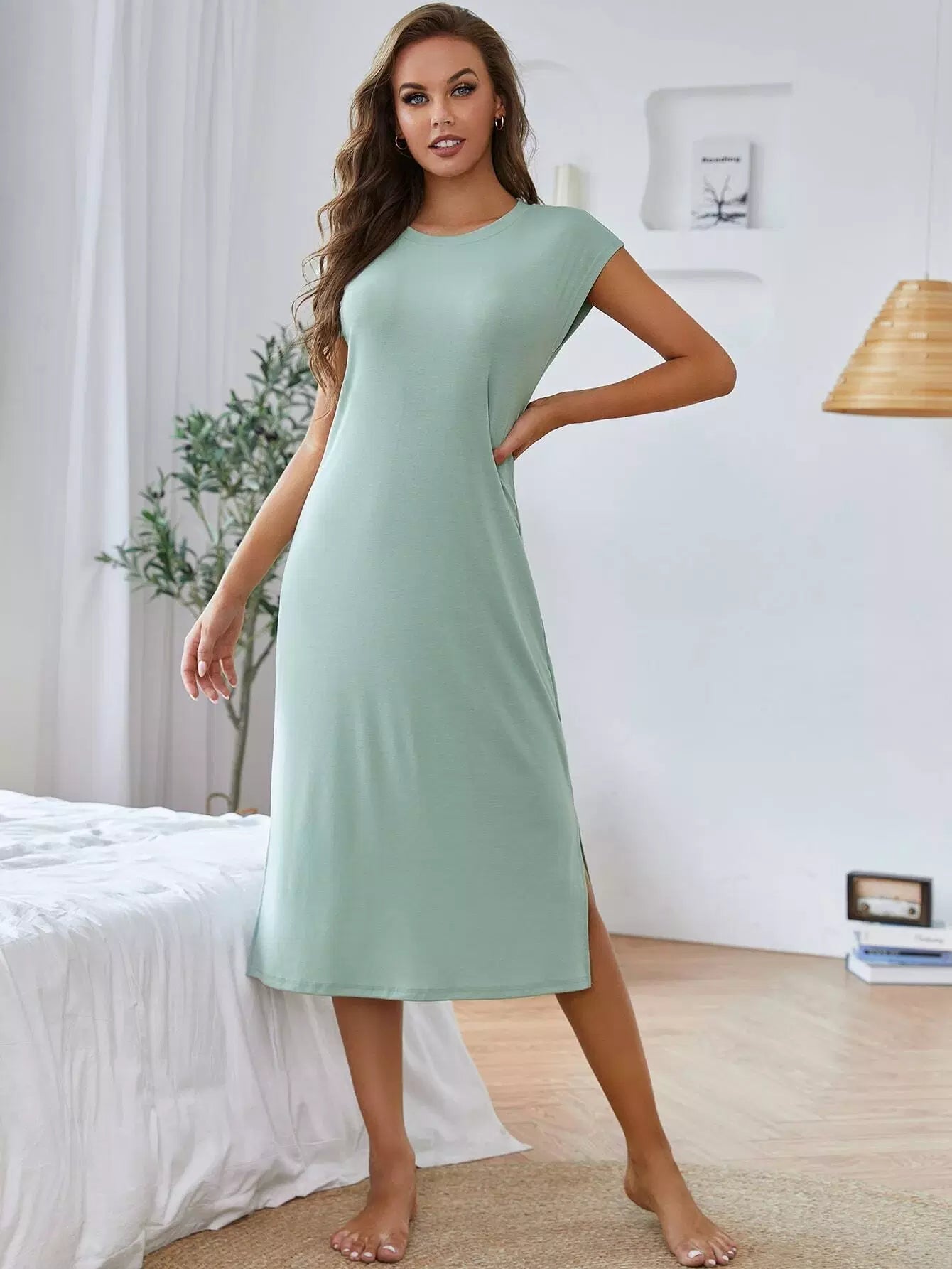 فستان سادة بحافة مشقوقة بحاشية سادة