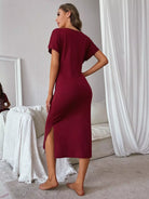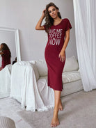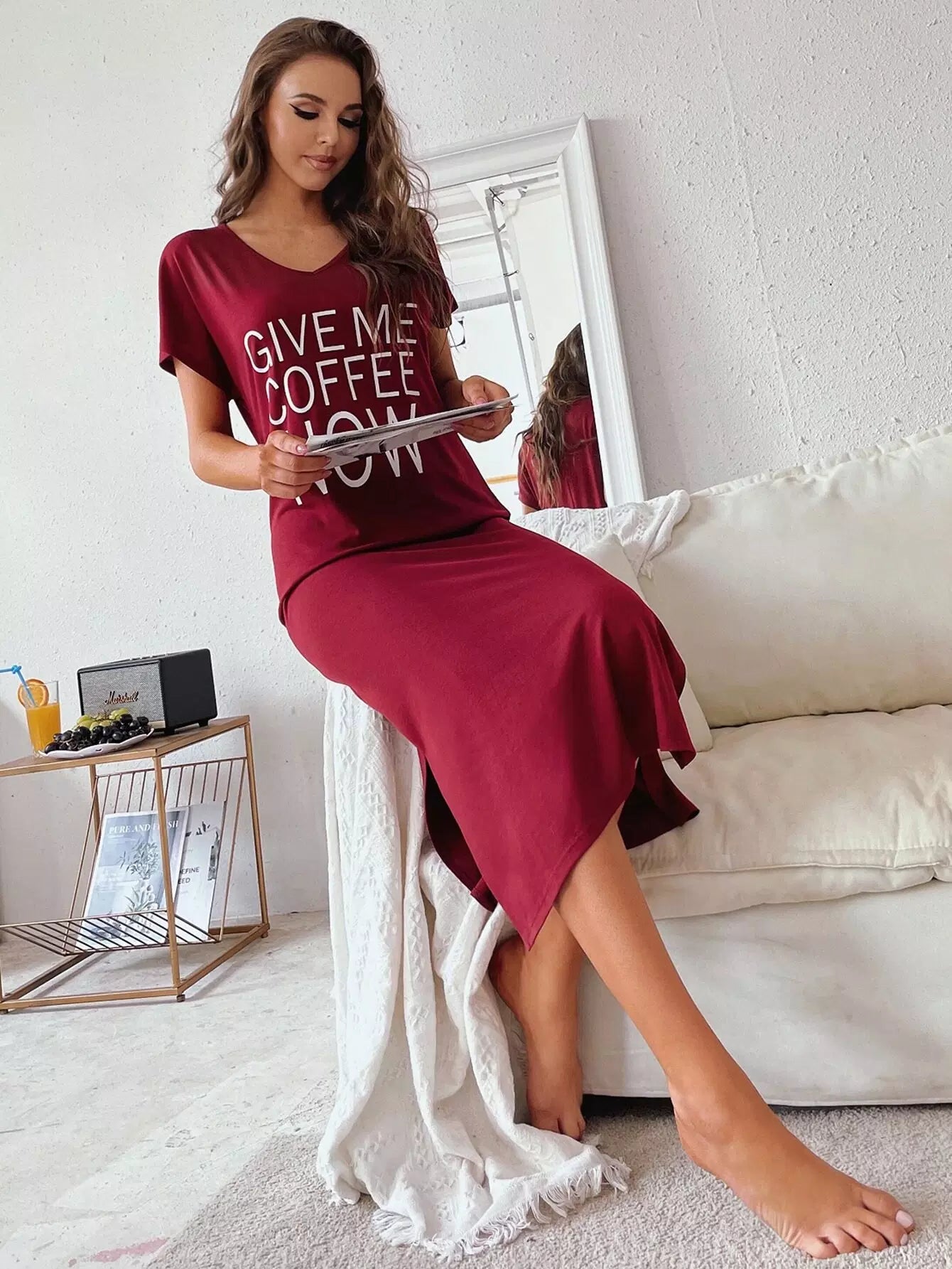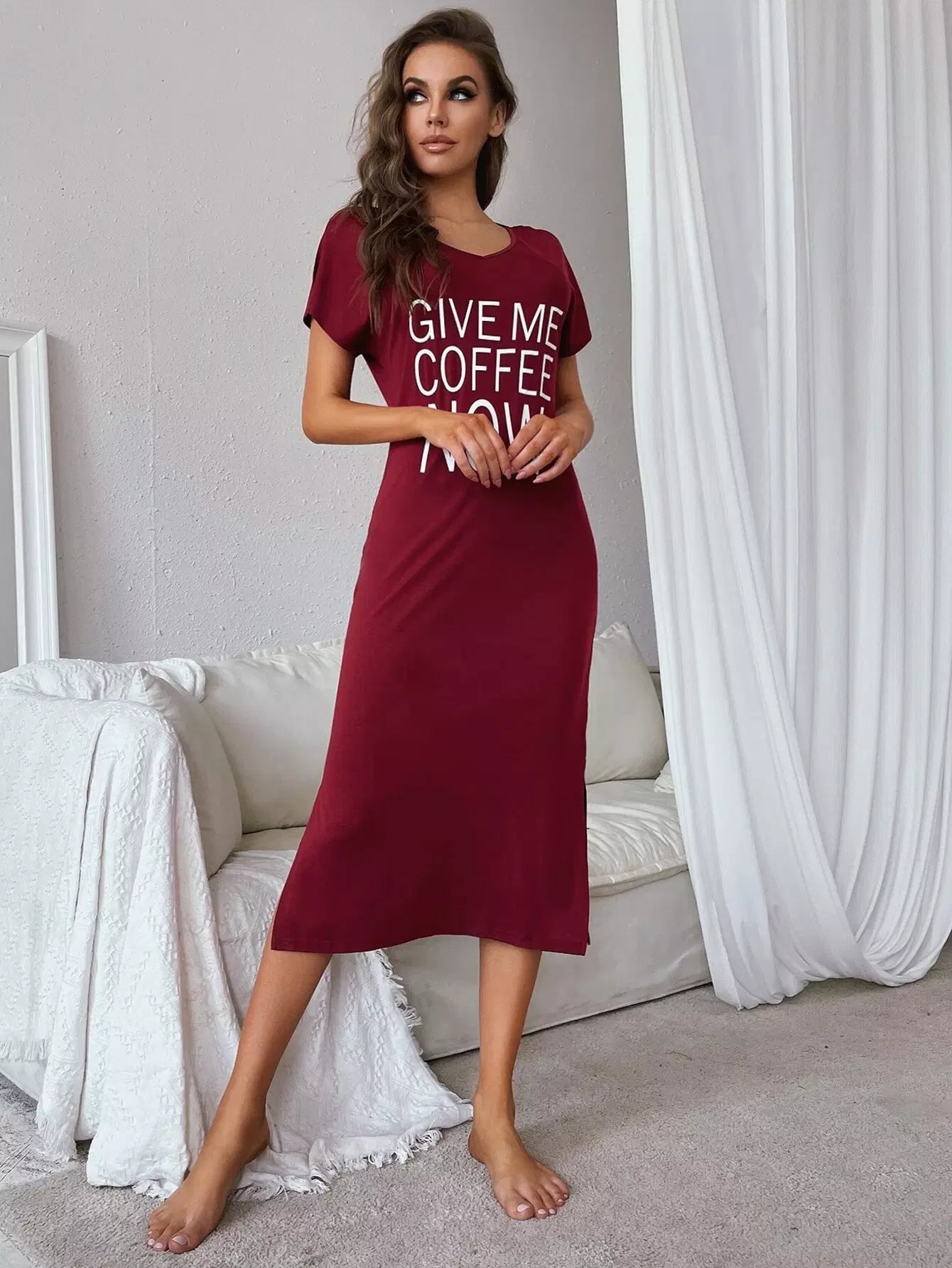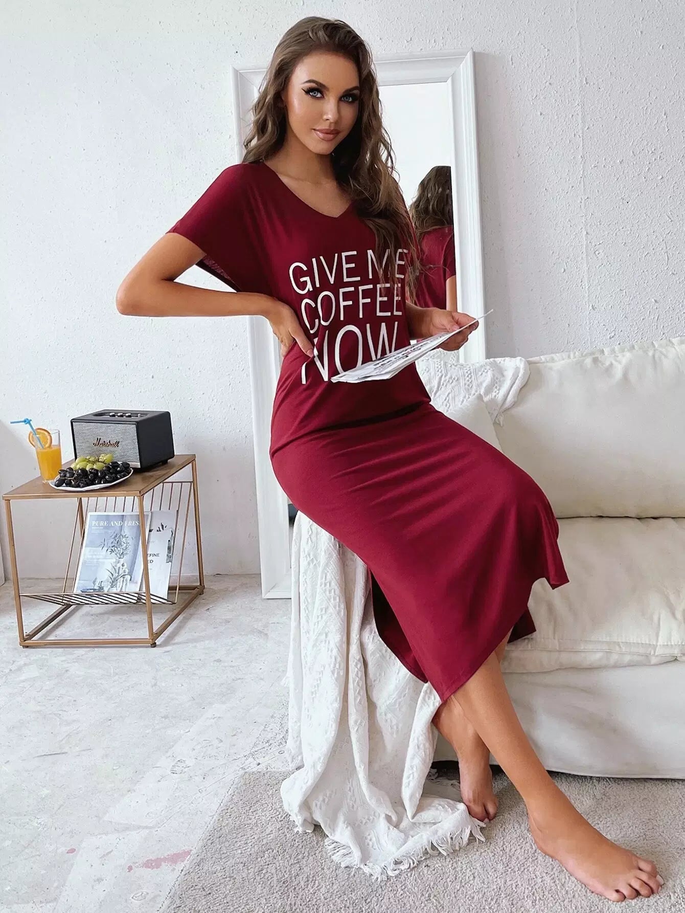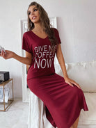فستان سهرة بشعارات جرافيك بشق جانبي منسدل