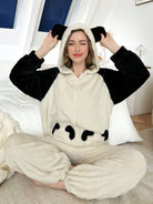 Cute Animal Pocket Plush Hooded Pajamas Jumpsuit For Women