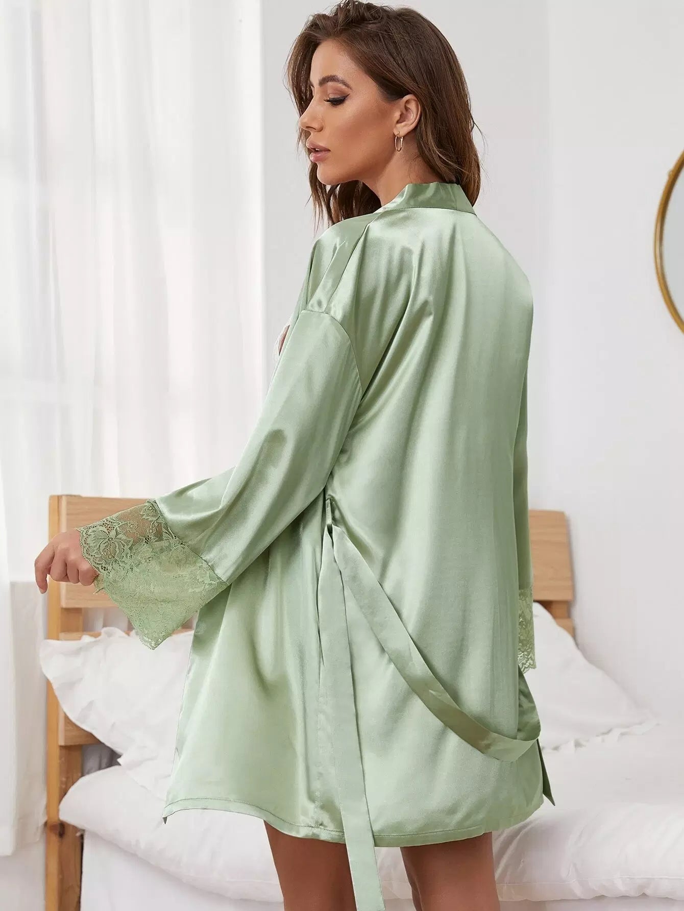 1 قطعة من رداء النوم المصنوع من الساتان والدانتيل المتباين