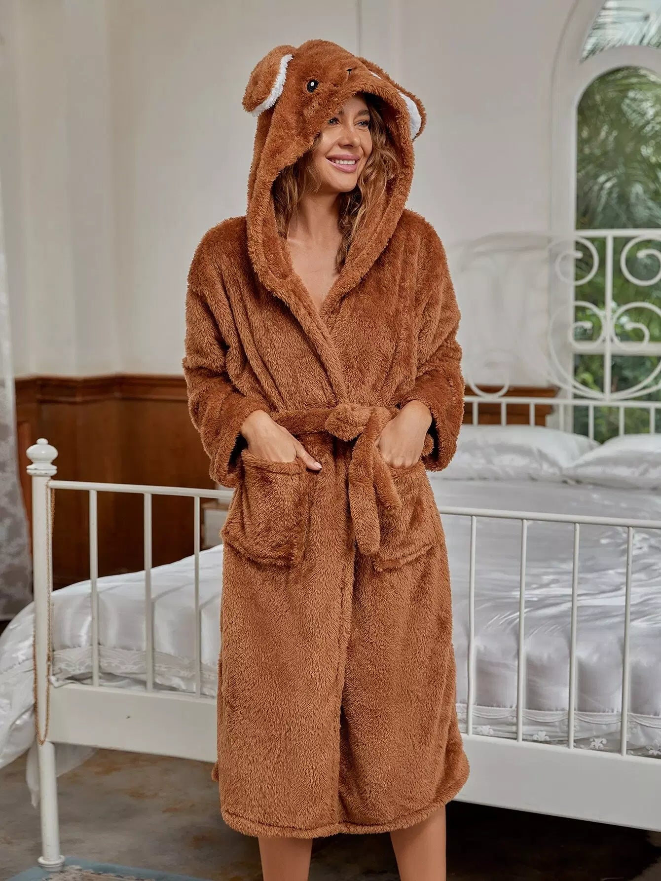 رداء حمام تيدي بغطاء للرأس بتصميم آذان ثلاثية الأبعاد بدون حزام