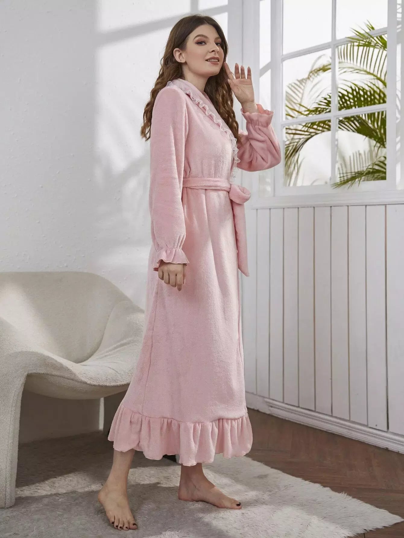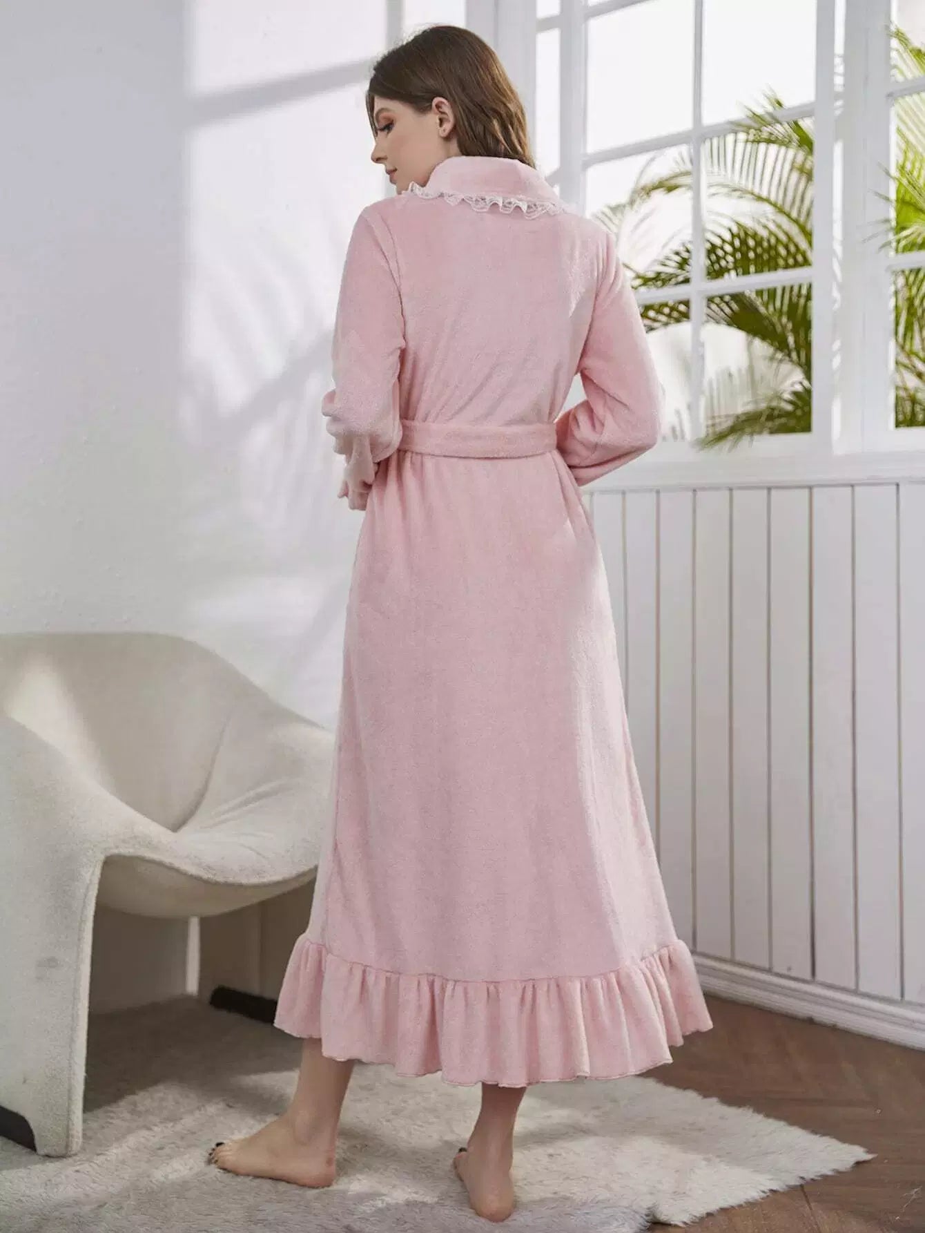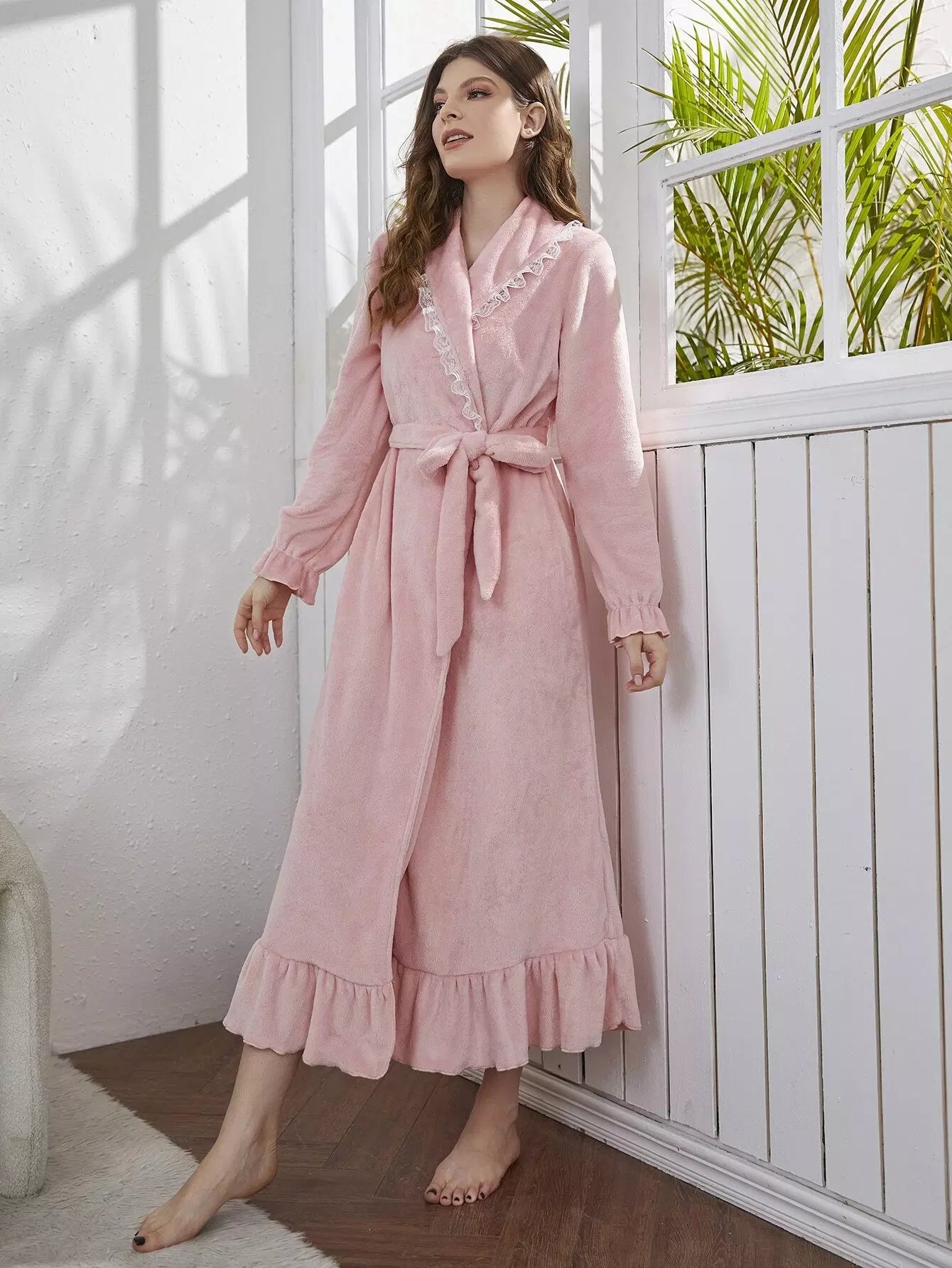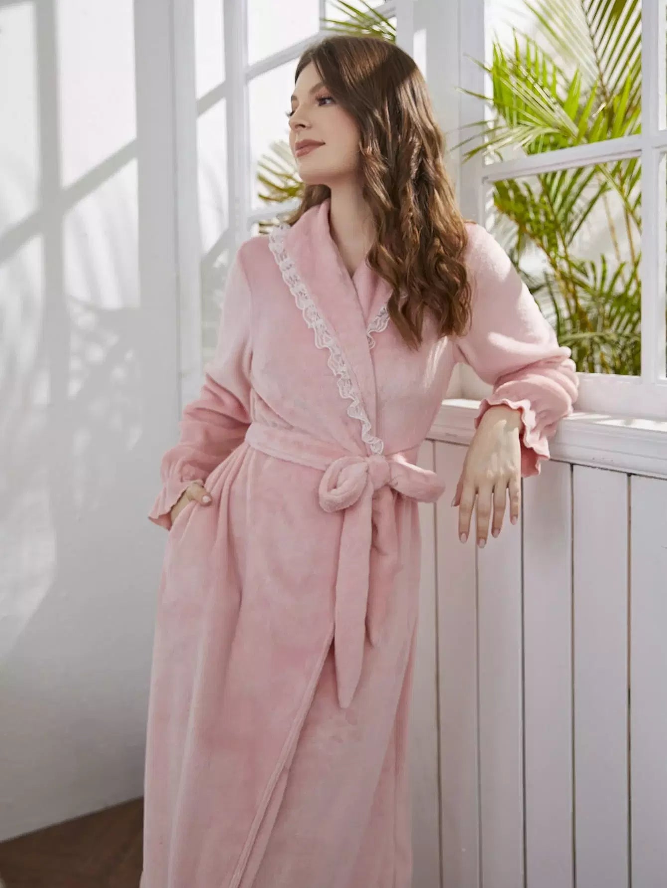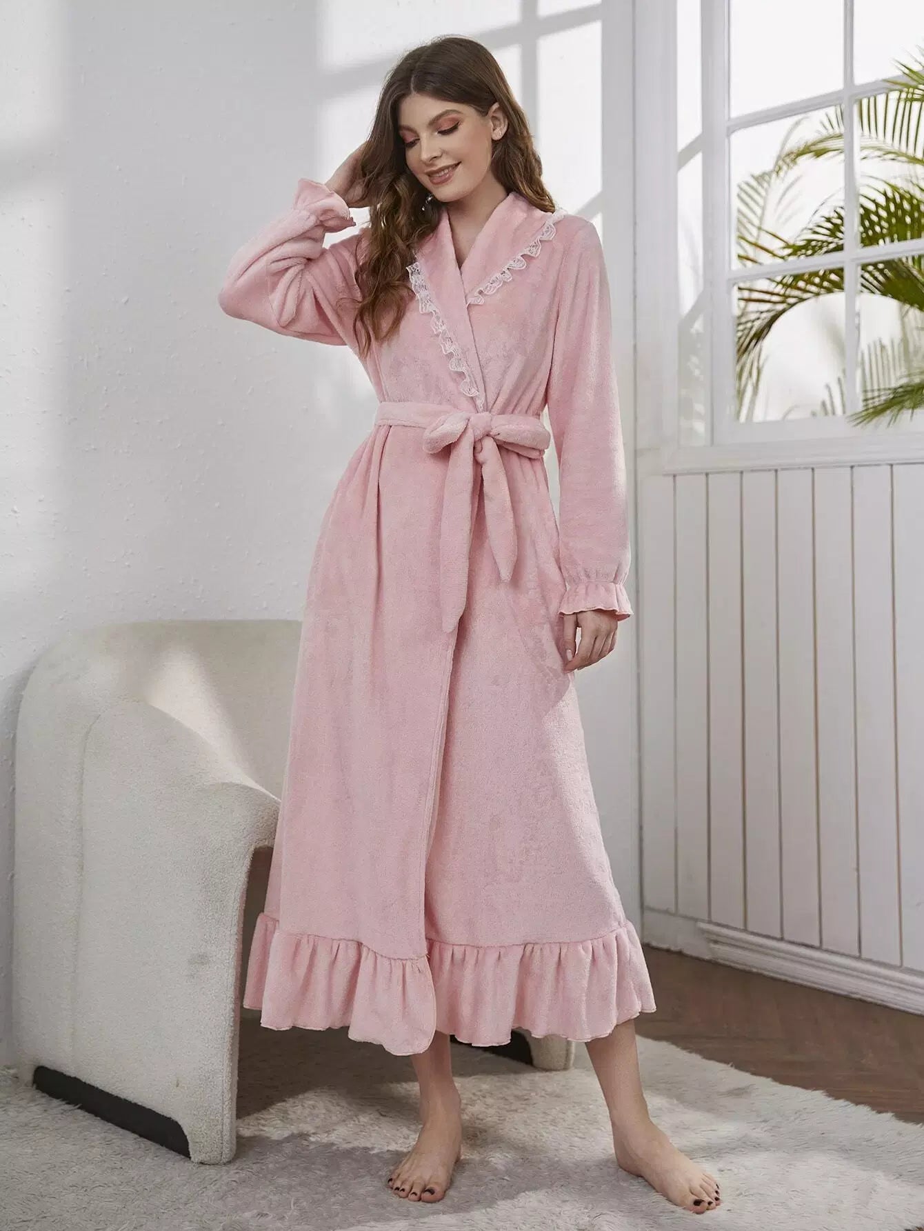 رداء من الفلانيل ذو أكمام واسعة من الدانتيل المتباين بدون حزام
