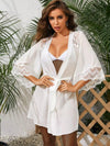 رداء نوم شيفون مزين بالدانتيل بدون حزام