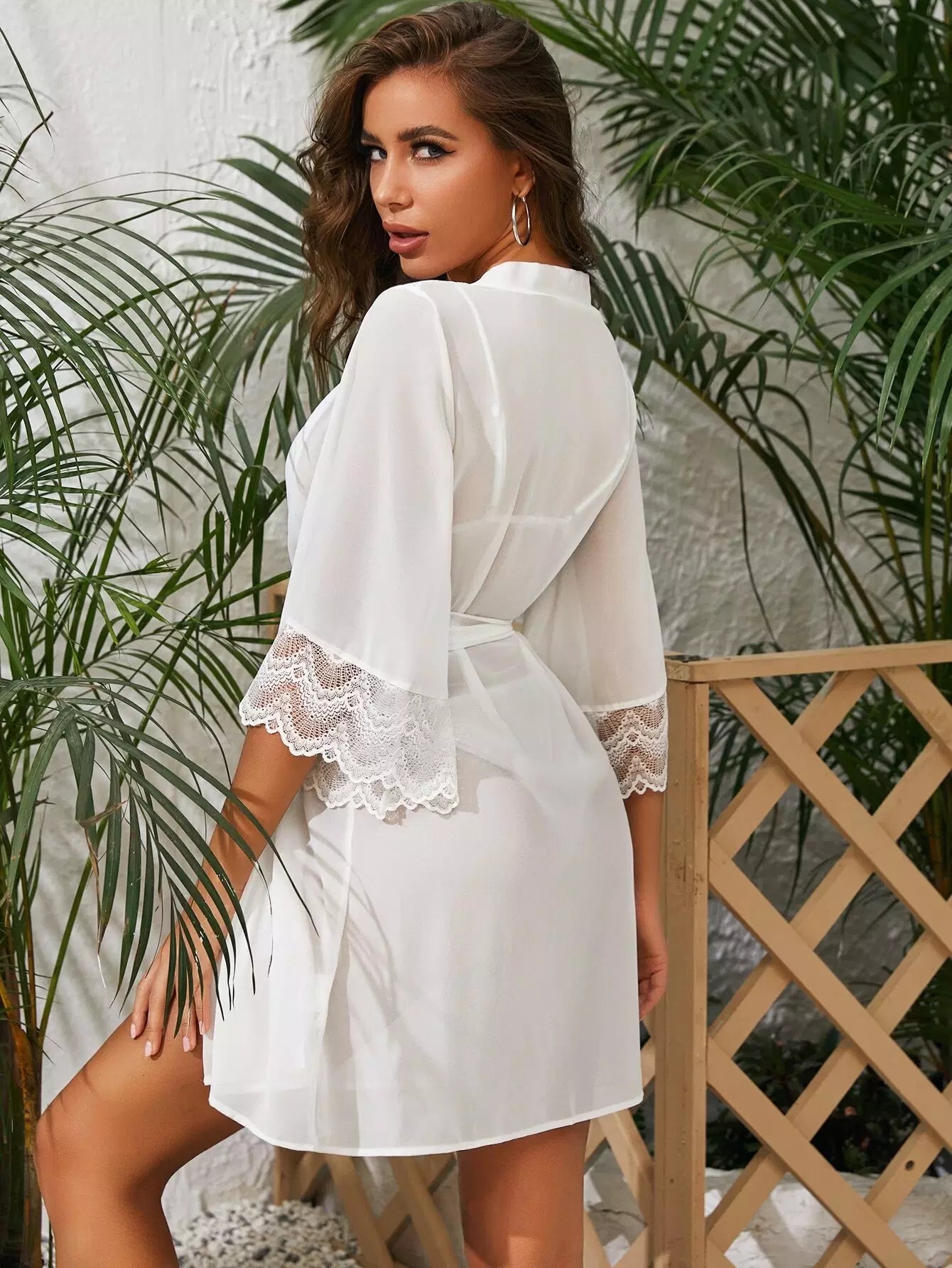 رداء نوم شيفون مزين بالدانتيل بدون حزام