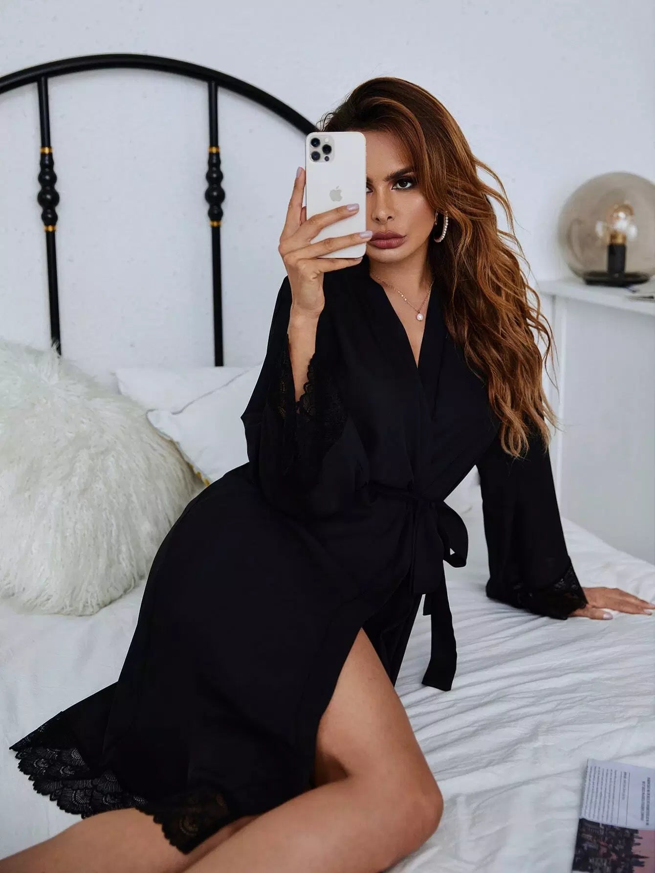 رداء ليلي مزين بالدانتيل بدون حزام