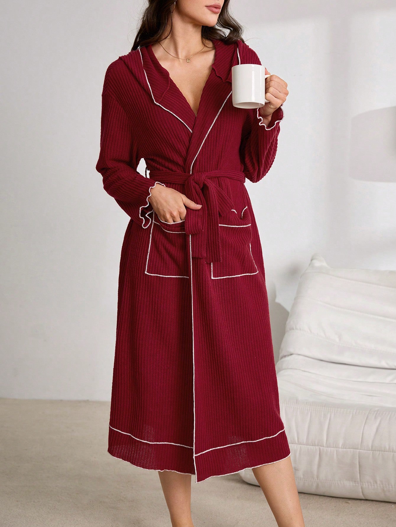 Lazeform Women's Casual Long Sleeve Hooded Robe With Visible Stitching And Side Pockets